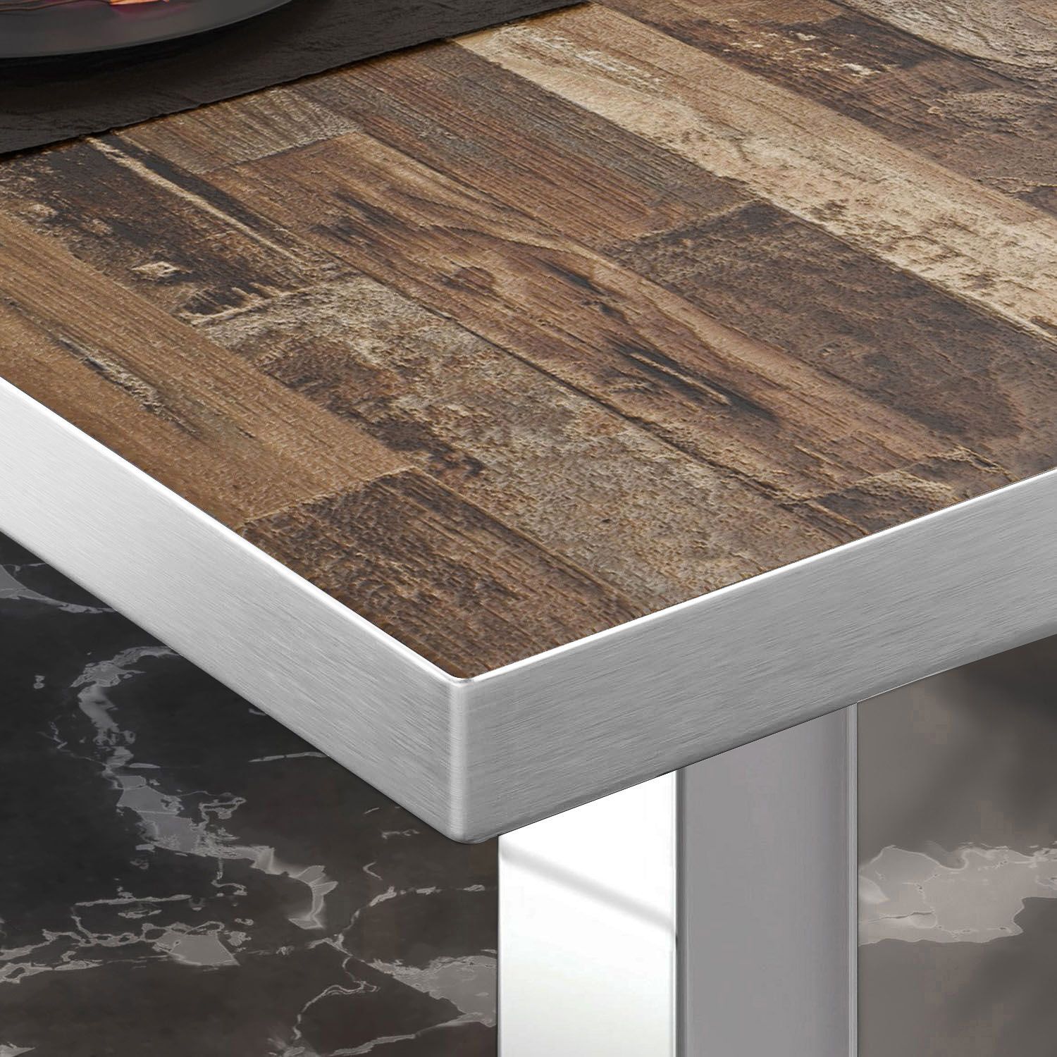 BM | Bistrotisch | B: : 70 x 70 x 75 cm | Vintage Old / Edelstahl | Quadratisch | E