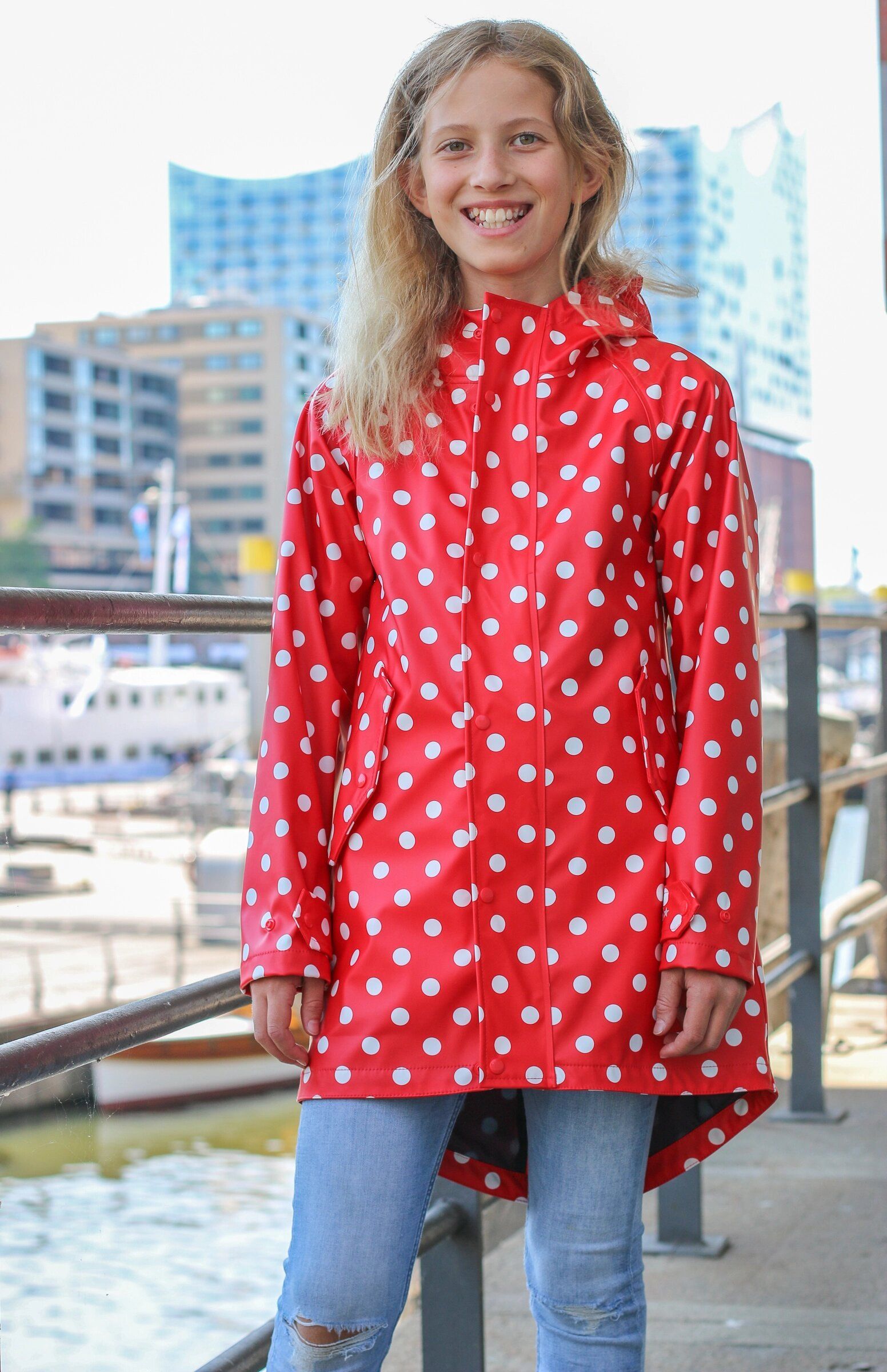 BMS Kinder Regenjacke HafenCity Coat Kids Pu/Lining Rot mit Weißen Punkten
