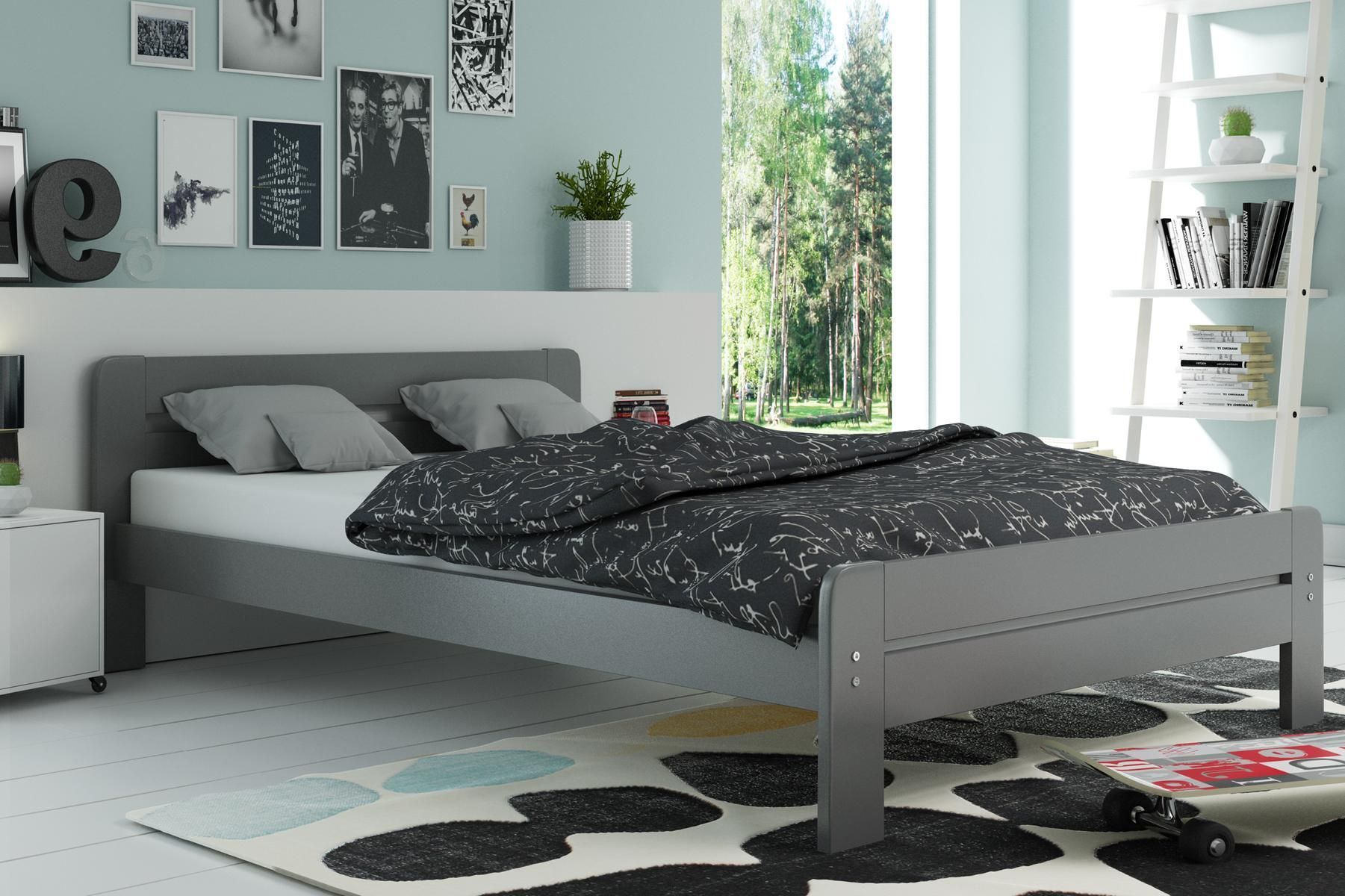 BMS Schlafzimmerbett Dallas Graphit Matratze 90x200 cm