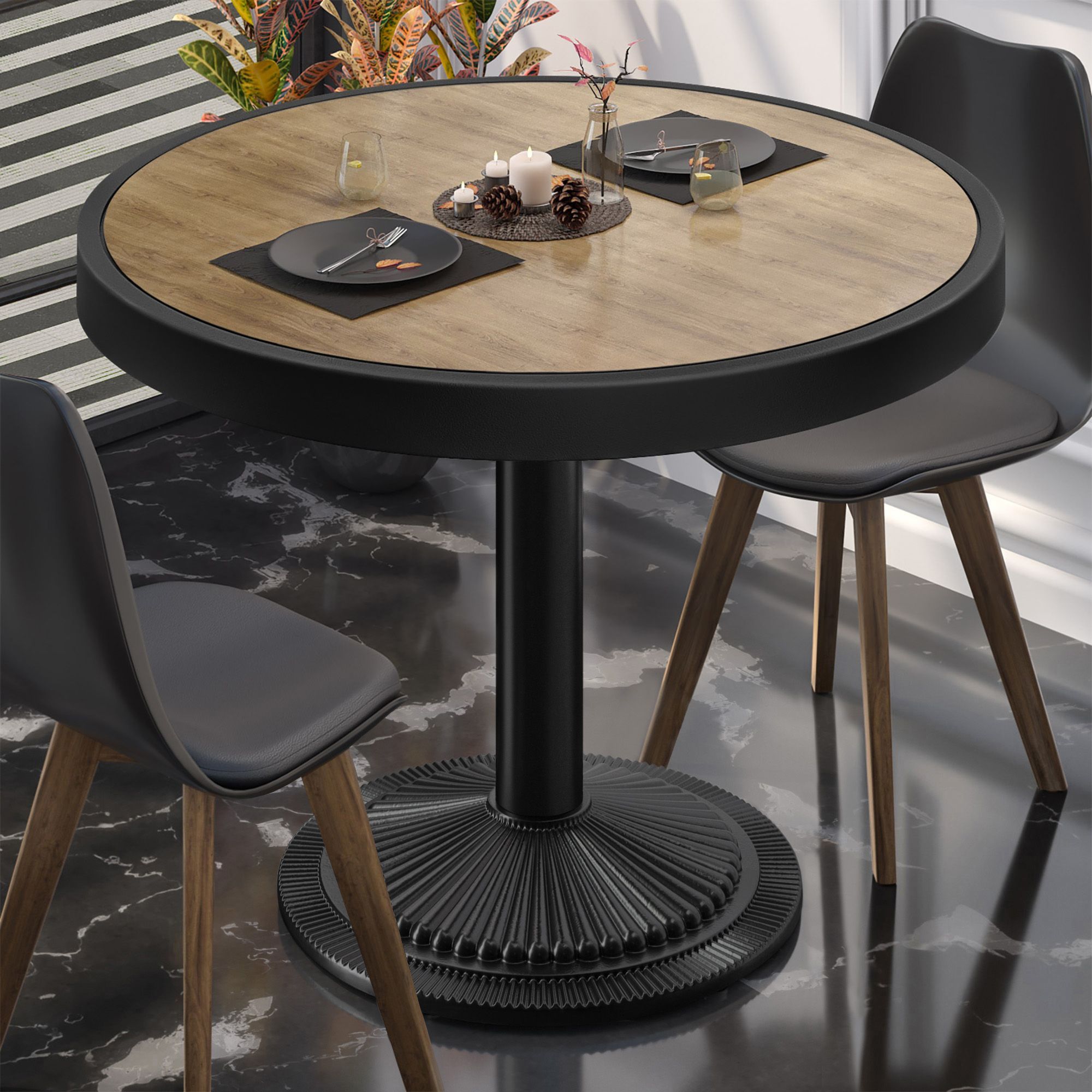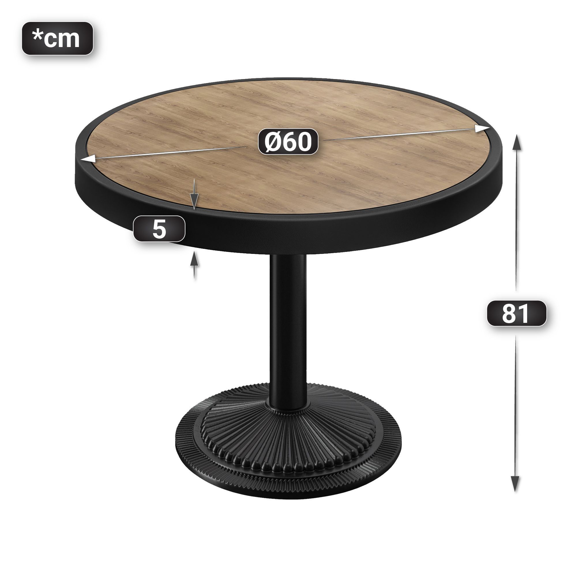 BMX | Bistro Tisch | Ø 60 x 81 cm | Rund | Metallrahmen | Eiche / Schwarz | Bistroti