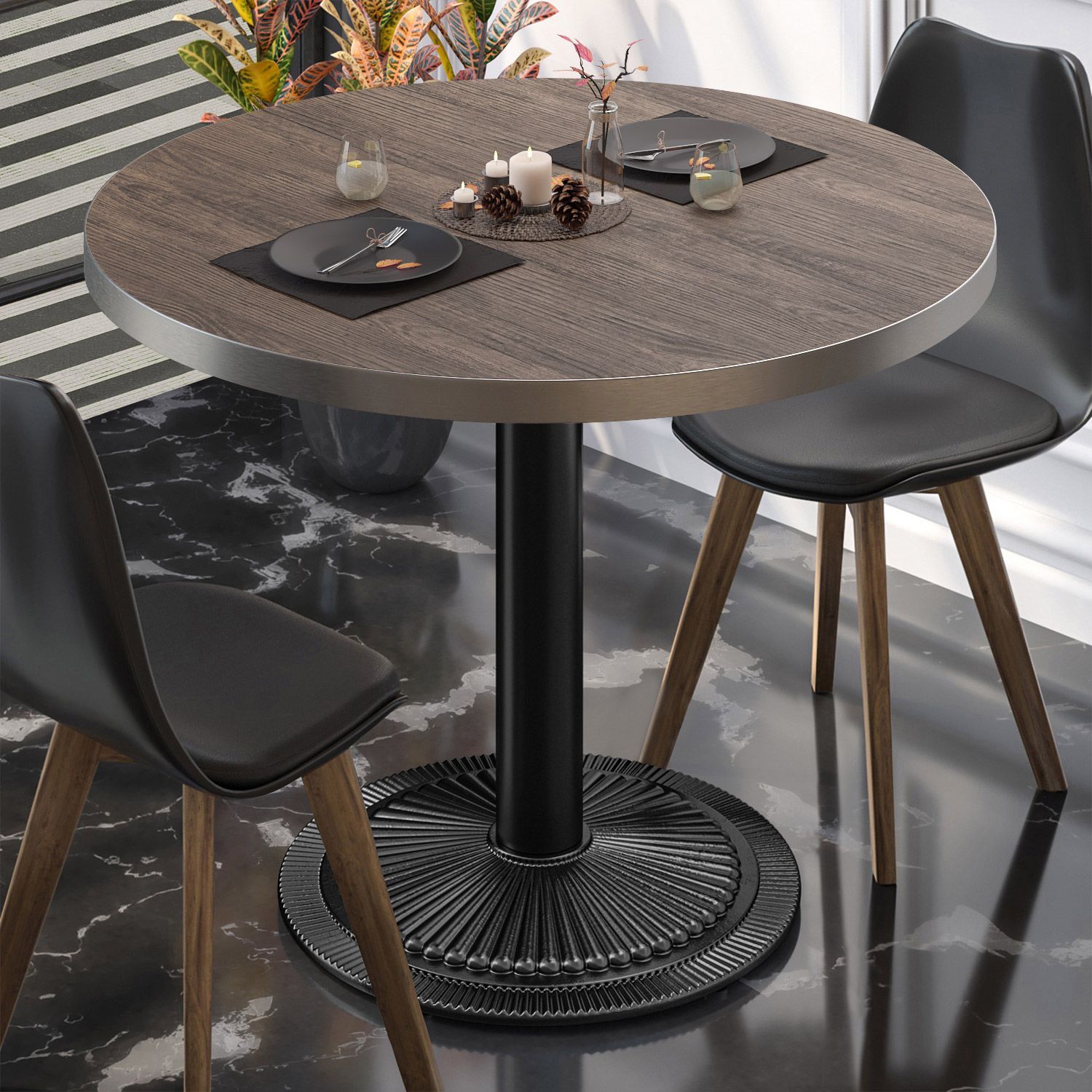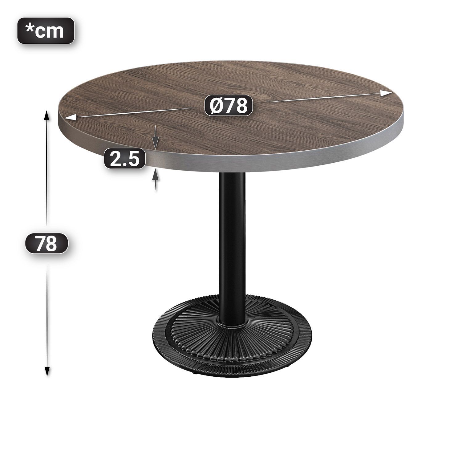 BMX | Bistro Tisch | Ø 80 x 78,5 cm | Rund | Edelstahl Rand | Light Wenge / Schwarz