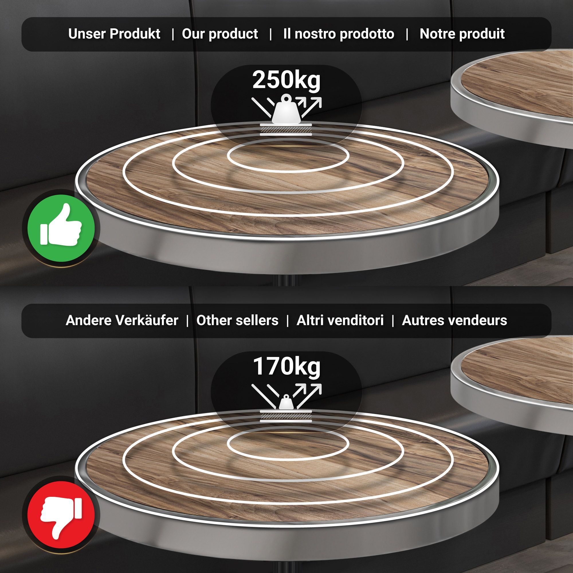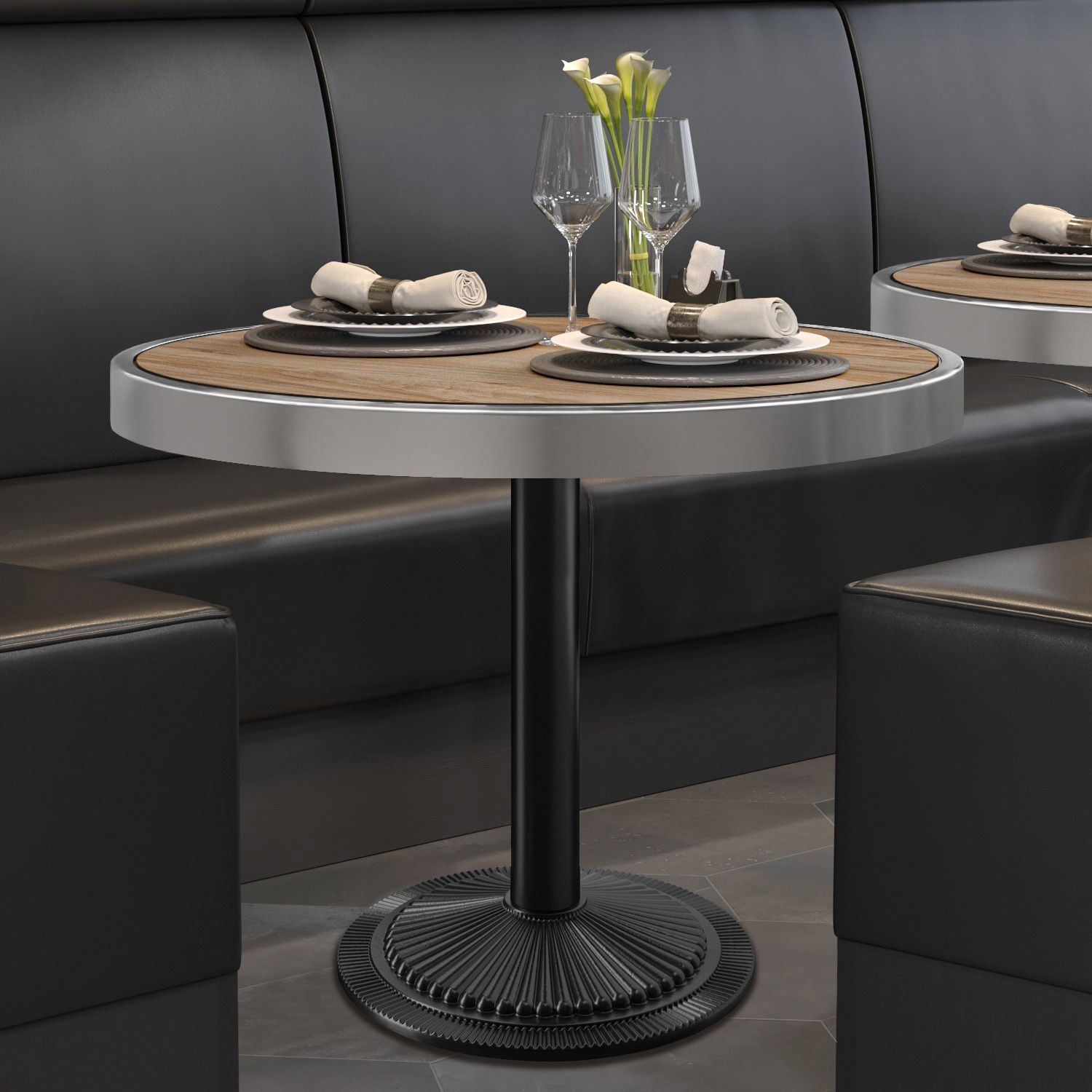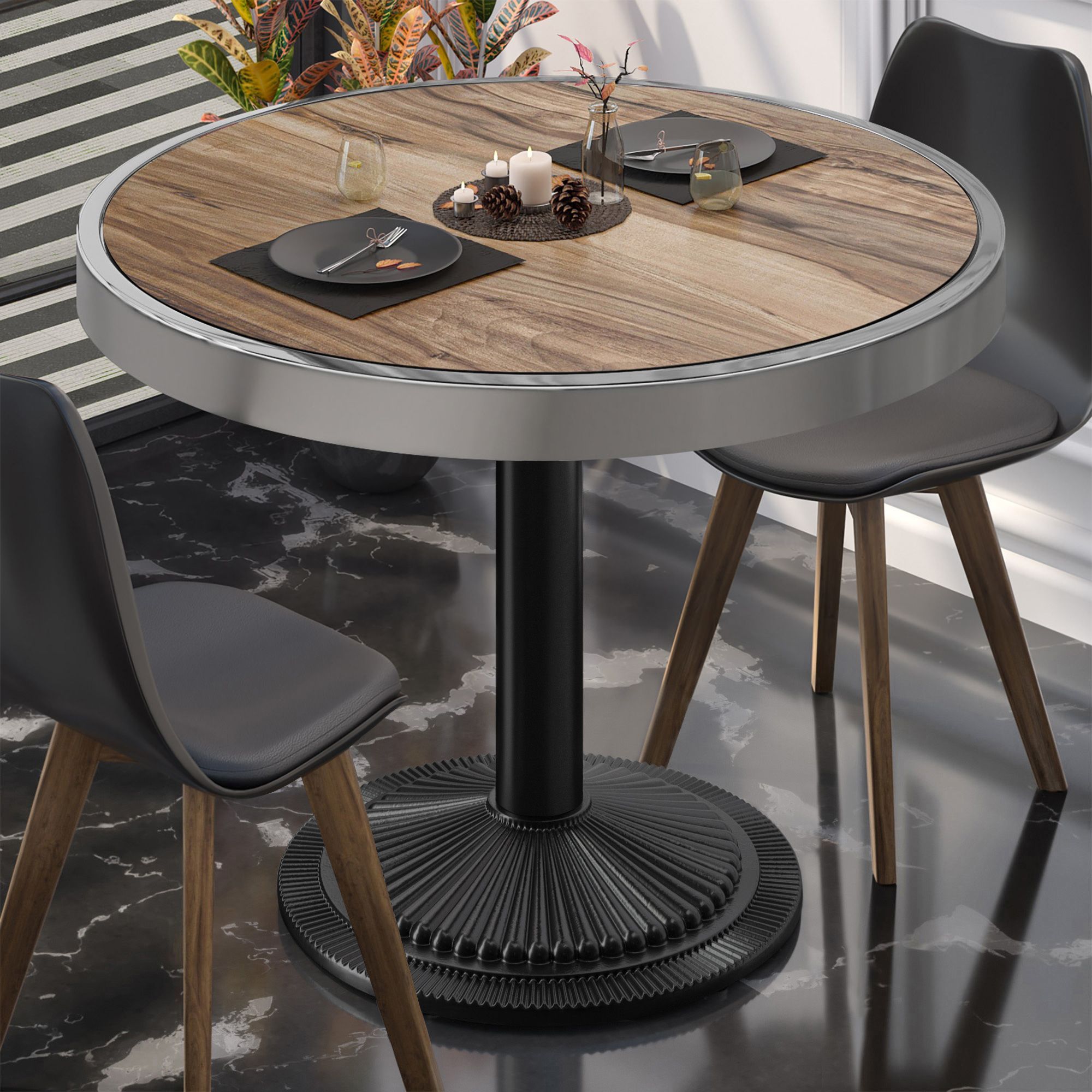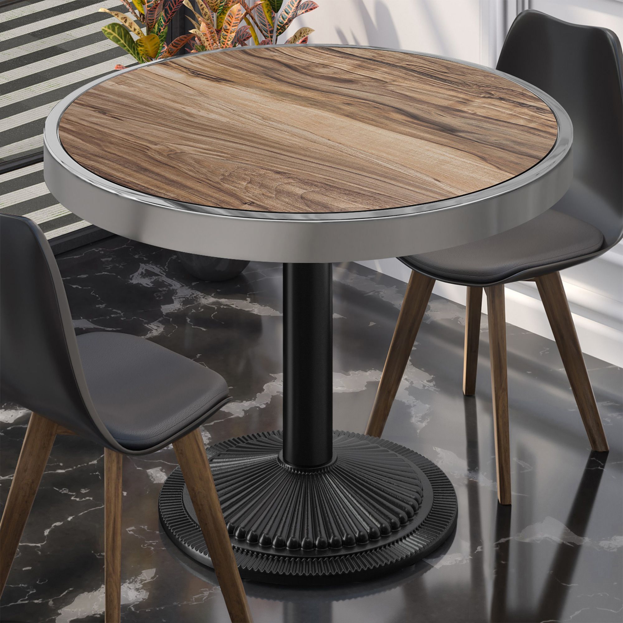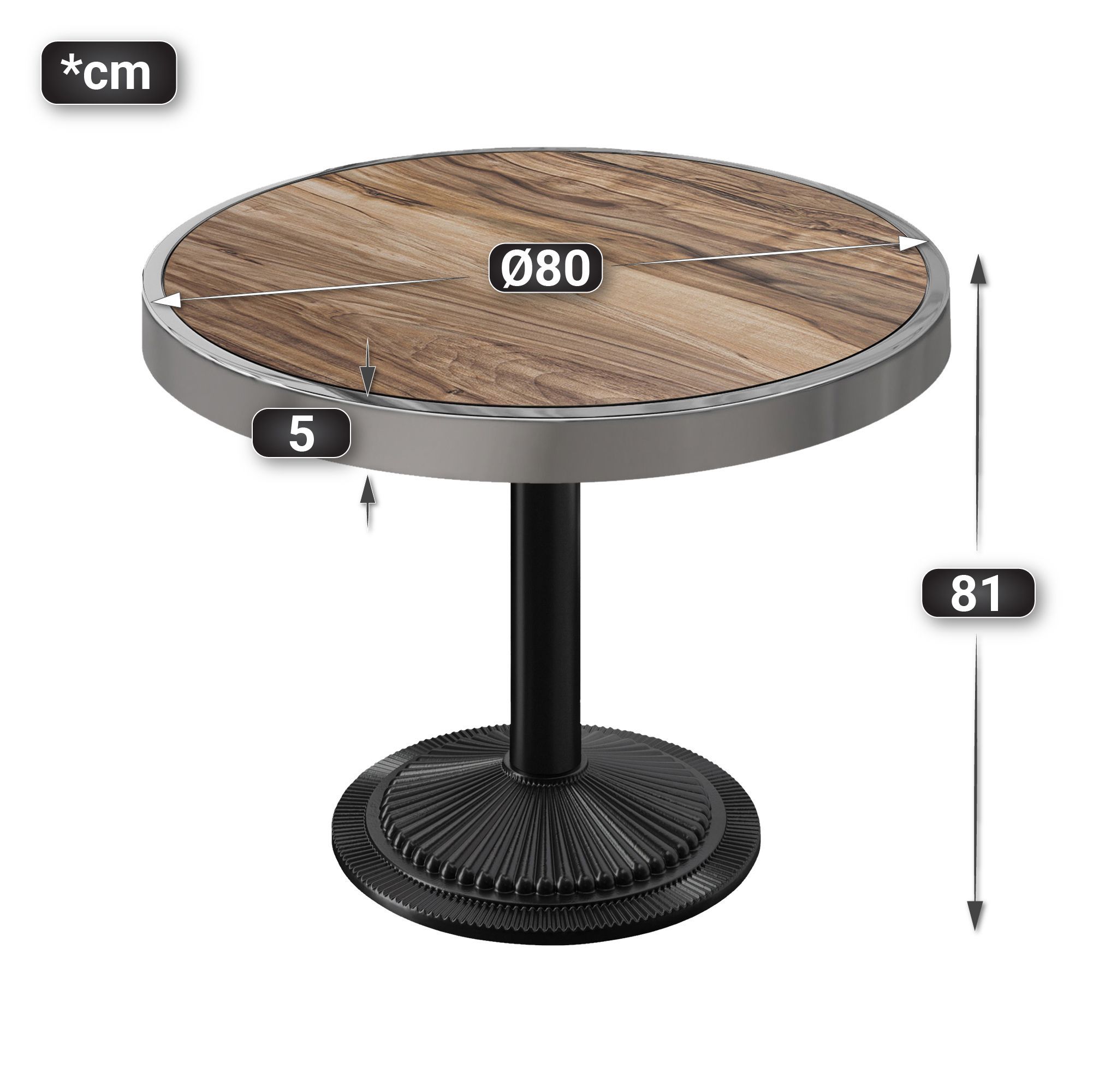 BMX | Bistro Tisch | Ø 80 x 81 cm | Rund | Chromrahmen | Sheesham / Schwarz | Bistro