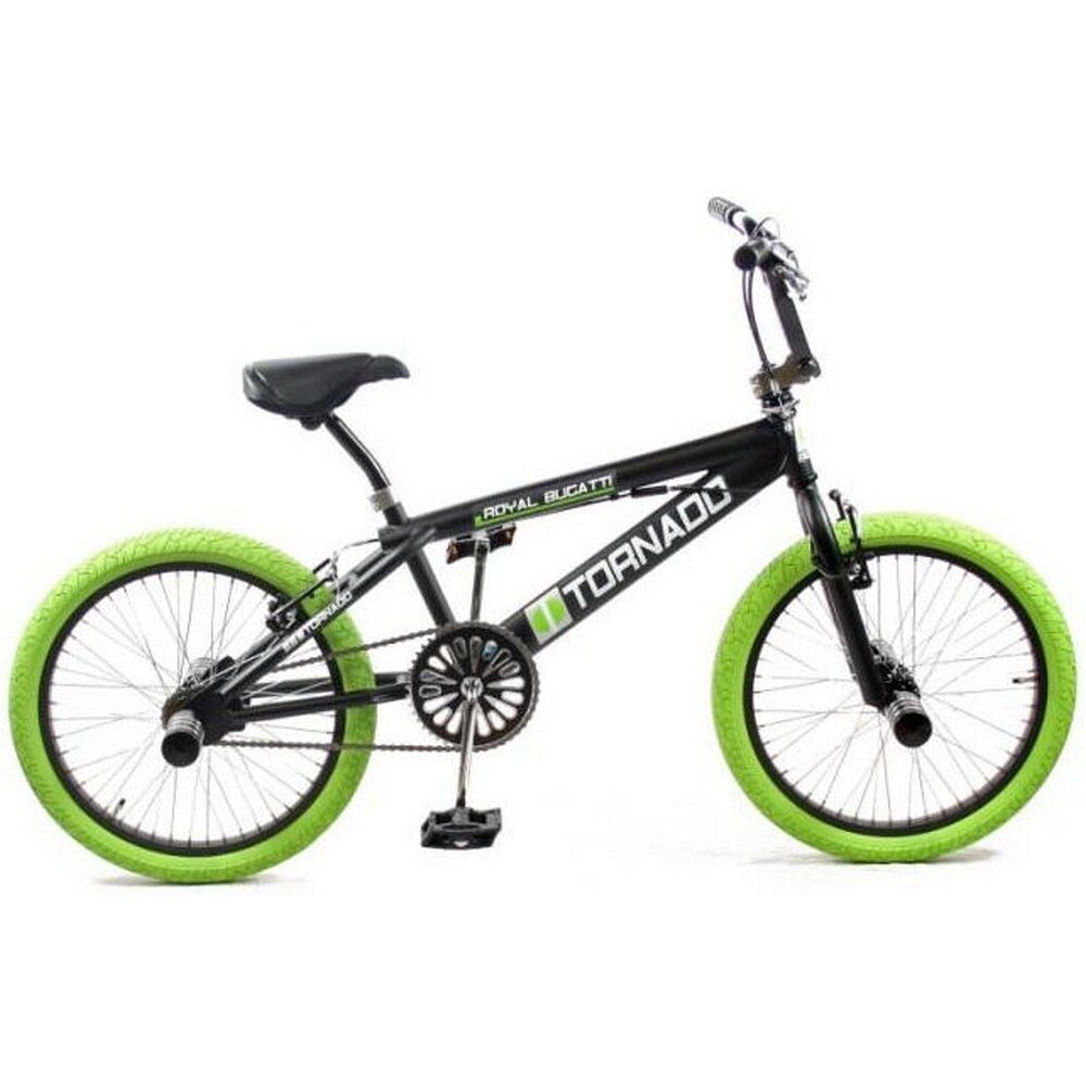 Royal BMX-Rad Royal-Bugatti Tornado Freestyle 20 Zoll - Matt Schwarz mit Grünen Reifen