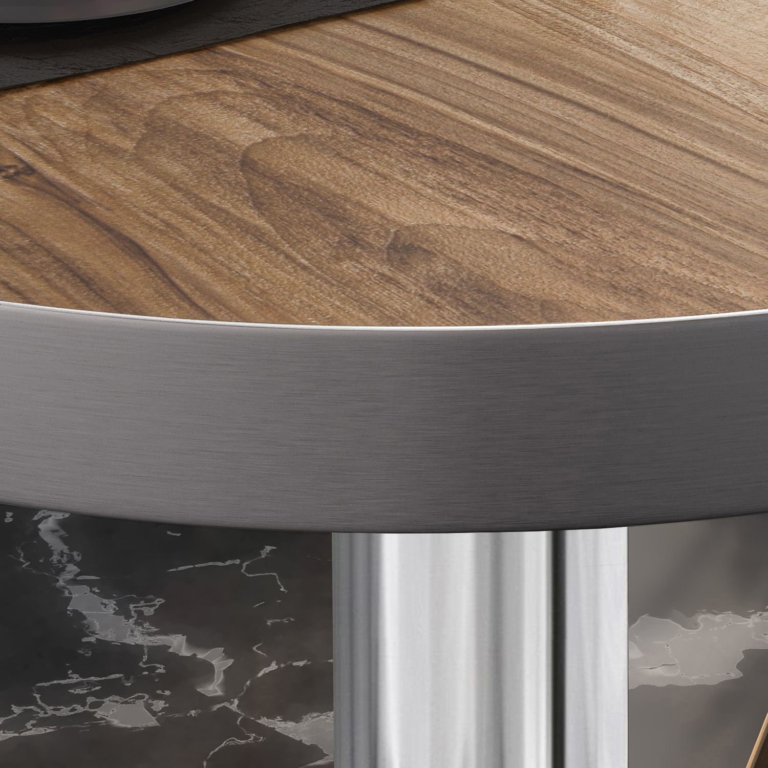 BN | Bistro Loungetisch | Ø: 70 x 36 cm | Edelstahl Rand | Sheesham / Edelstahl | B