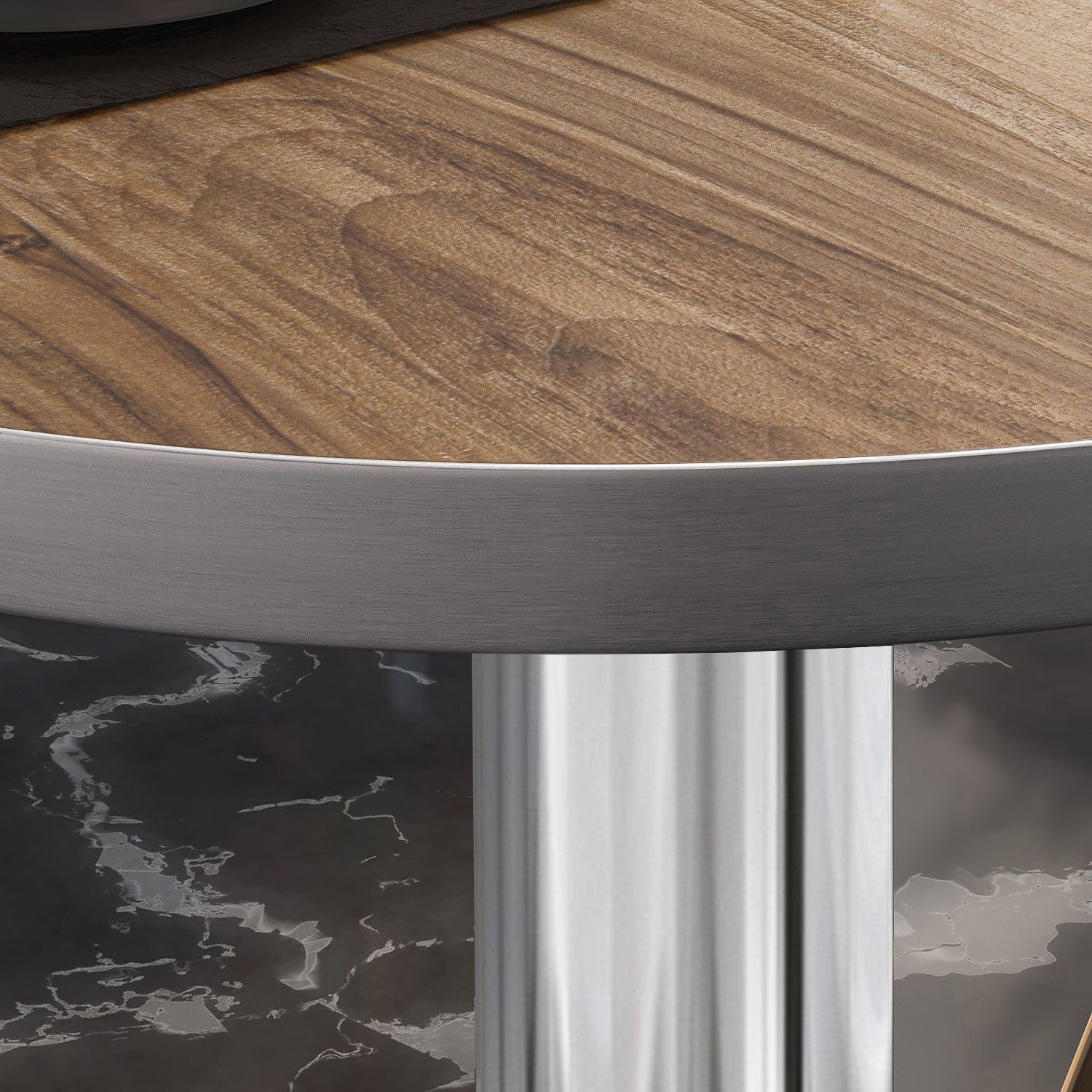 BN | Bistro Loungetisch | Ø: 80 x 36 cm | Edelstahl Rand | Sheesham / Edelstahl | B