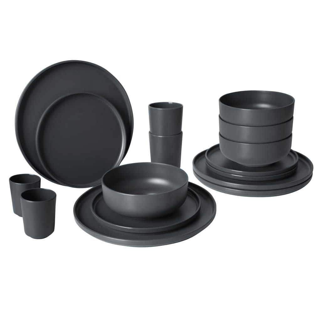 Bo-Camp Bo-Camp 16-tlg. Geschirrset Patom Melamin Anthrazit