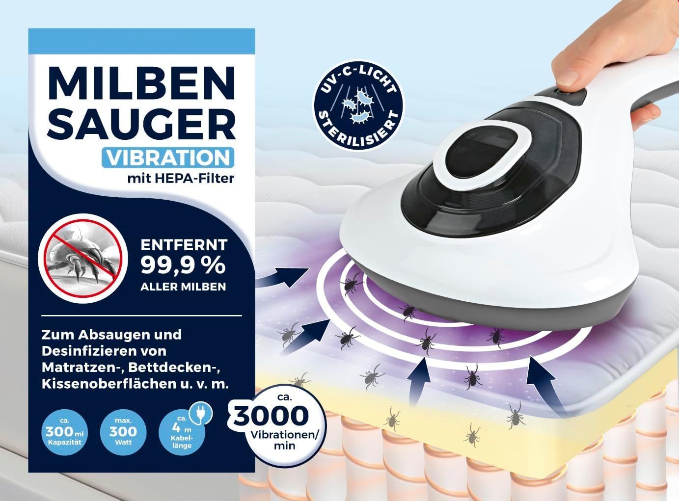 Bob Home Milbensauger 300W mit UV-C-Licht & HEPA-Filter – Matratzensauger