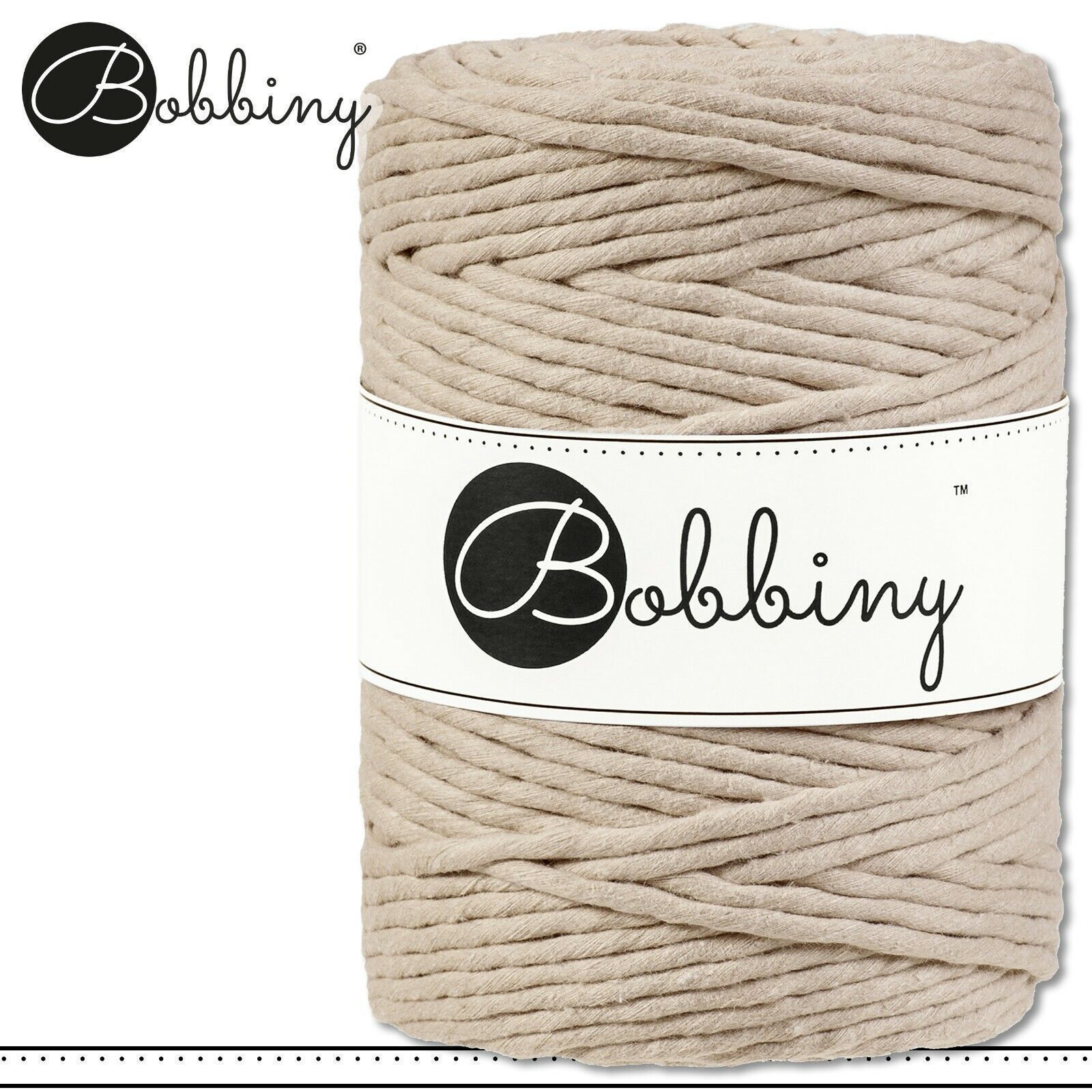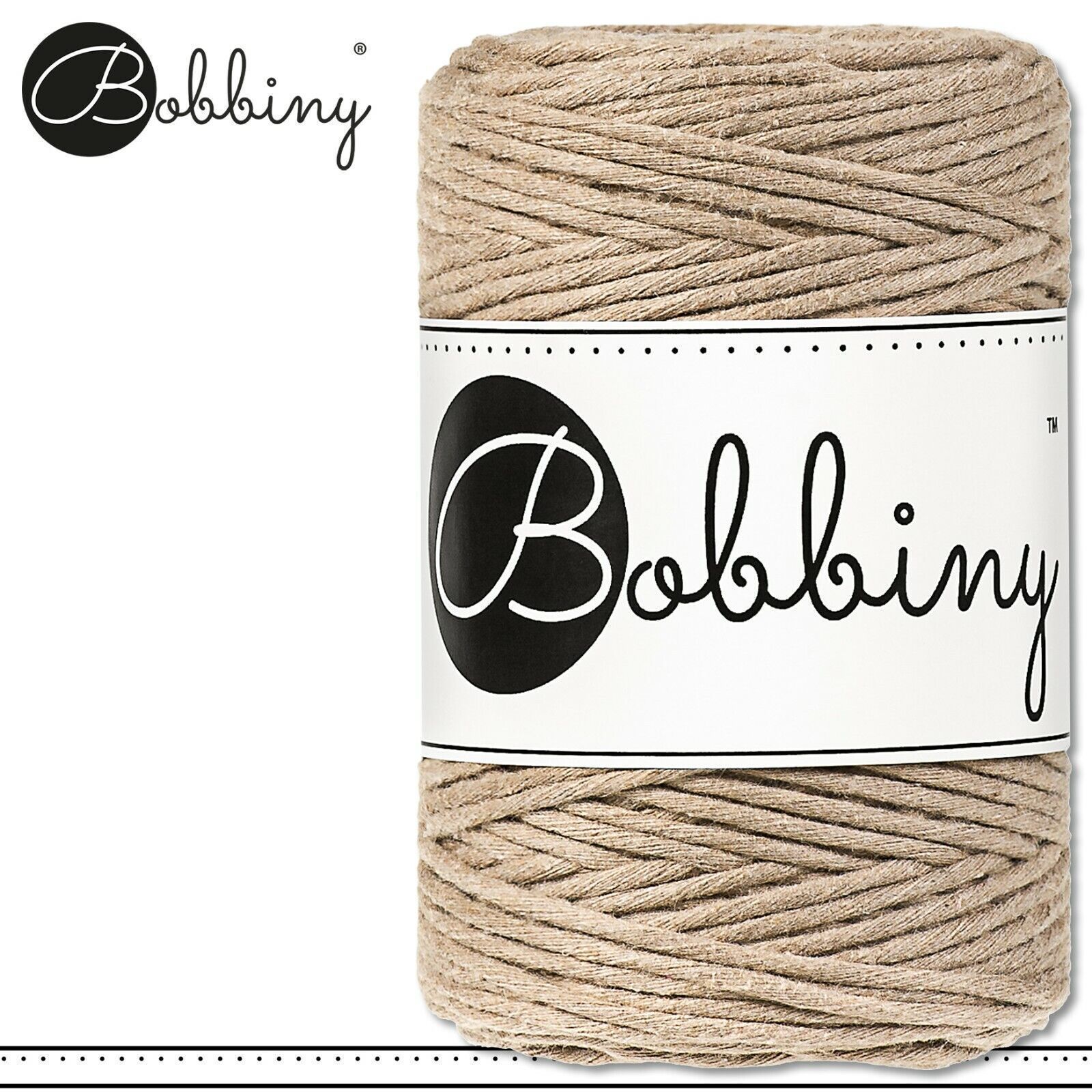 Bobbiny 100 m Makramee-Kordel 1,5 mm verschiedene Farben zur Auswahl Beschreibung Euro Material: 100% recycelte Baumwolle Besteht aus 28 Garnfäden einfach gedreht Euro Material Golden Natural: 98% recycelte Baumwolle, 1% Polyester, 1% Polyamide Besteht aus 28 Garnfäden einfach gedreht Euro Material