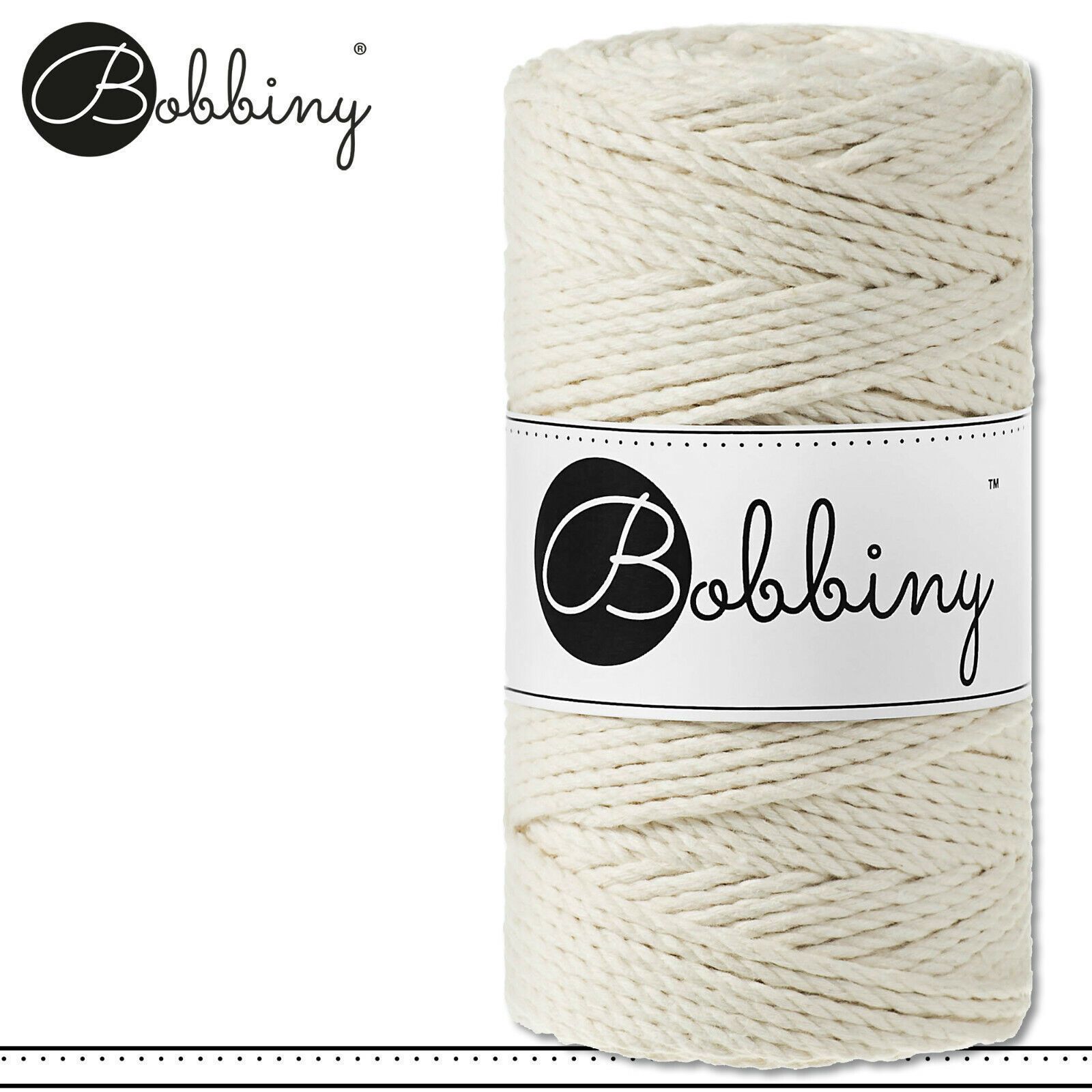 Bobbiny 100 m Makramee-Kordel 3 mm dreifach gedreht | Natural | Premium