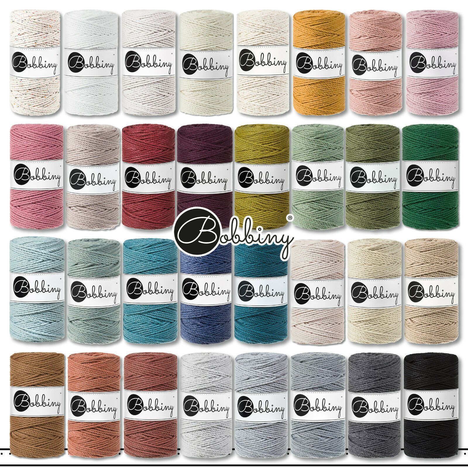 Bobbiny 100 m Makramee-Kordel 3 mm dreifach gedreht | Premium 32 Farben Auswahl