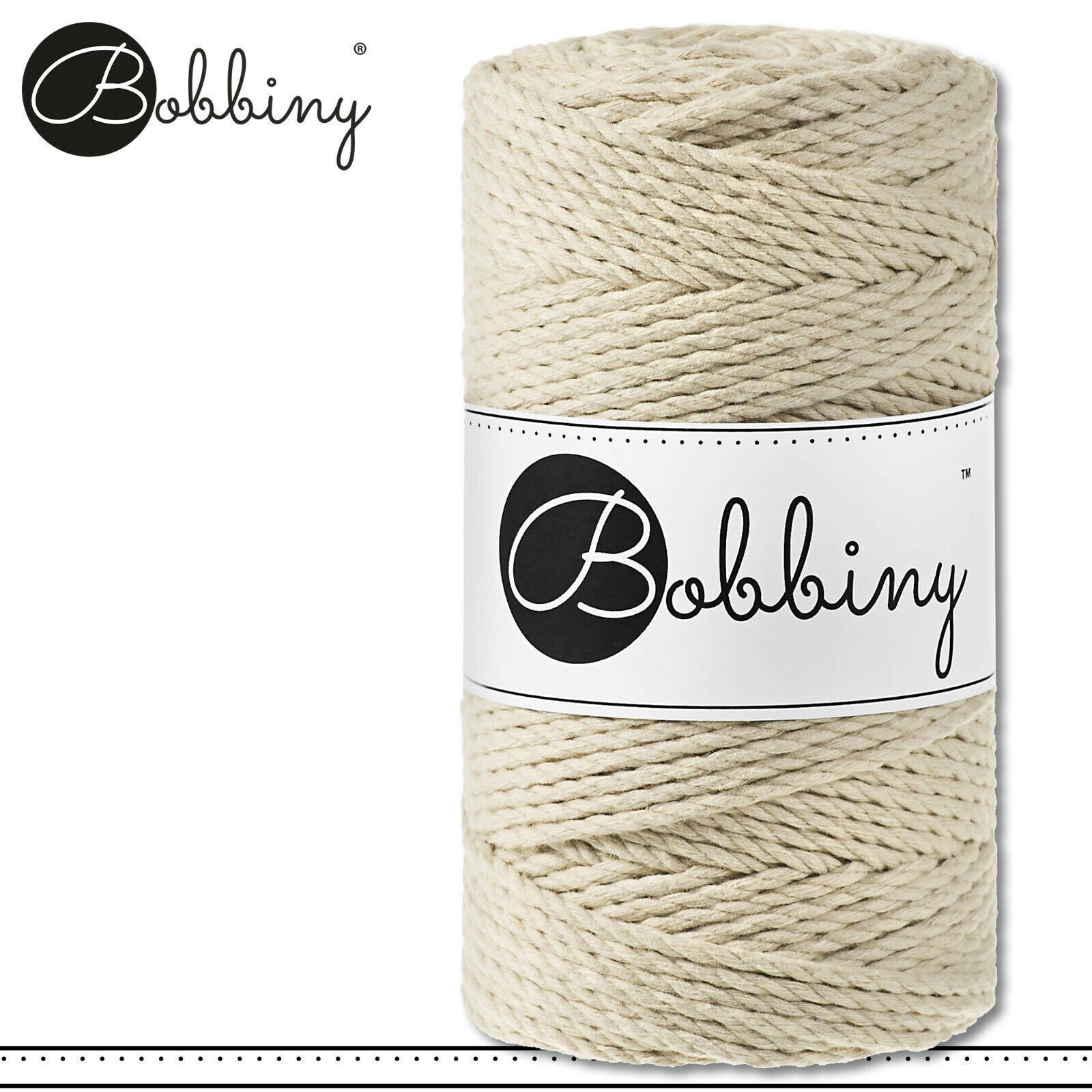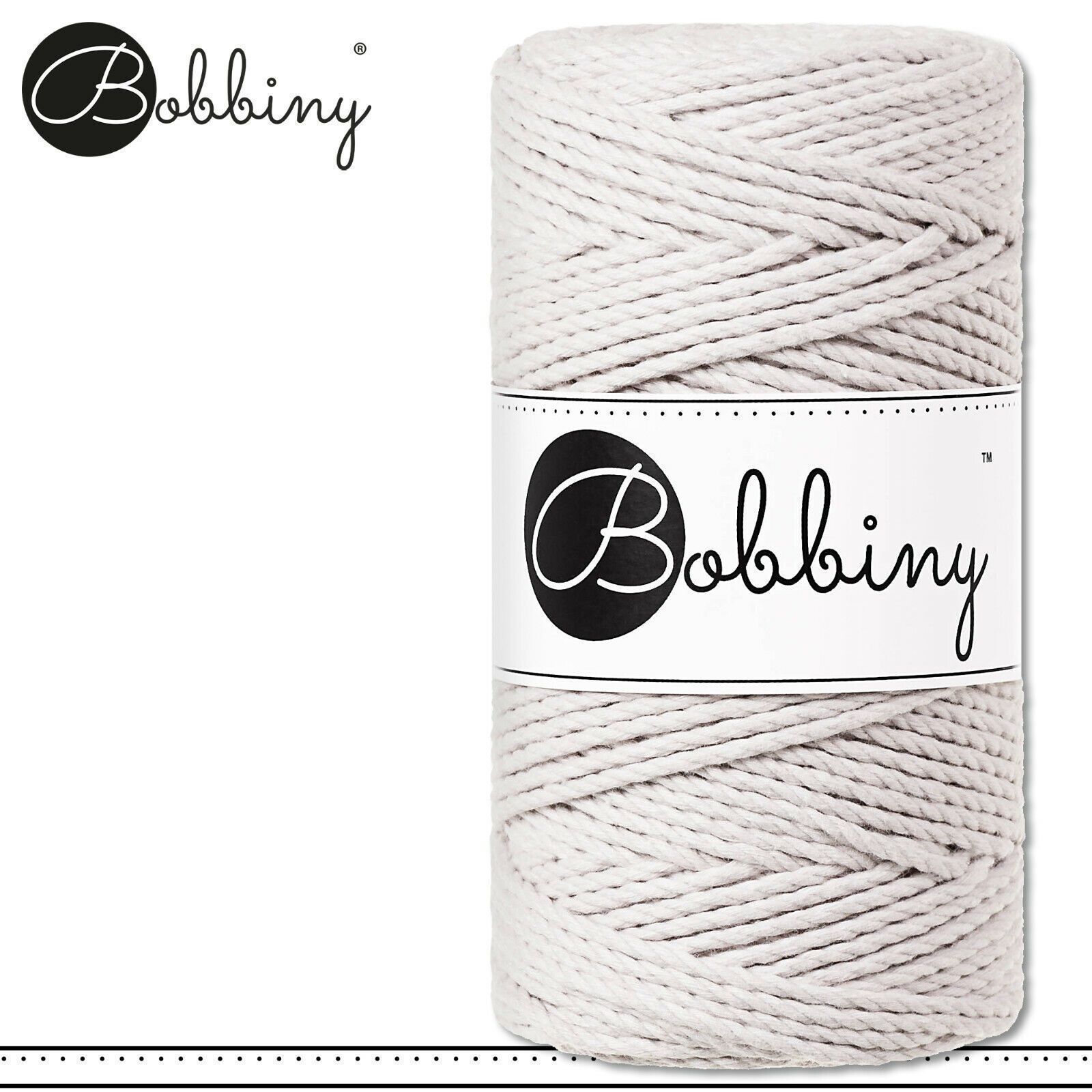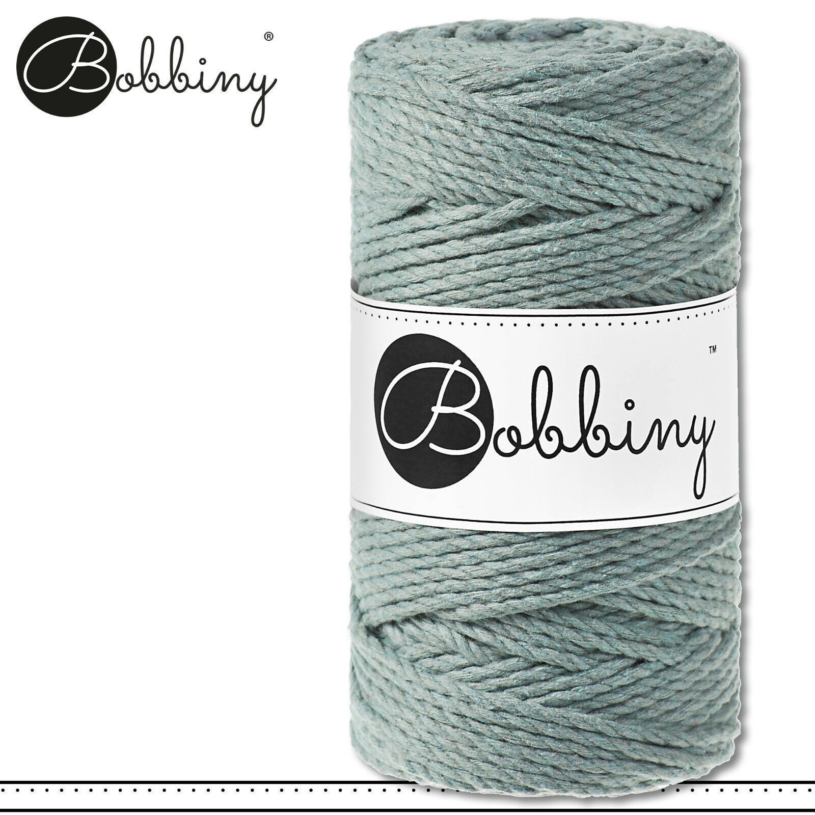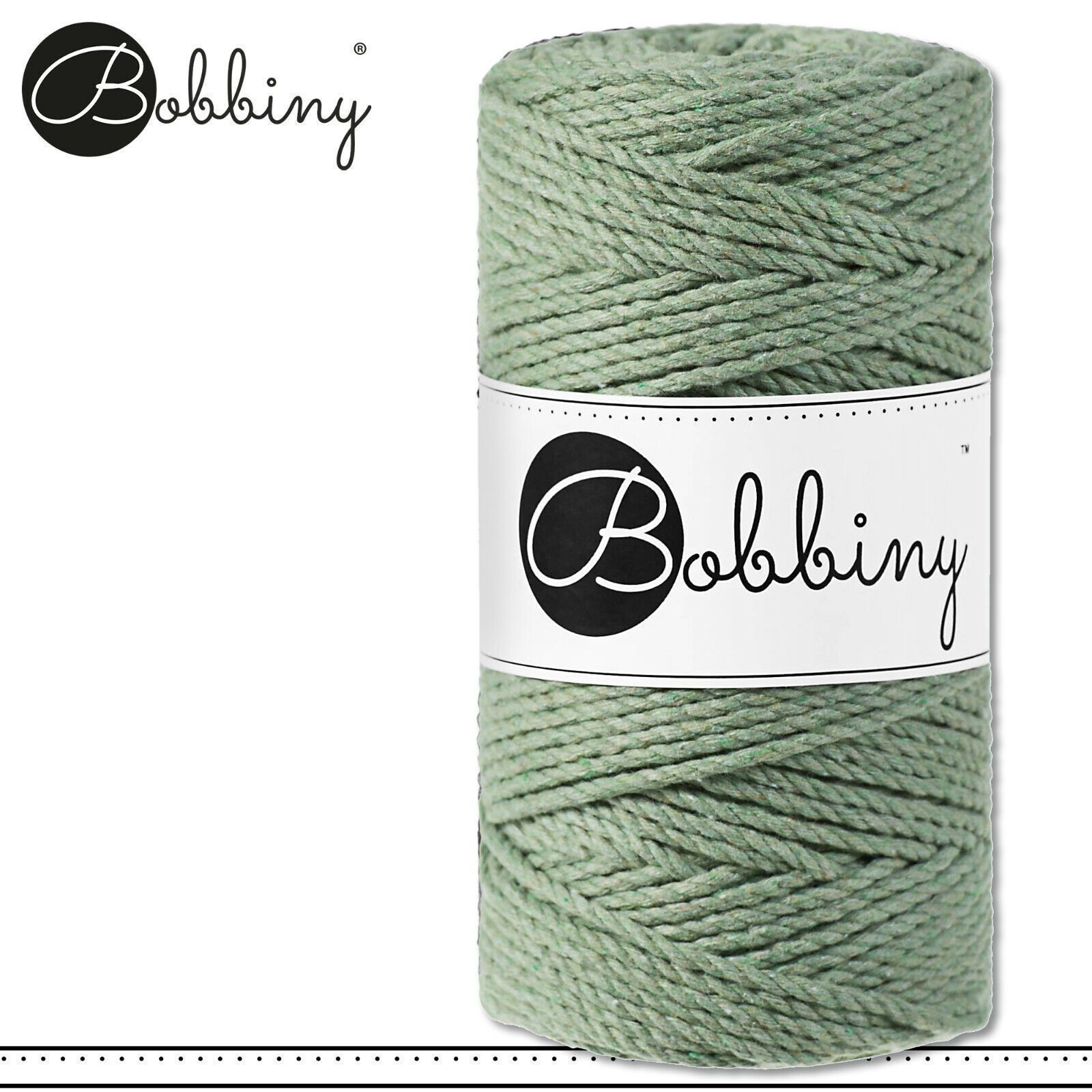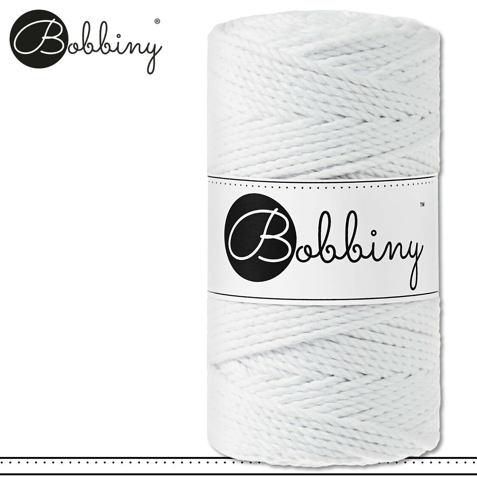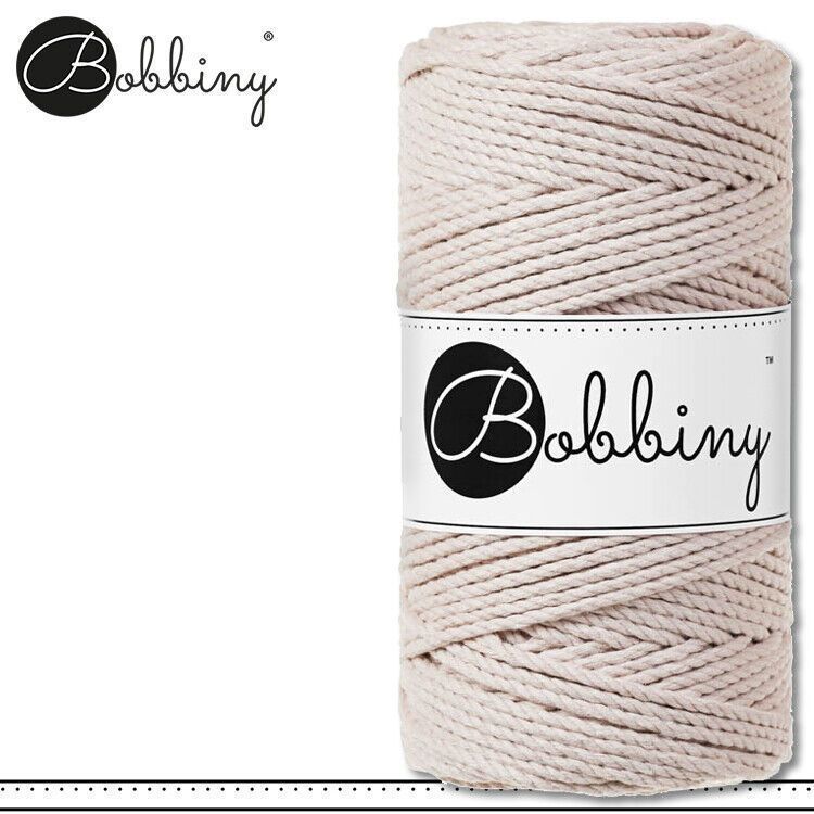 Bobbiny 100 m Makramee-Kordel 3 mm dreifach gedreht Beschreibung Euro Material : 100% recycelte Baumwolle Besteht aus 3 x 20 Garnfäden Euro Öko-Tex-Zulassung Standard 100 Euro Gewicht : circa 400 g Euro Durchmesser : 3 mm Euro Laufmeter : 100 m Euro Nadelstärke : 5 Euro Umweltfreundlich : innere Pap
