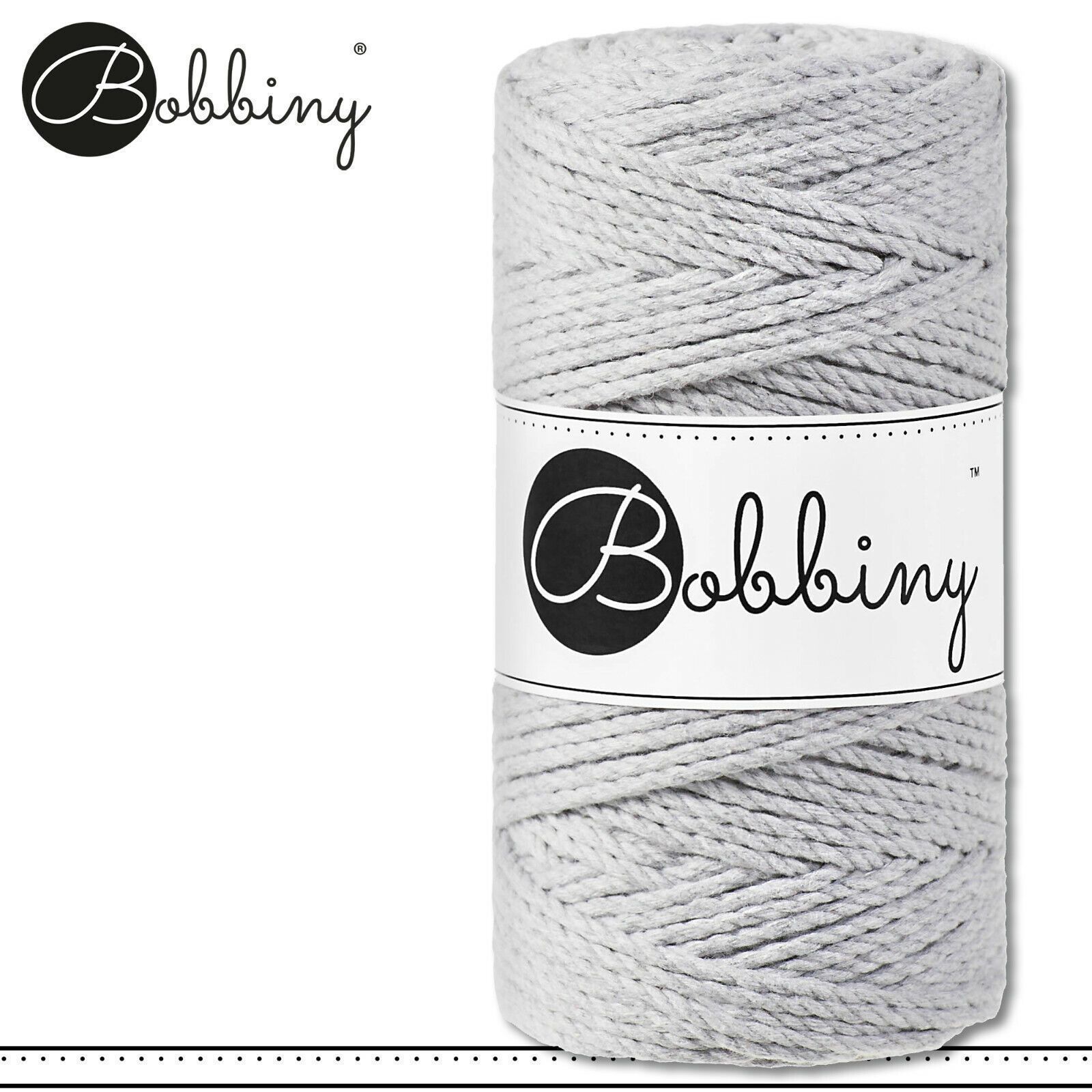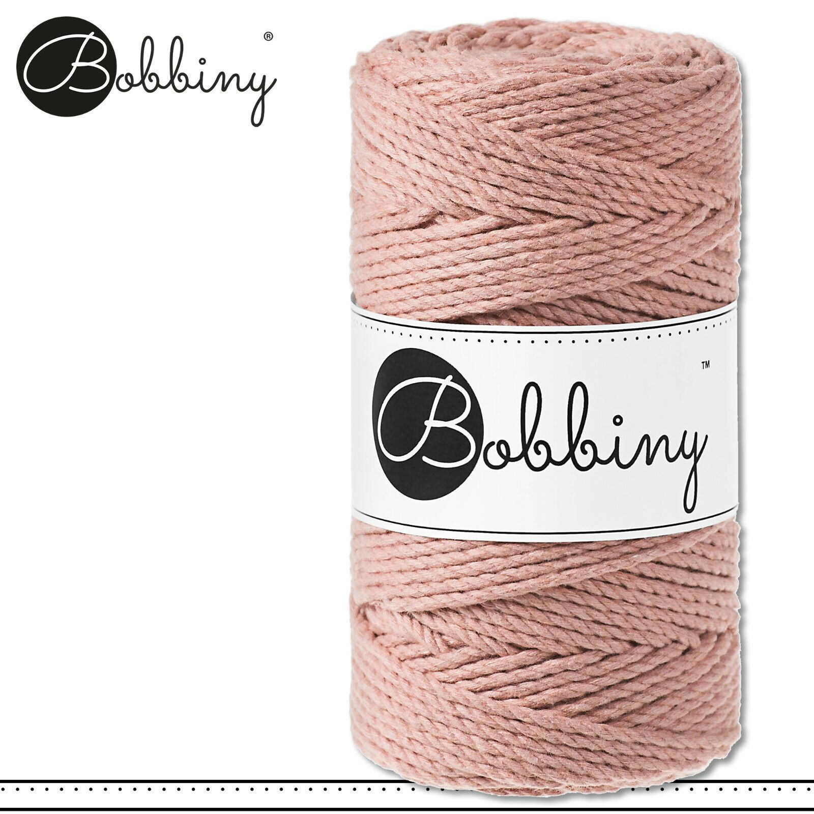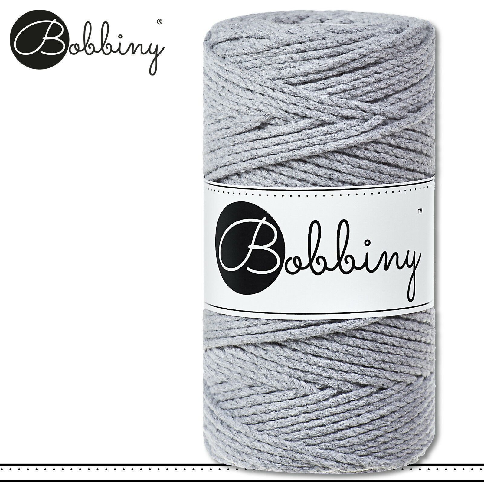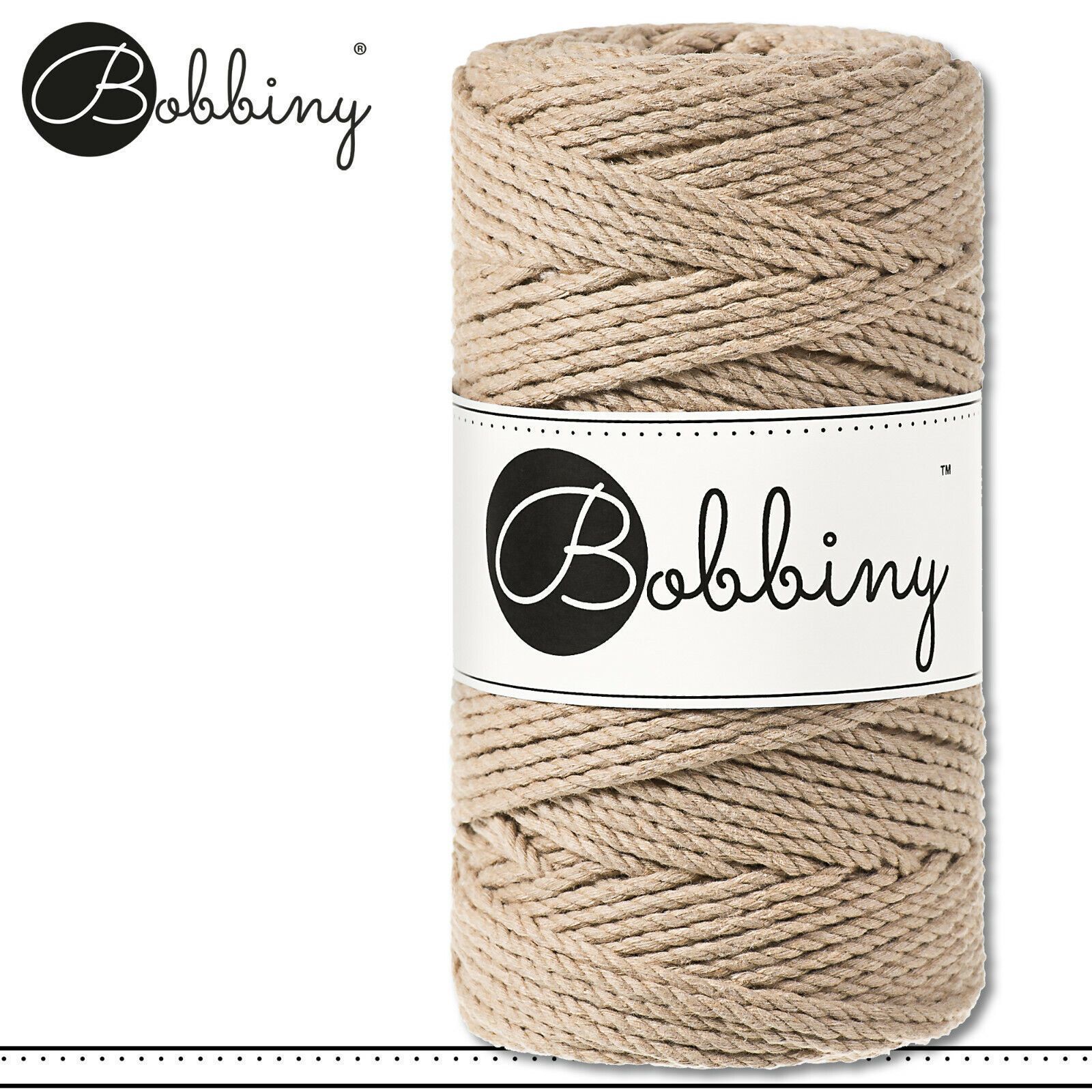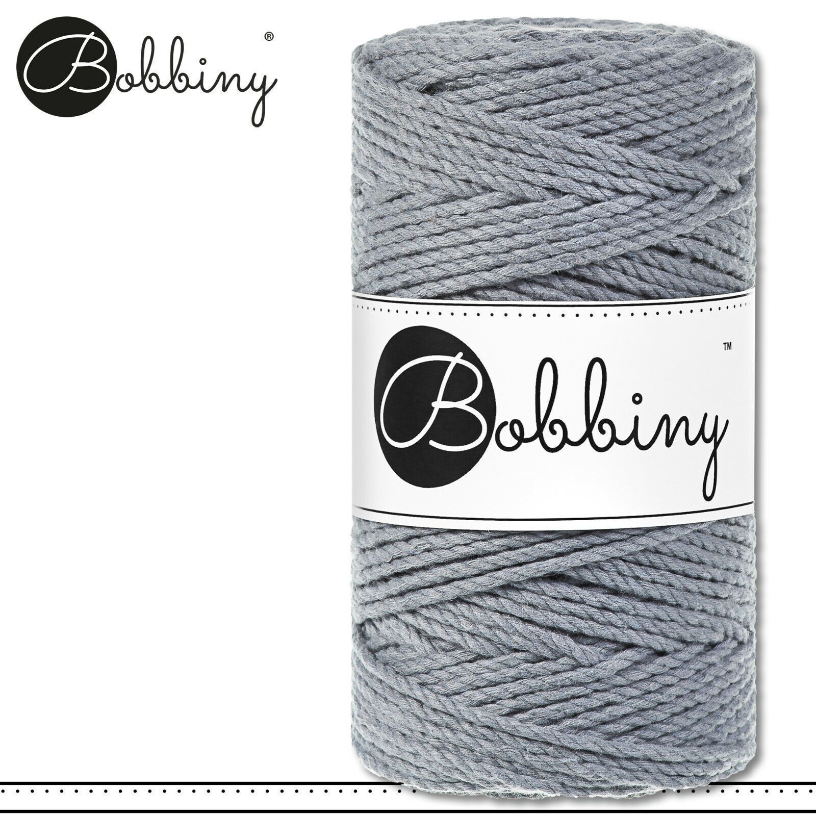 Bobbiny 100 m Makramee-Kordel 3 mm dreifach gedreht Beschreibung Euro Material : 100% recycelte Baumwolle Besteht aus 3 x 20 Garnfäden Euro Öko-Tex-Zulassung Standard 100 Euro Gewicht : circa 400 g Euro Durchmesser : 3 mm Euro Laufmeter : 100 m Euro Nadelstärke : 5 Euro Umweltfreundlich : innere Pap