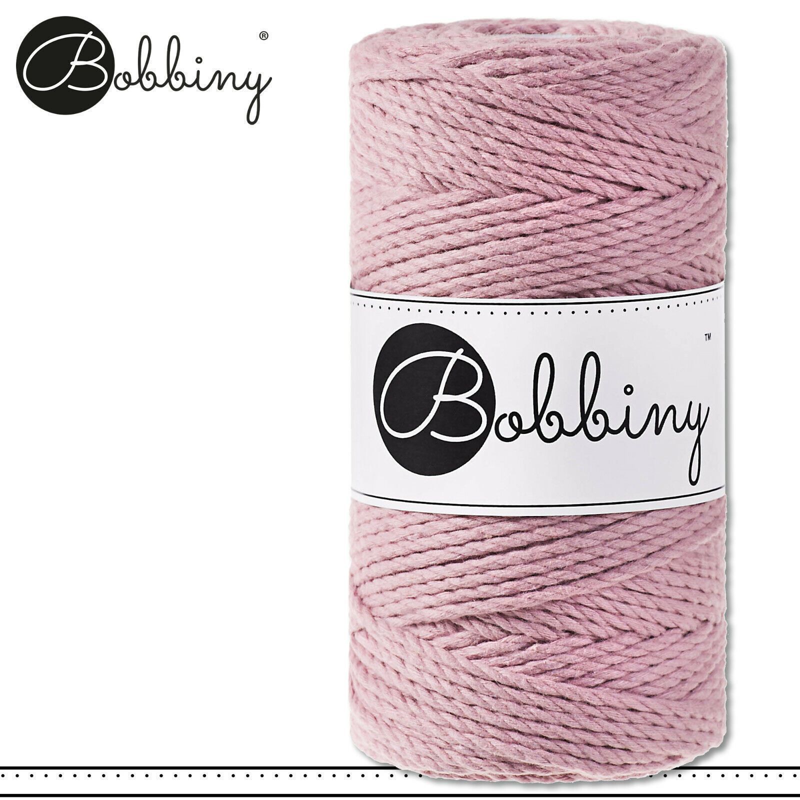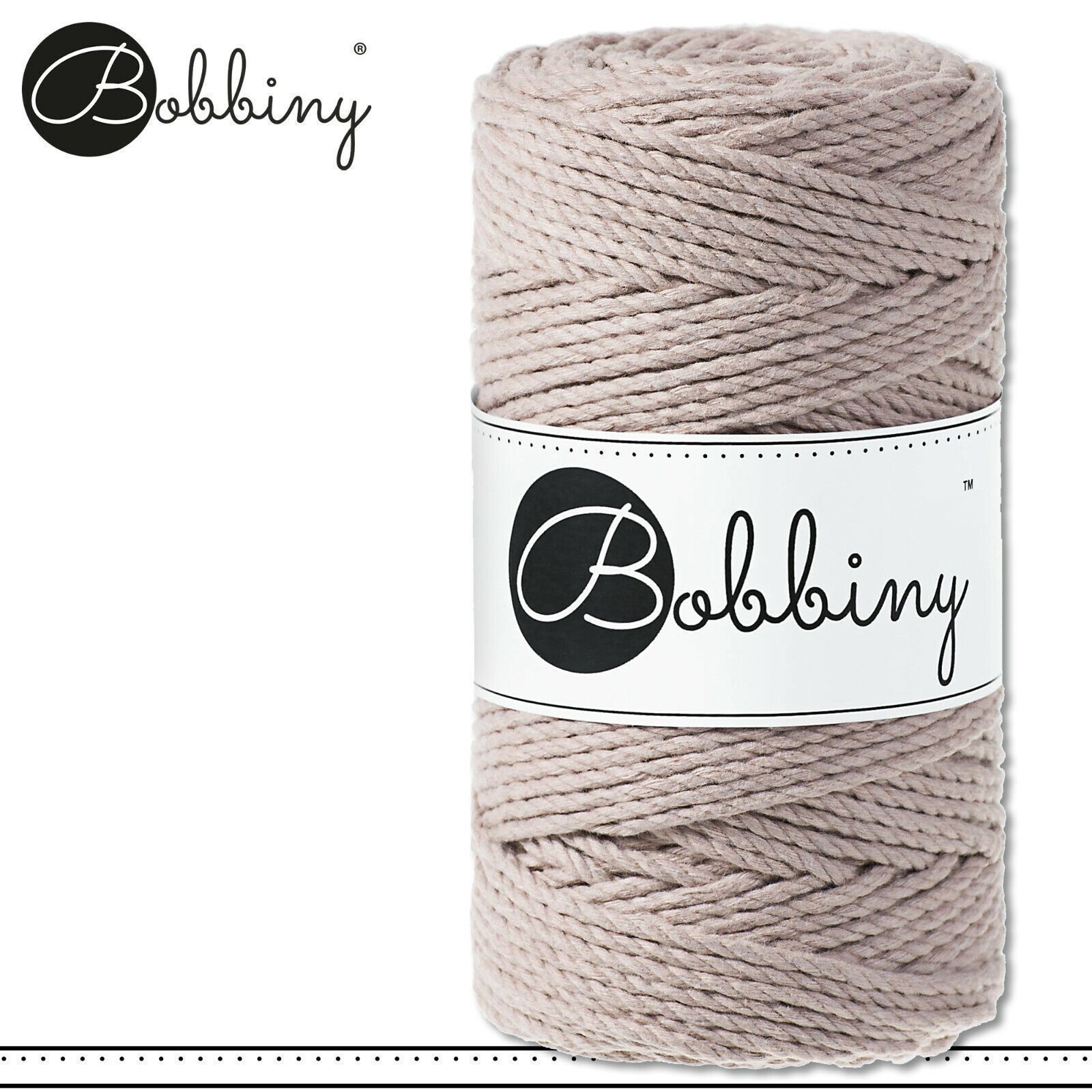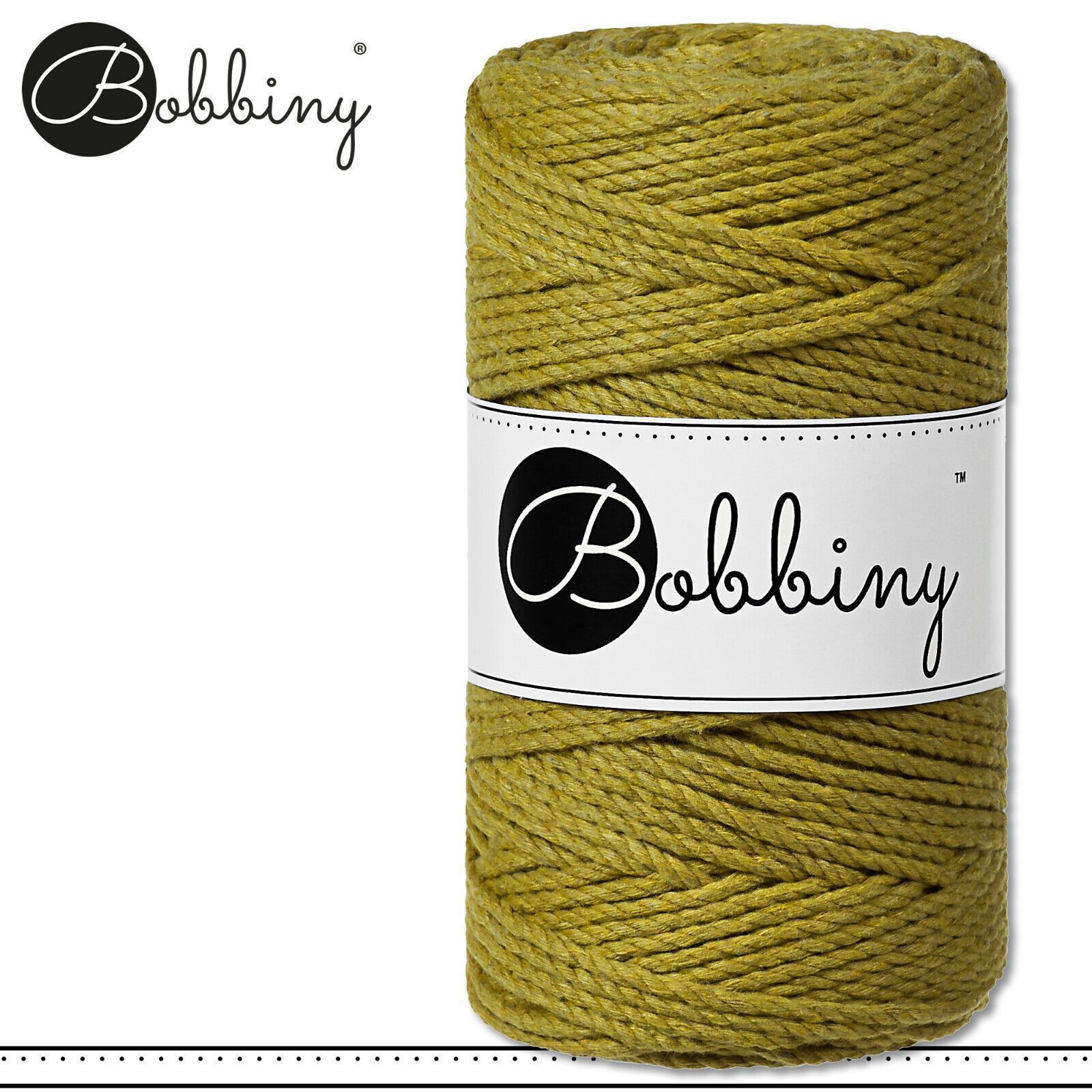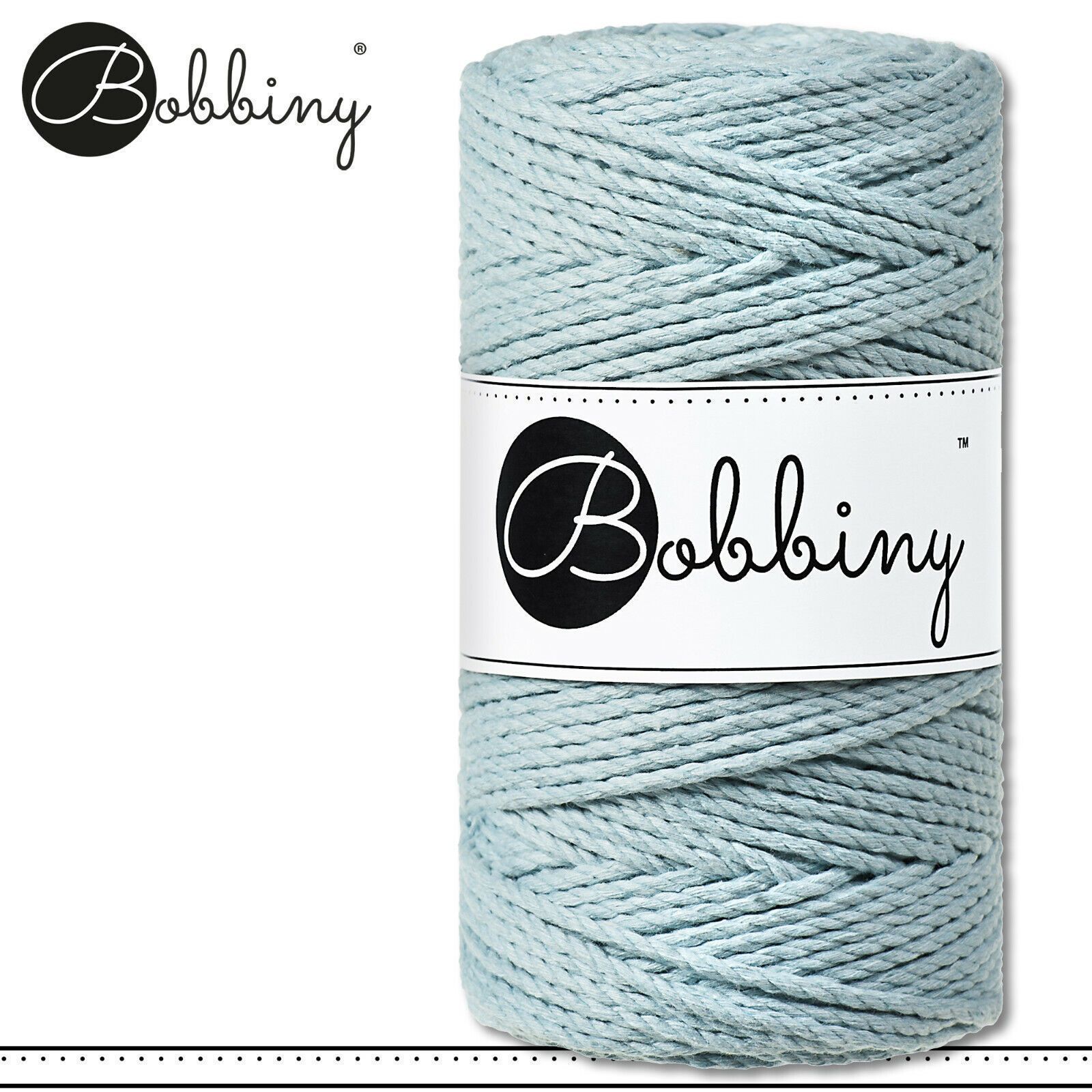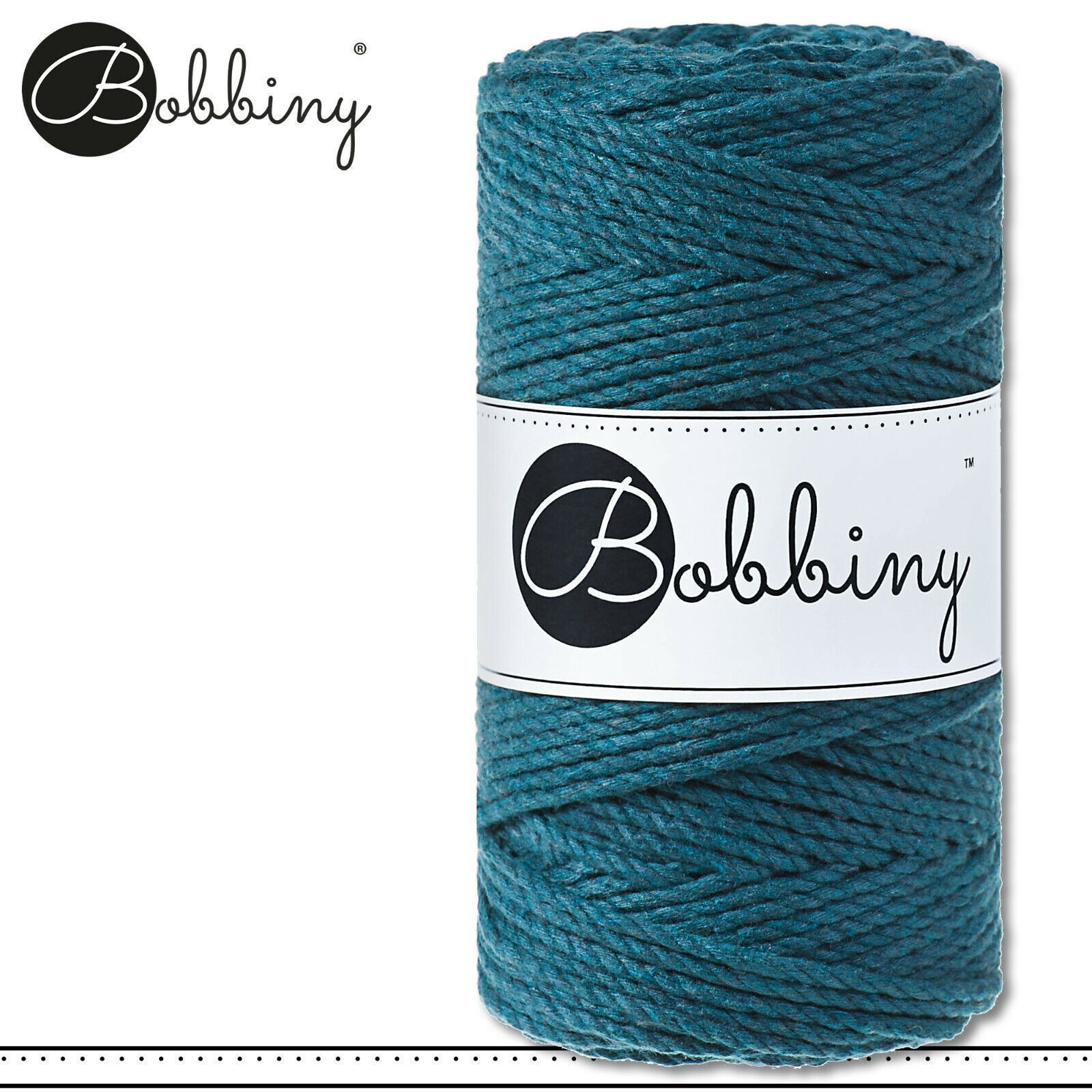 Bobbiny 100 m Makramee-Kordel 3 mm dreifach gedreht Beschreibung Euro Material : 100% recycelte Baumwolle Besteht aus 3 x 20 Garnfäden Euro Öko-Tex-Zulassung Standard 100 Euro Gewicht : circa 400 g Euro Durchmesser : 3 mm Euro Laufmeter : 100 m Euro Nadelstärke : 5 Euro Umweltfreundlich : innere Pap