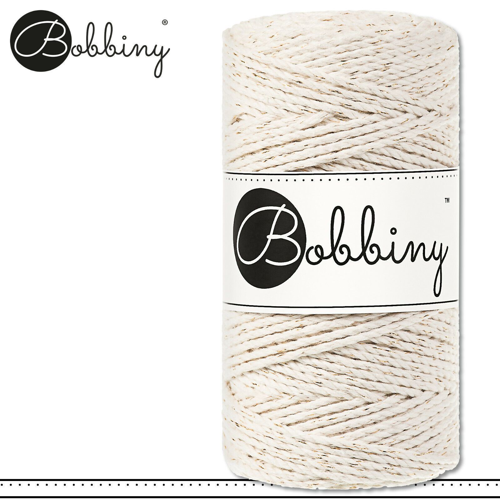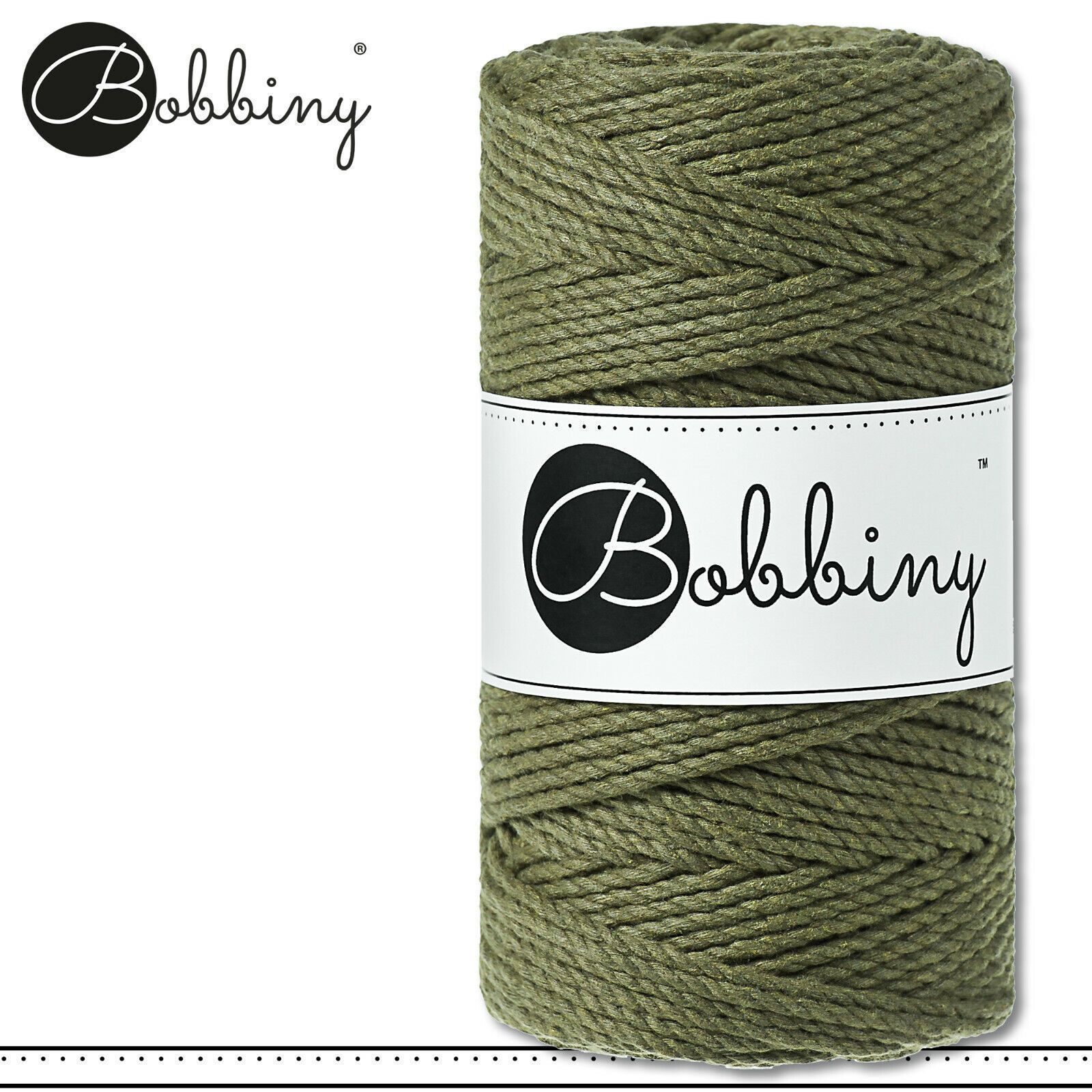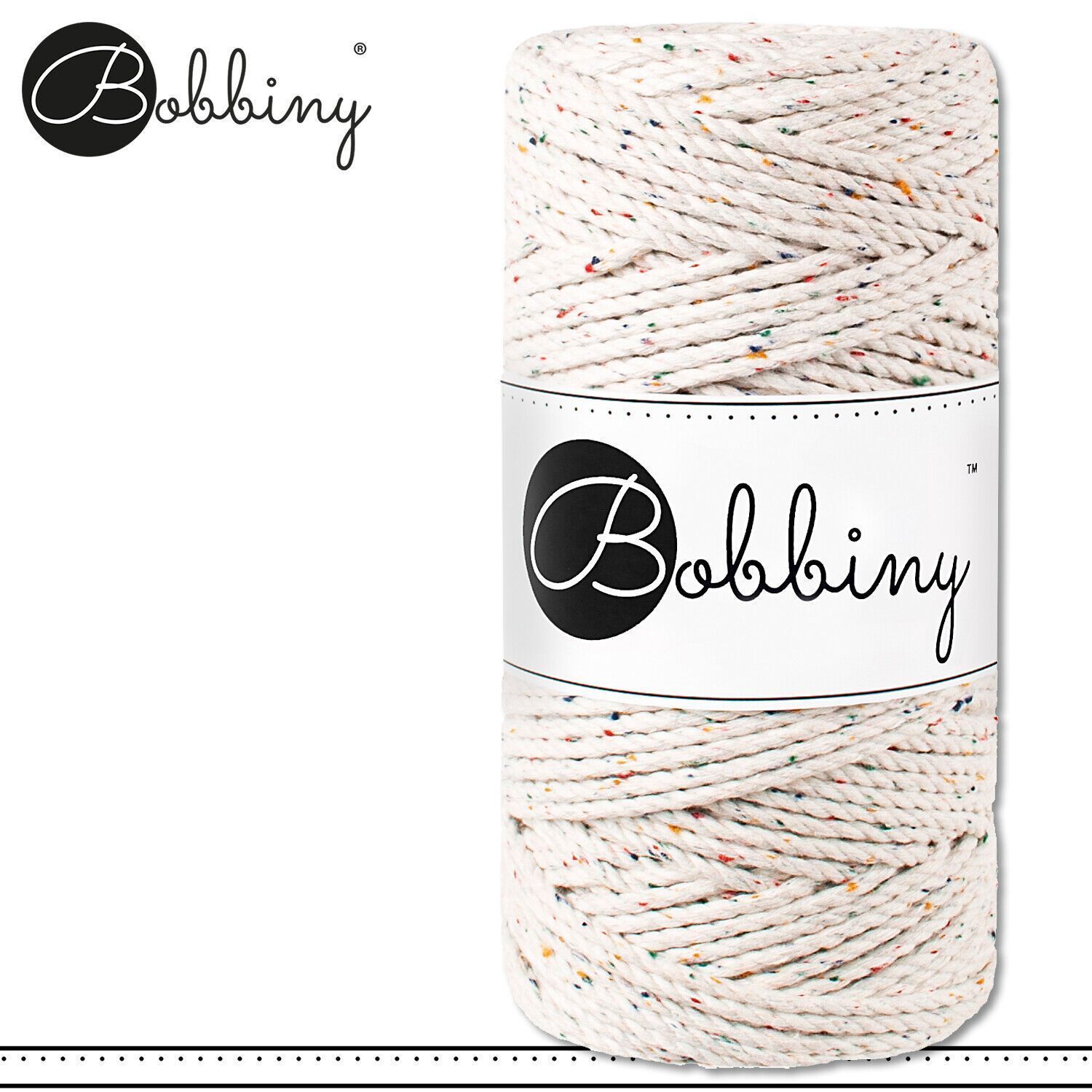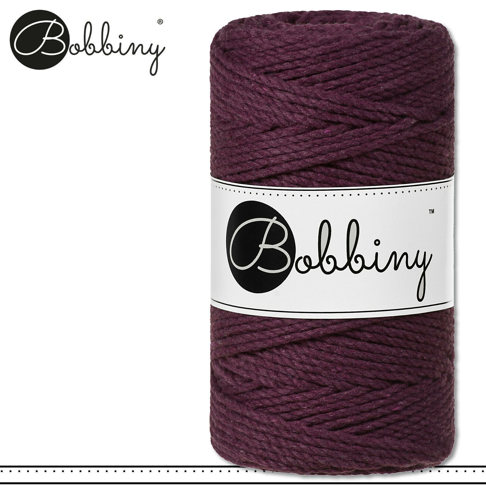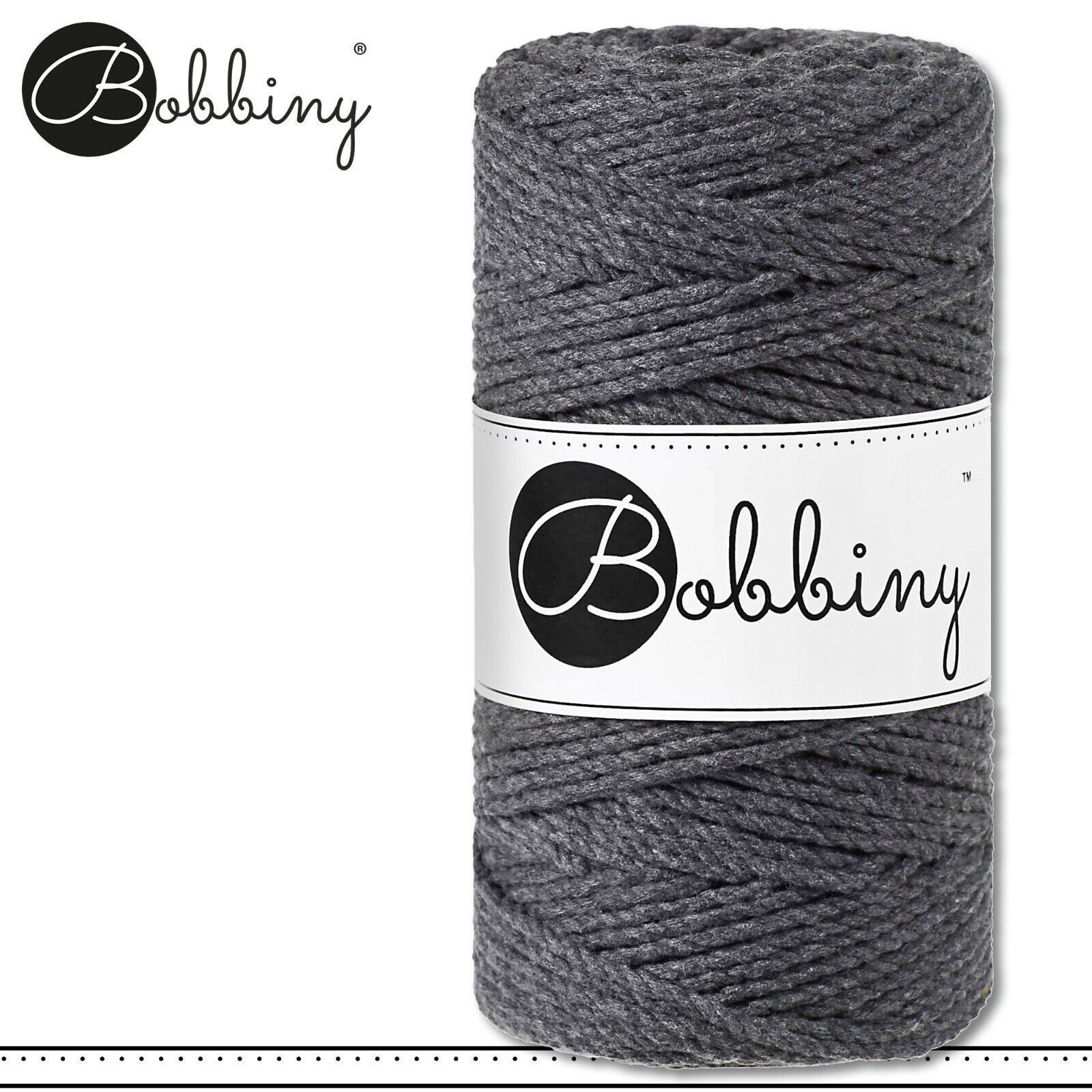 Bobbiny 100 m Makramee-Kordel 3 mm dreifach gedreht Beschreibung Euro Material : 100% recycelte Baumwolle Besteht aus 3 x 20 Garnfäden Euro Öko-Tex-Zulassung Standard 100 Euro Gewicht : circa 400 g Euro Durchmesser : 3 mm Euro Laufmeter : 100 m Euro Nadelstärke : 5 Euro Umweltfreundlich : innere Pap