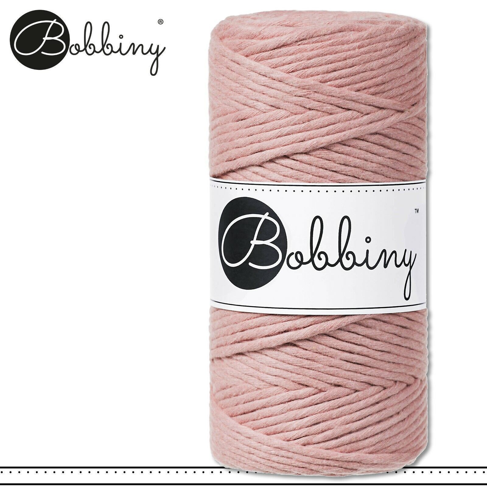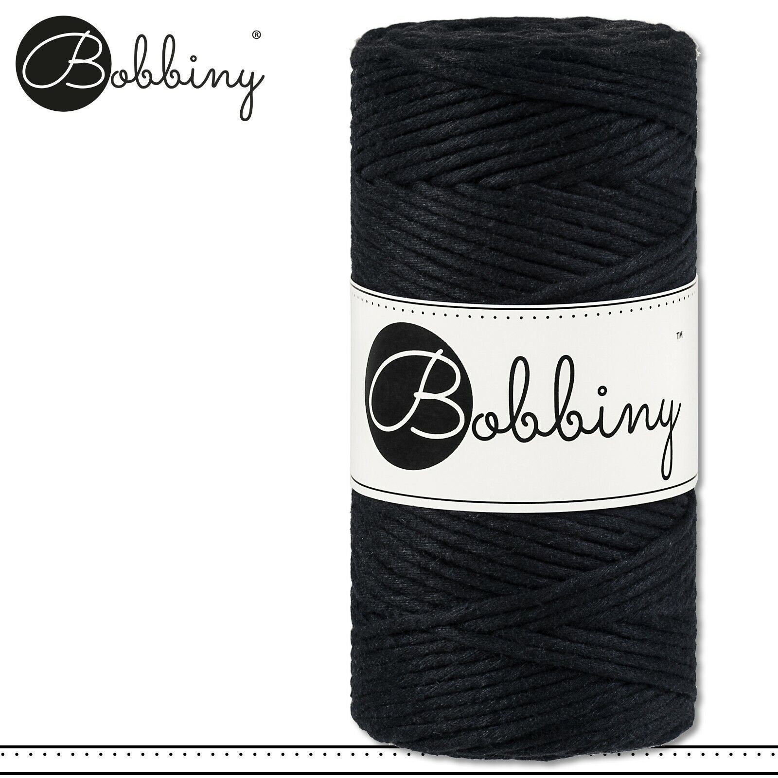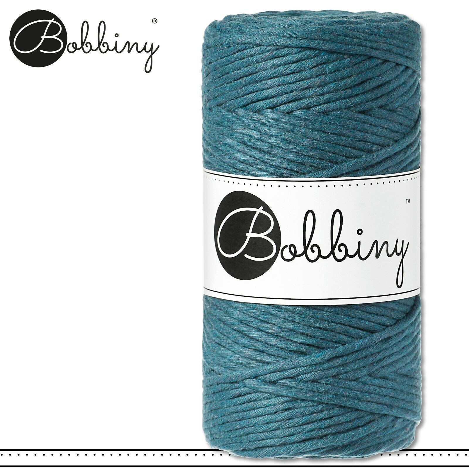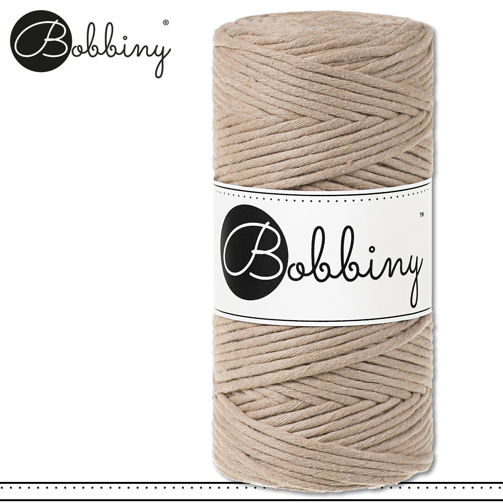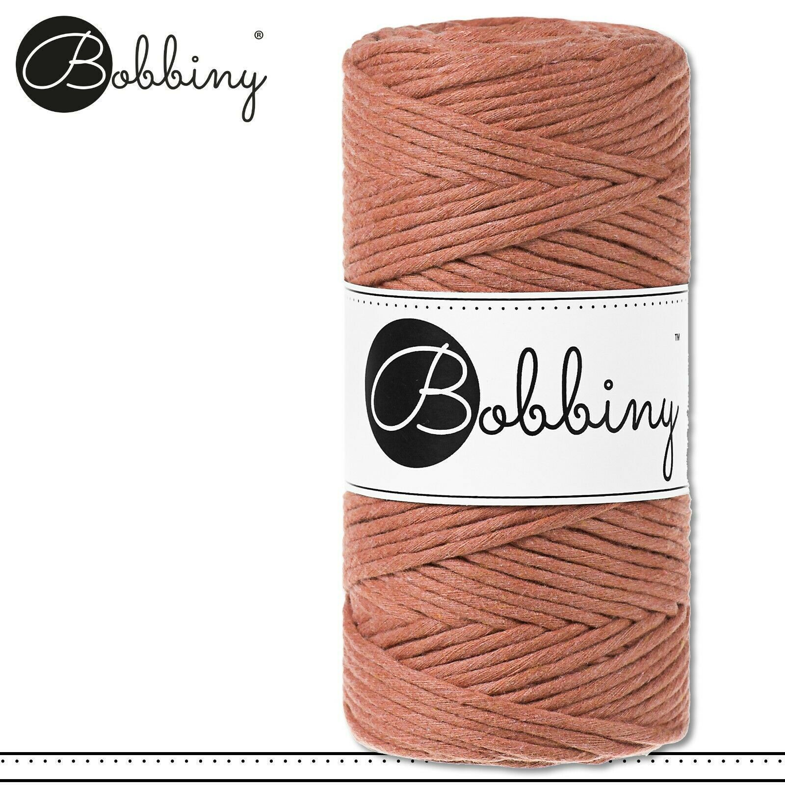 Bobbiny 100 m Makramee-Kordel 3 mm Beschreibung Euro Material : 100% recycelte Baumwolle Euro Öko-Tex-Zulassung Standard 100 Euro Gewicht : circa 160 g Euro Durchmesser : 1,5 mm Euro Laufmeter : 100 m Euro Nadelstärke : 3 Euro Herstellungsland : Europa Euro Verwendungsbeispiele : verschiedene Makram