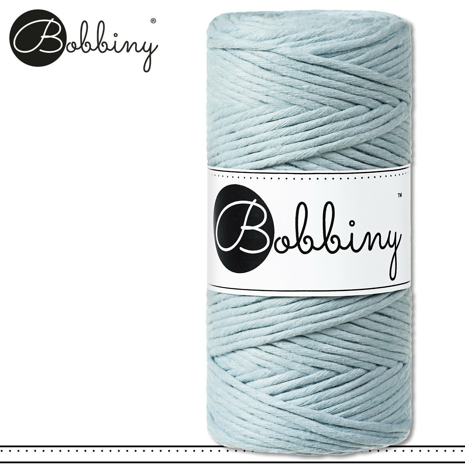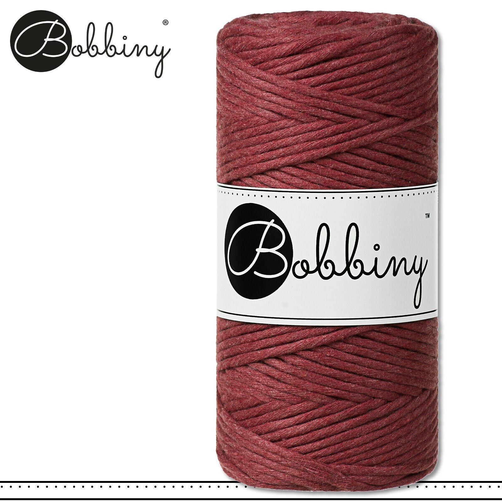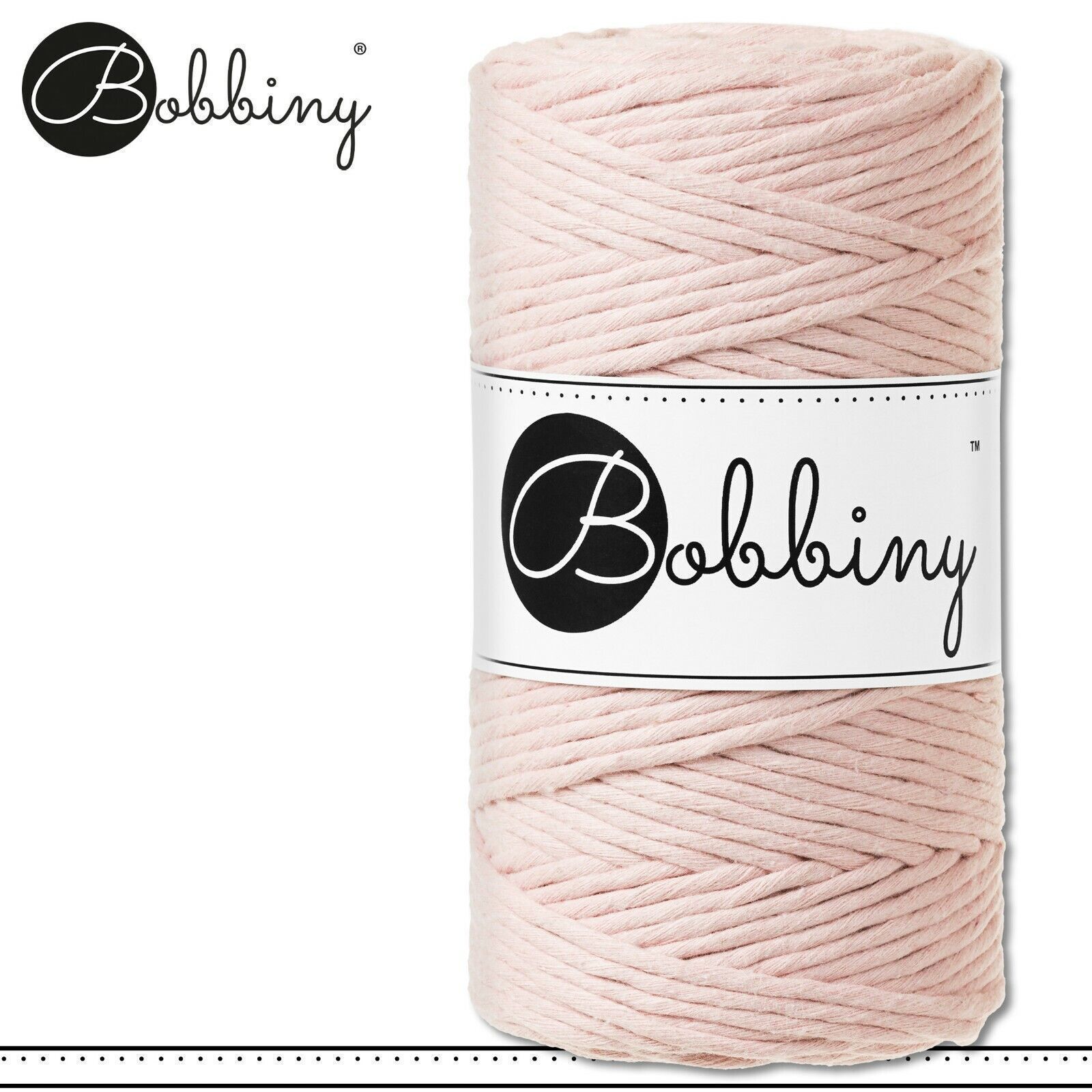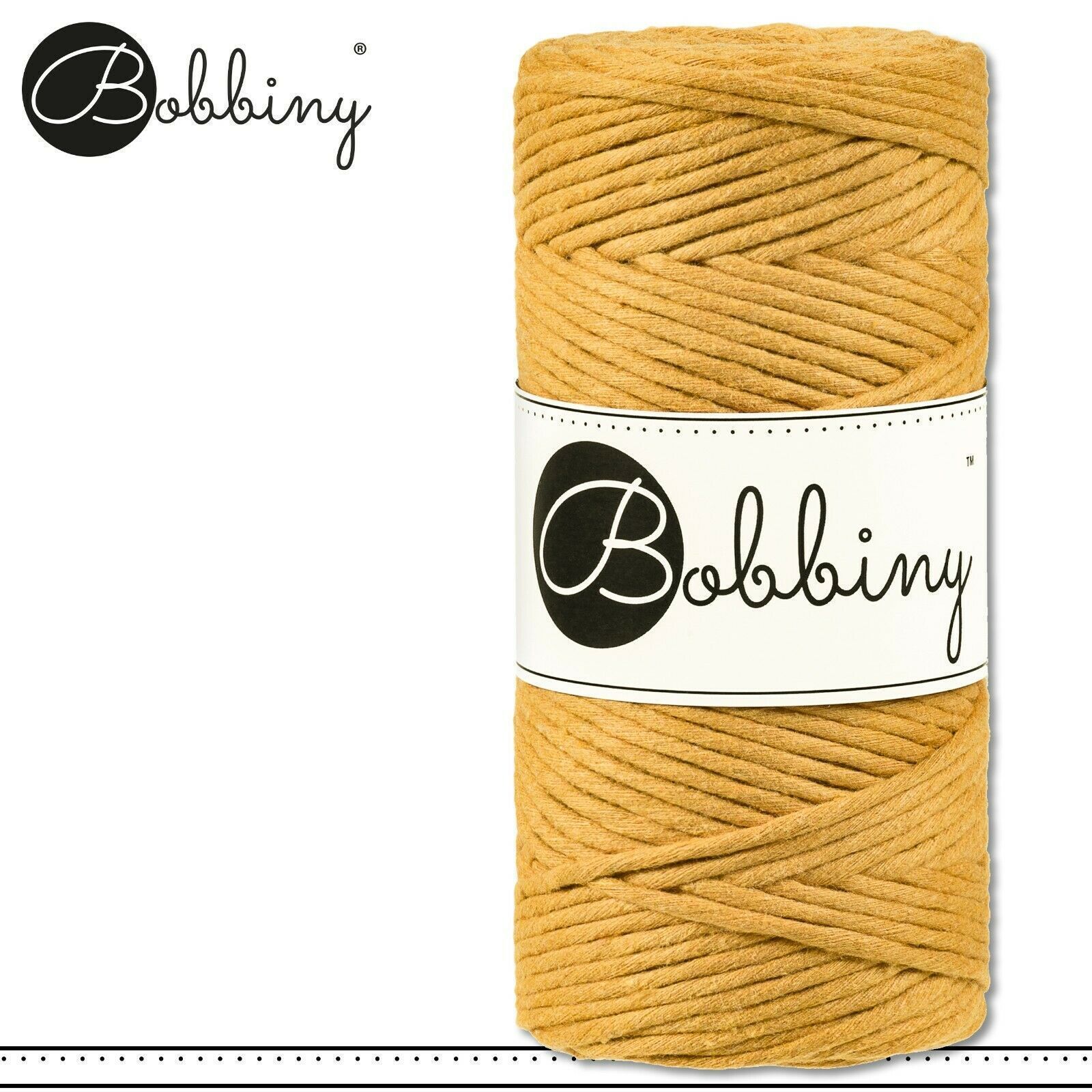 Bobbiny 100 m Makramee-Kordel 3 mm Beschreibung Euro Material : 100% recycelte Baumwolle Euro Öko-Tex-Zulassung Standard 100 Euro Gewicht : circa 160 g Euro Durchmesser : 1,5 mm Euro Laufmeter : 100 m Euro Nadelstärke : 3 Euro Herstellungsland : Europa Euro Verwendungsbeispiele : verschiedene Makram