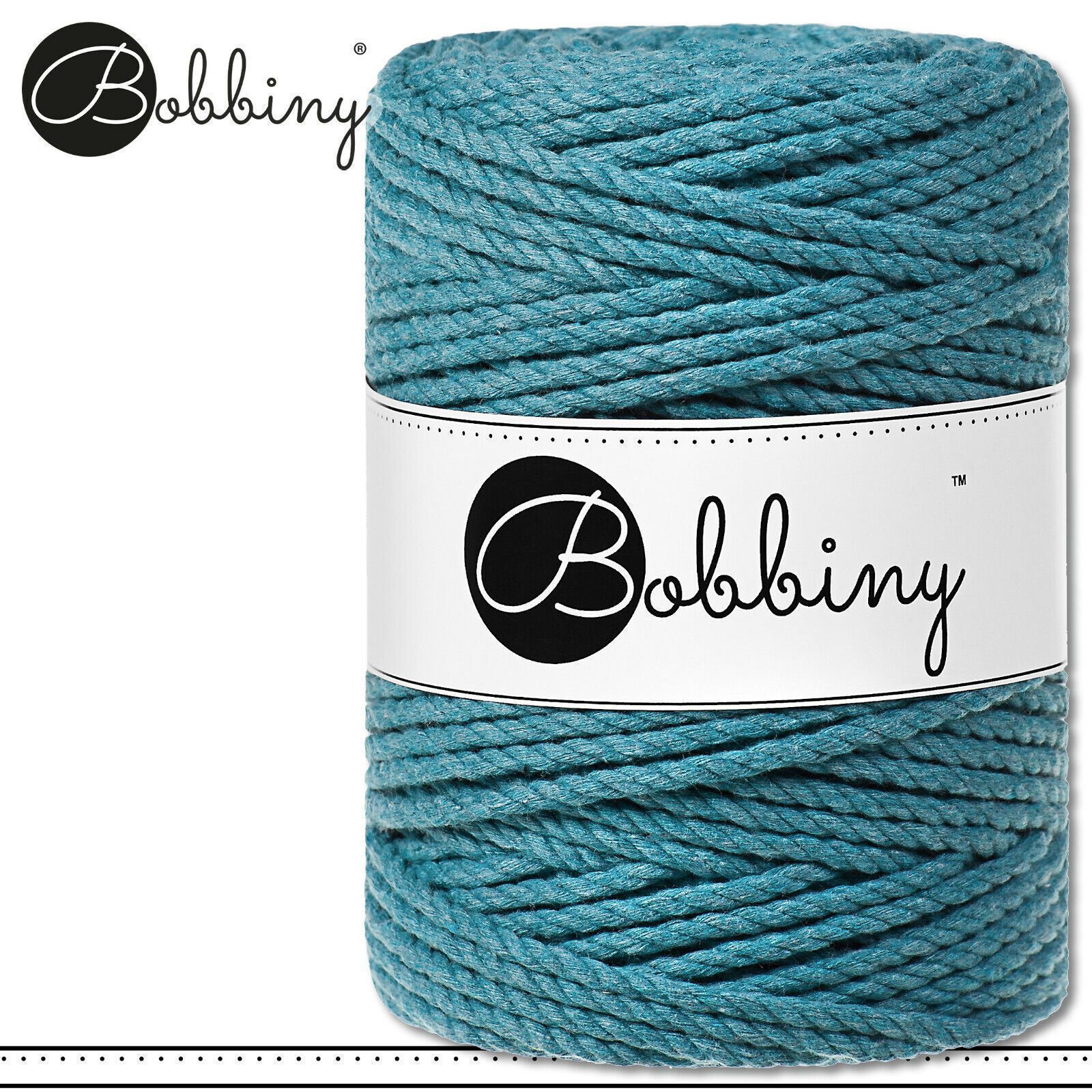 Bobbiny 100 m Makramee-Kordel 5 mm dreifach gedreht | Teal | Premium