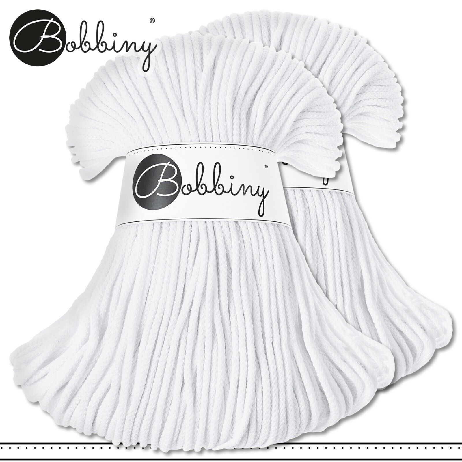 Bobbiny 2 x 100 m Flechtkordel 3 mm | White | Basteln Baumwolle Hobby Premium