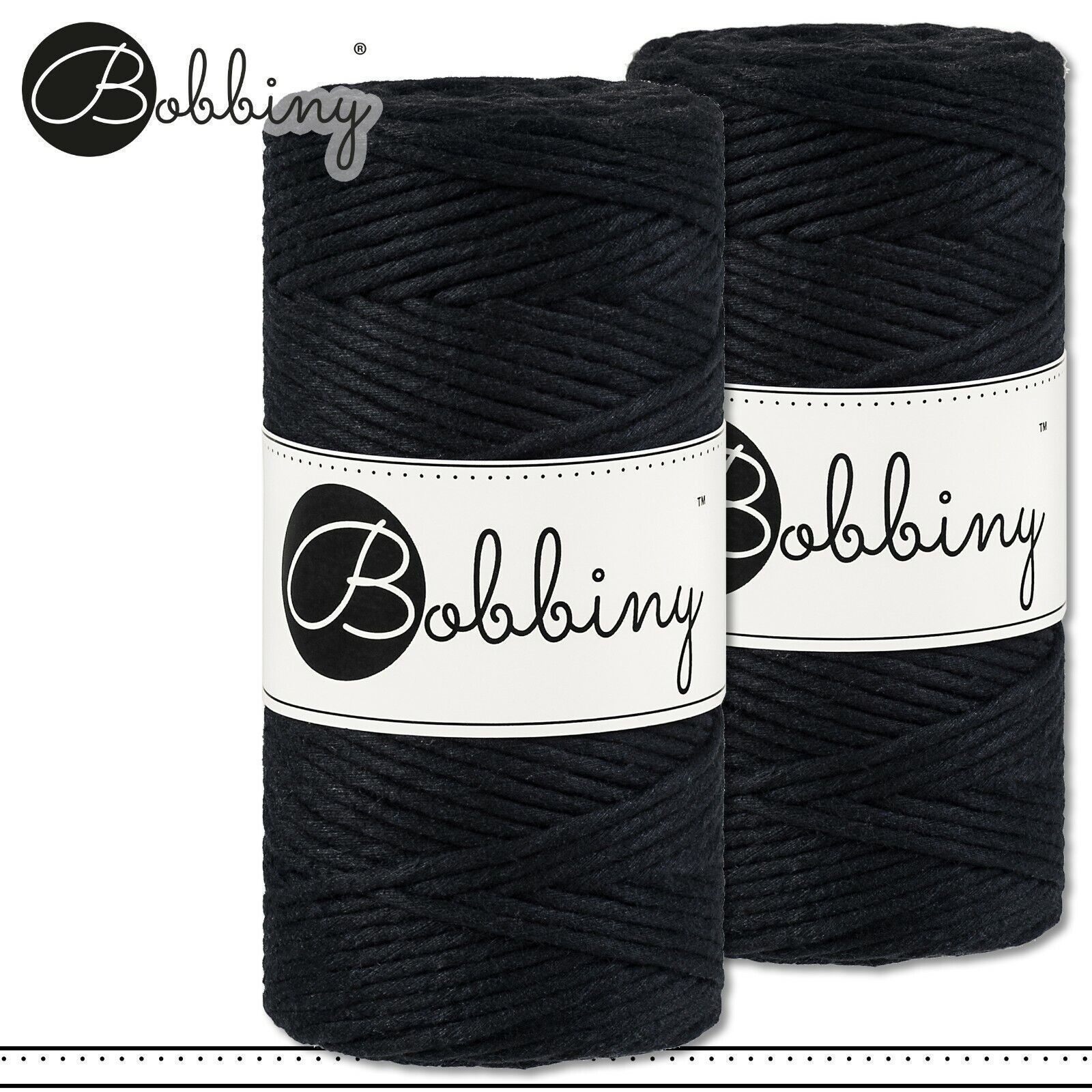 Bobbiny 2 x 100 m Makramee-Kordel 3 mm | Black | Hobby Basteln Premium