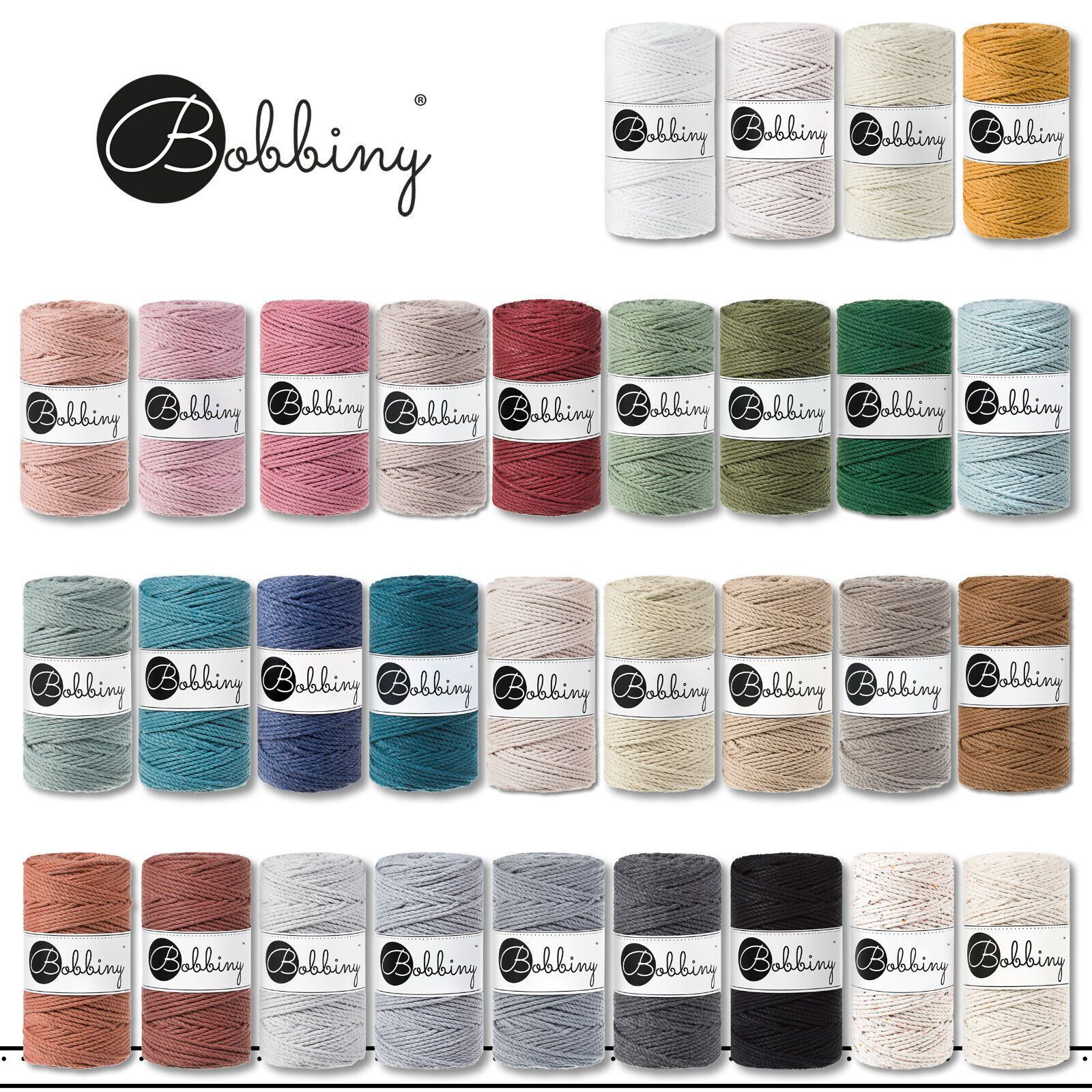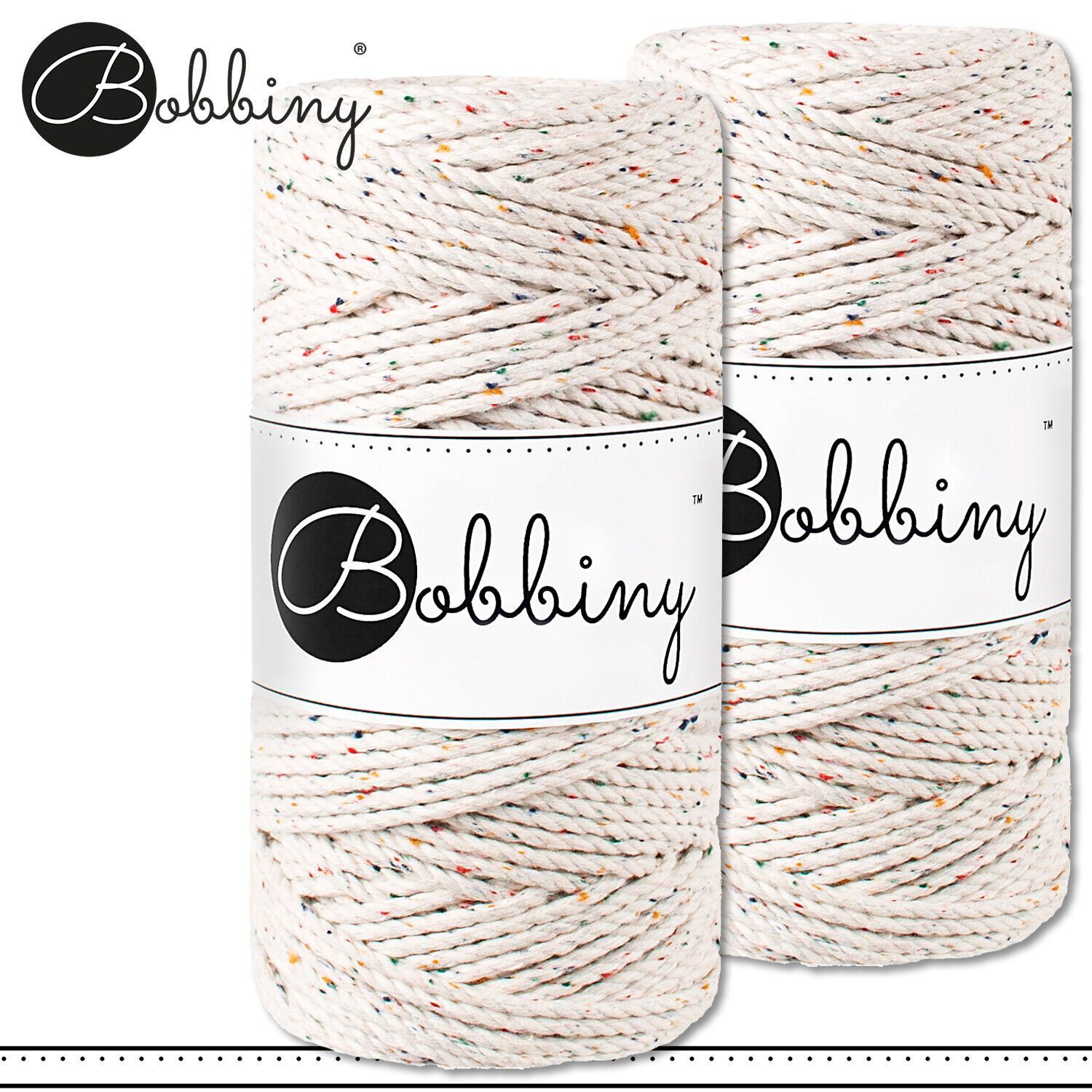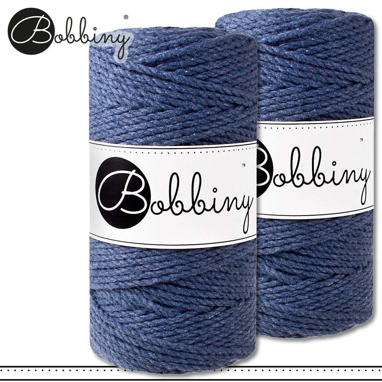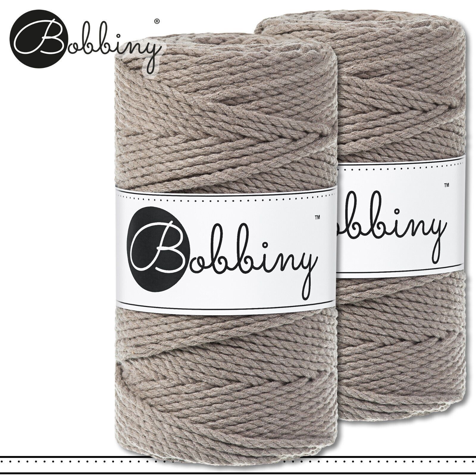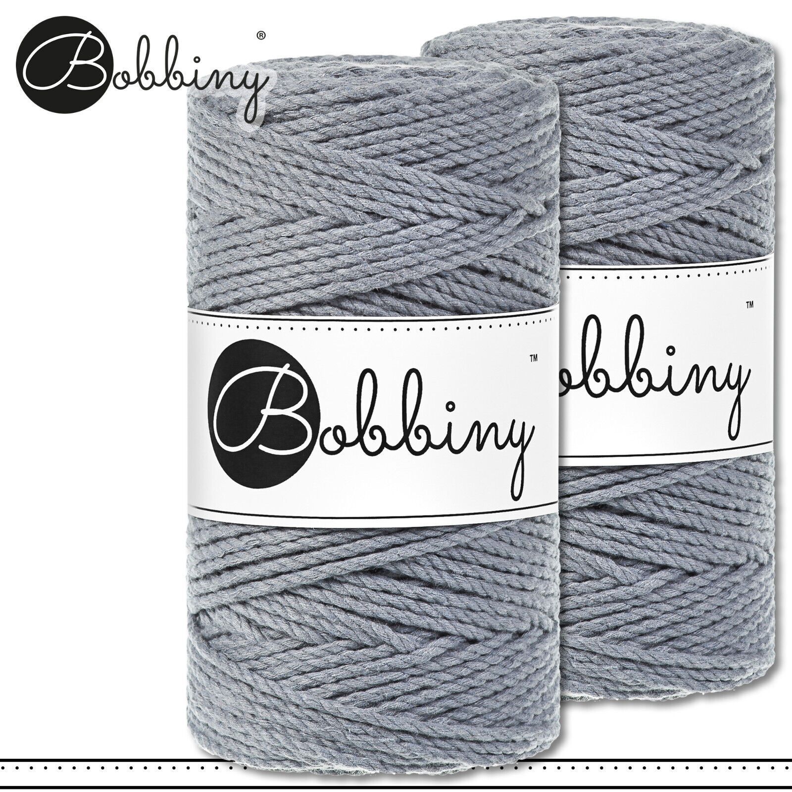 Bobbiny 2 x 100 m Makramee-Kordel Durchschitt 3 mm dreifach gedreht Die Kordeln werden aus recyceltem Baumwollgarn produziert. Dazu werden sowohl Produktionsabfälle aus Fabriken als auch von Verbrauchern in Form von Altkleidern und anderen Baumwolltextilien gesammelt, in kleinere Stücke geschnittene