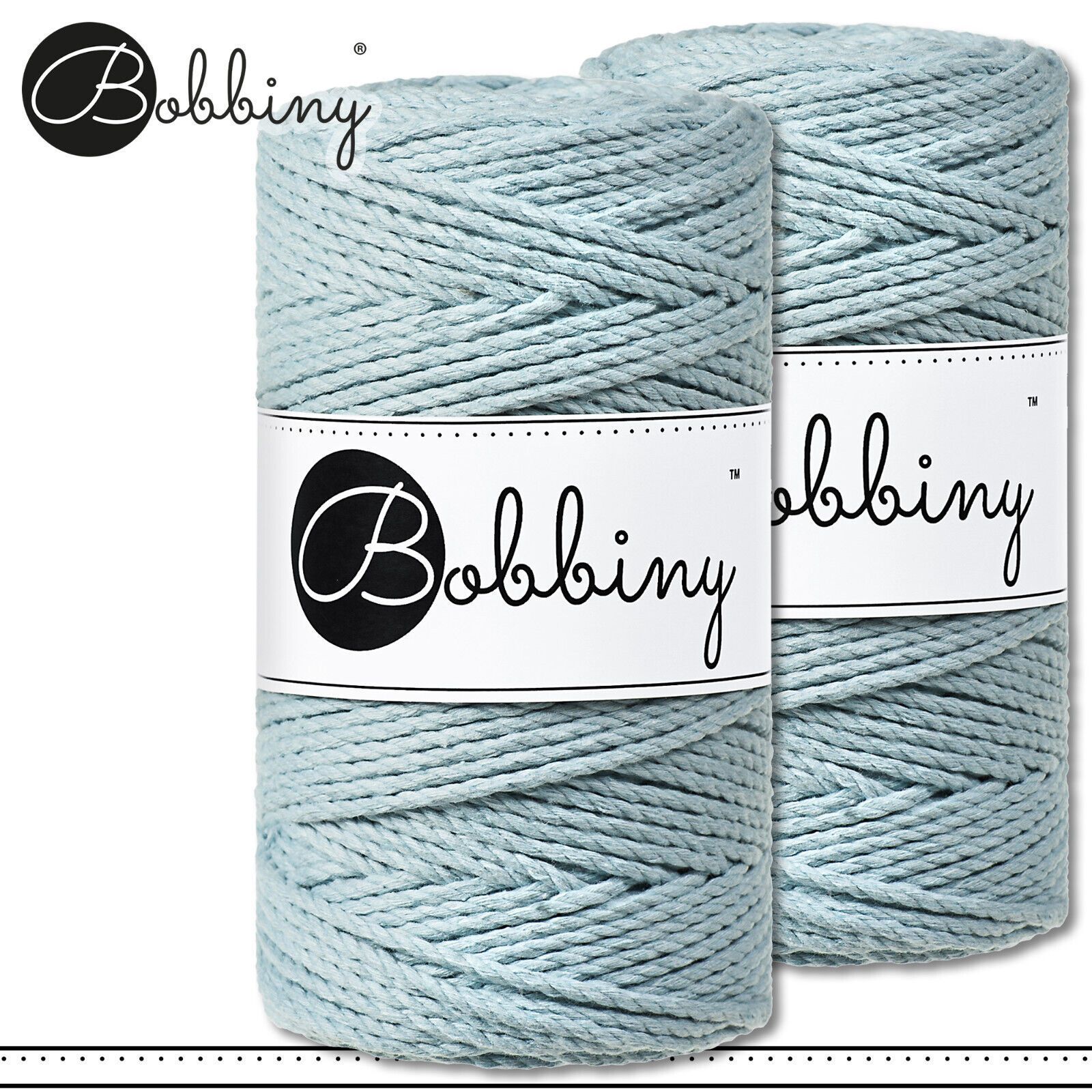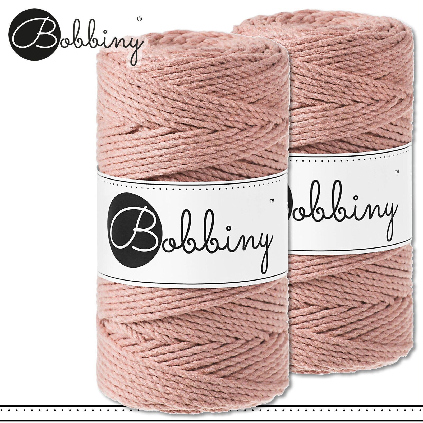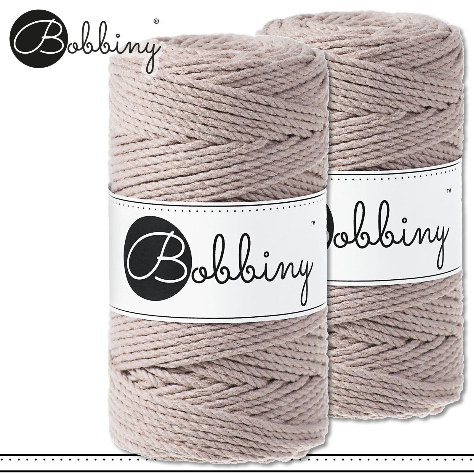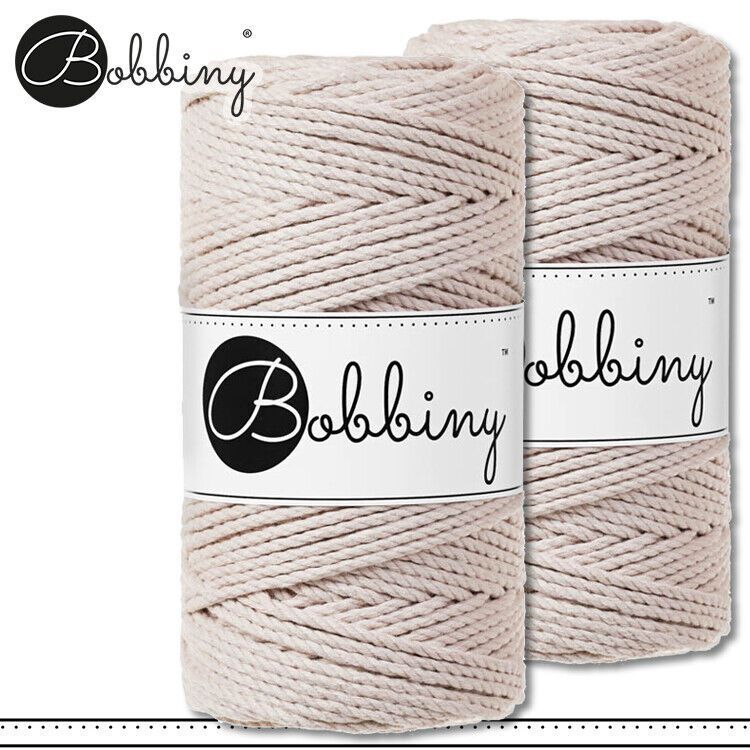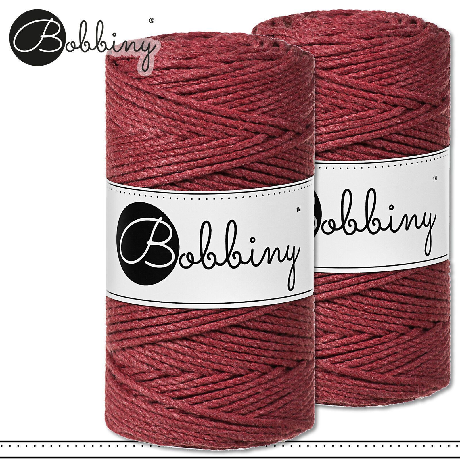 Bobbiny 2 x 100 m Makramee-Kordel Durchschitt 3 mm dreifach gedreht Die Kordeln werden aus recyceltem Baumwollgarn produziert. Dazu werden sowohl Produktionsabfälle aus Fabriken als auch von Verbrauchern in Form von Altkleidern und anderen Baumwolltextilien gesammelt, in kleinere Stücke geschnittene