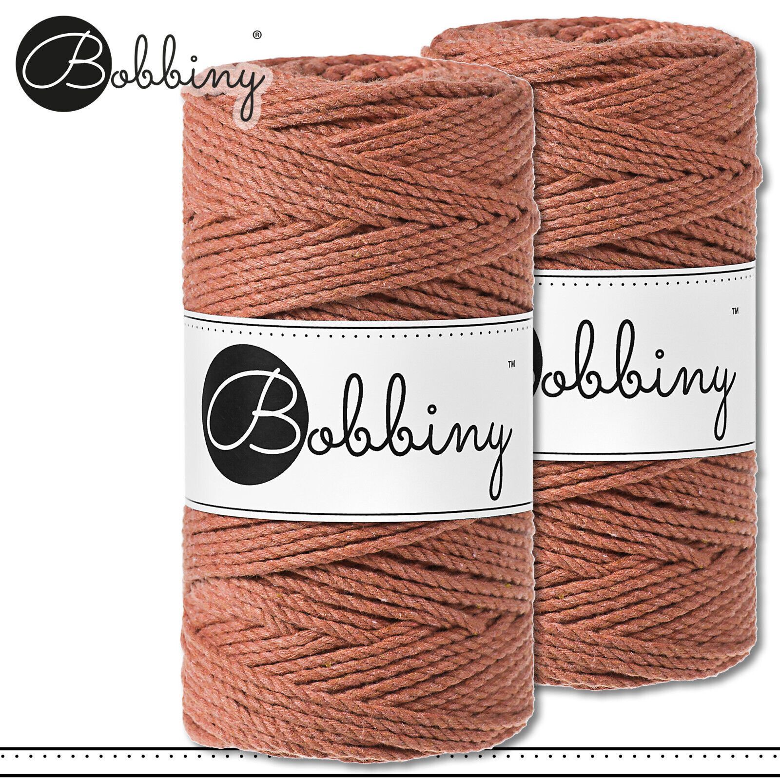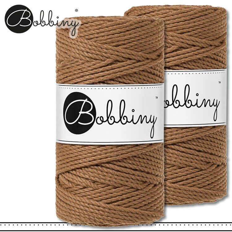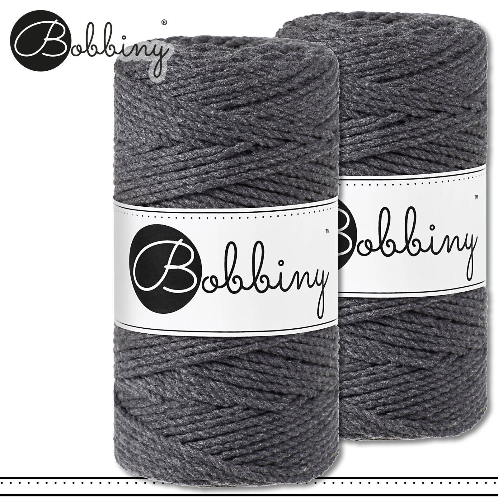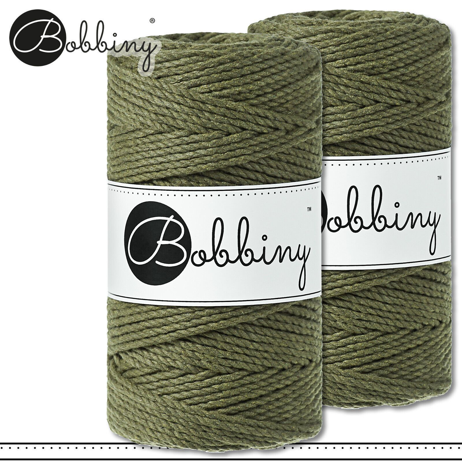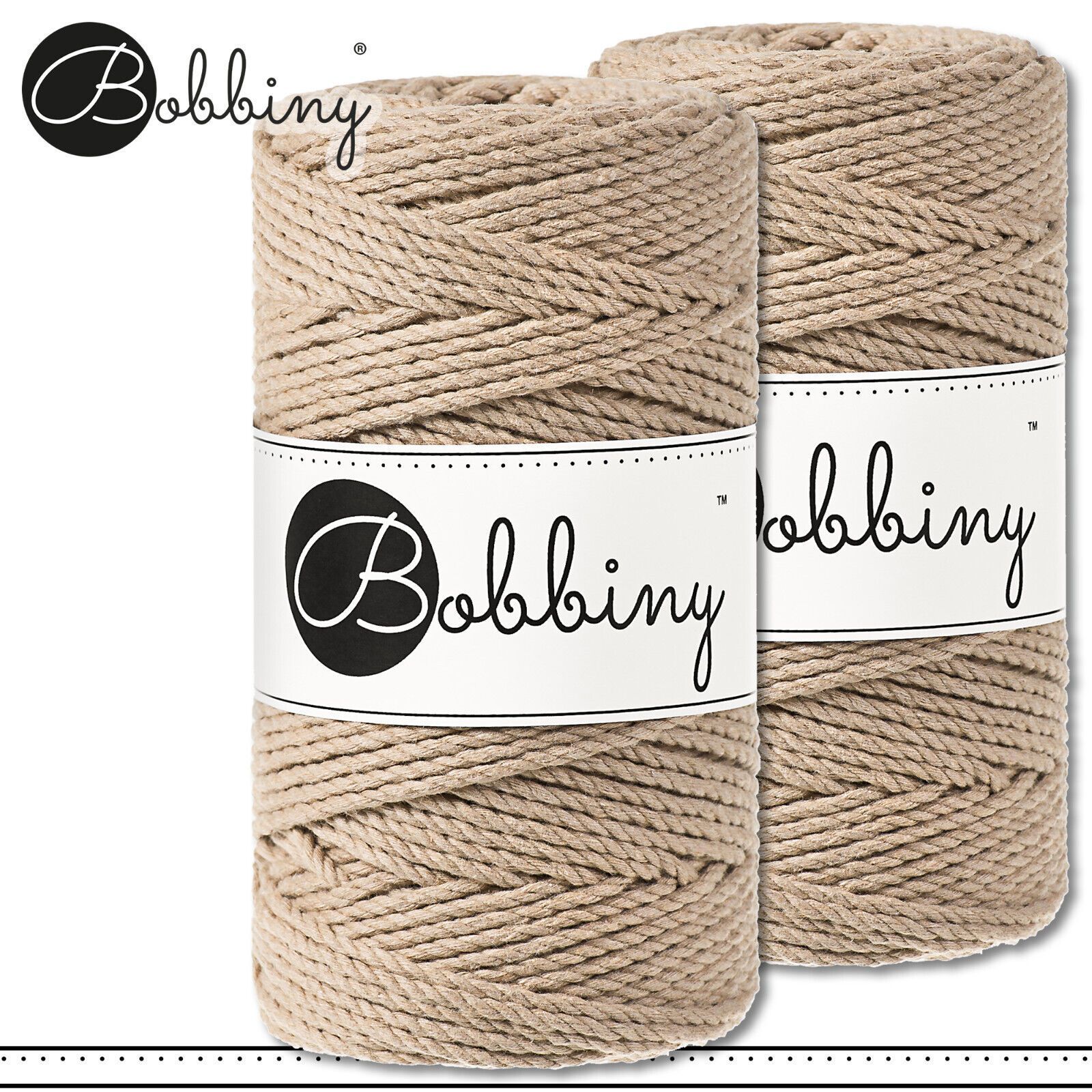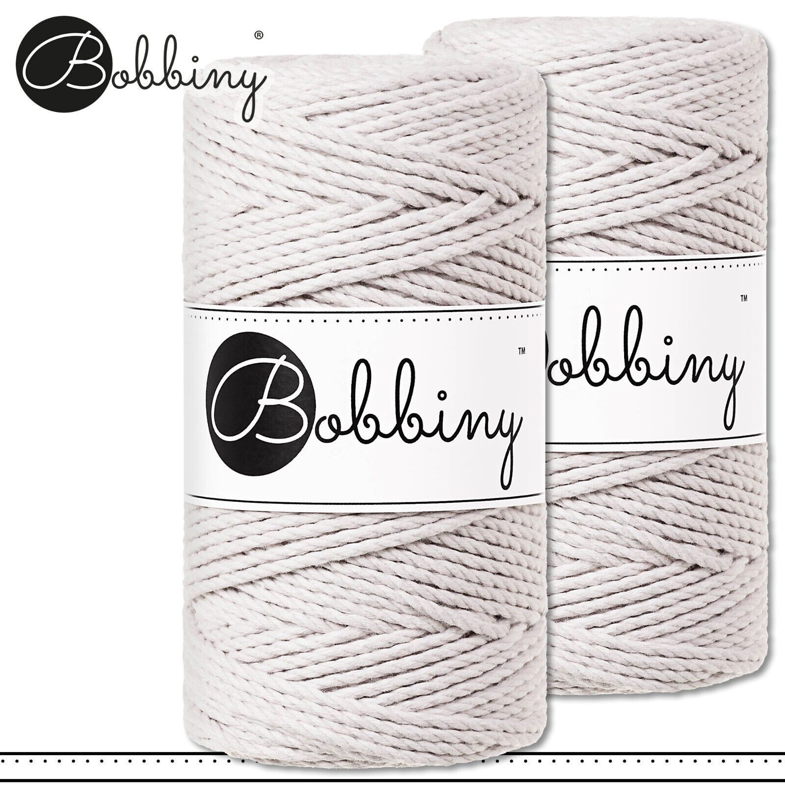 Bobbiny 2 x 100 m Makramee-Kordel Durchschitt 3 mm dreifach gedreht Die Kordeln werden aus recyceltem Baumwollgarn produziert. Dazu werden sowohl Produktionsabfälle aus Fabriken als auch von Verbrauchern in Form von Altkleidern und anderen Baumwolltextilien gesammelt, in kleinere Stücke geschnittene