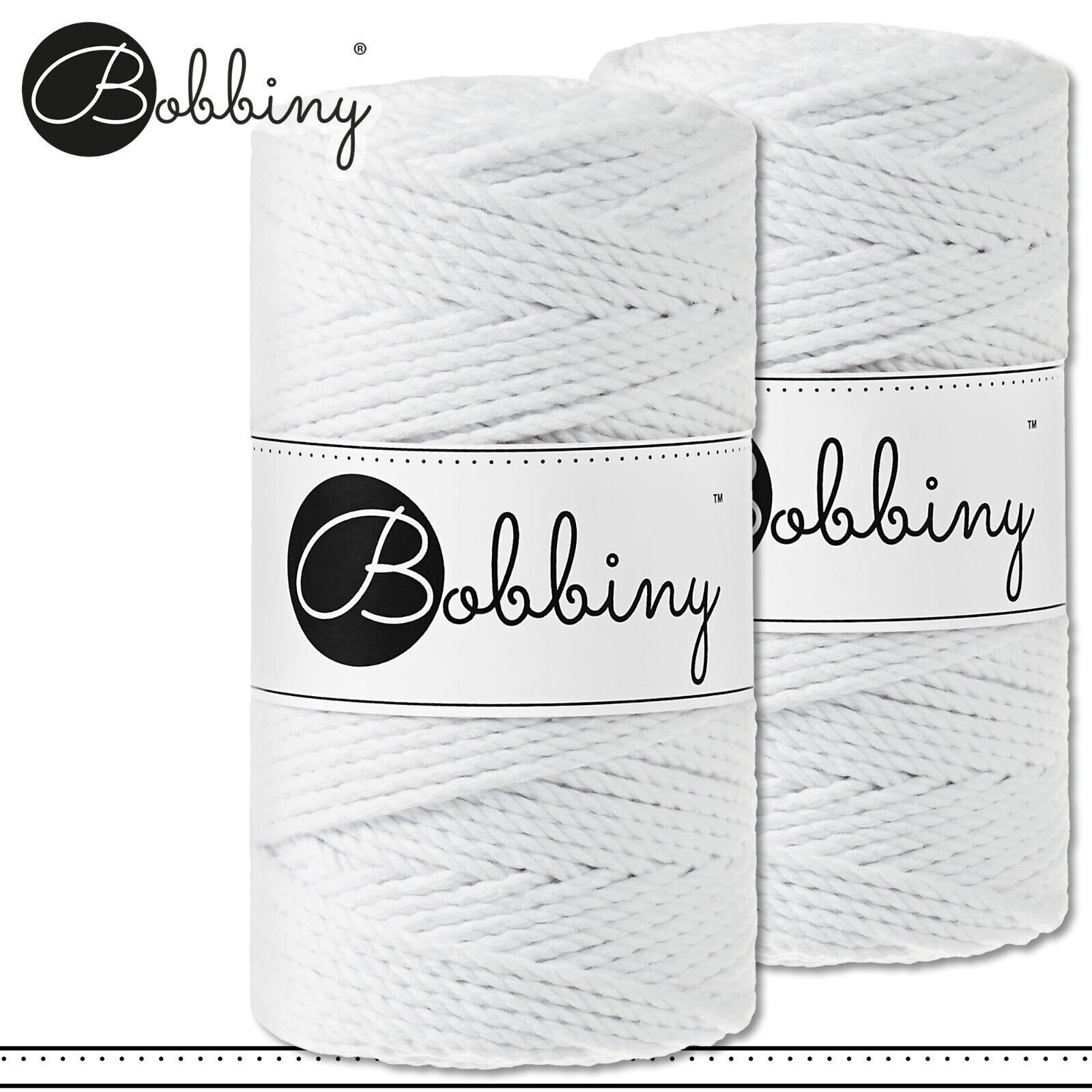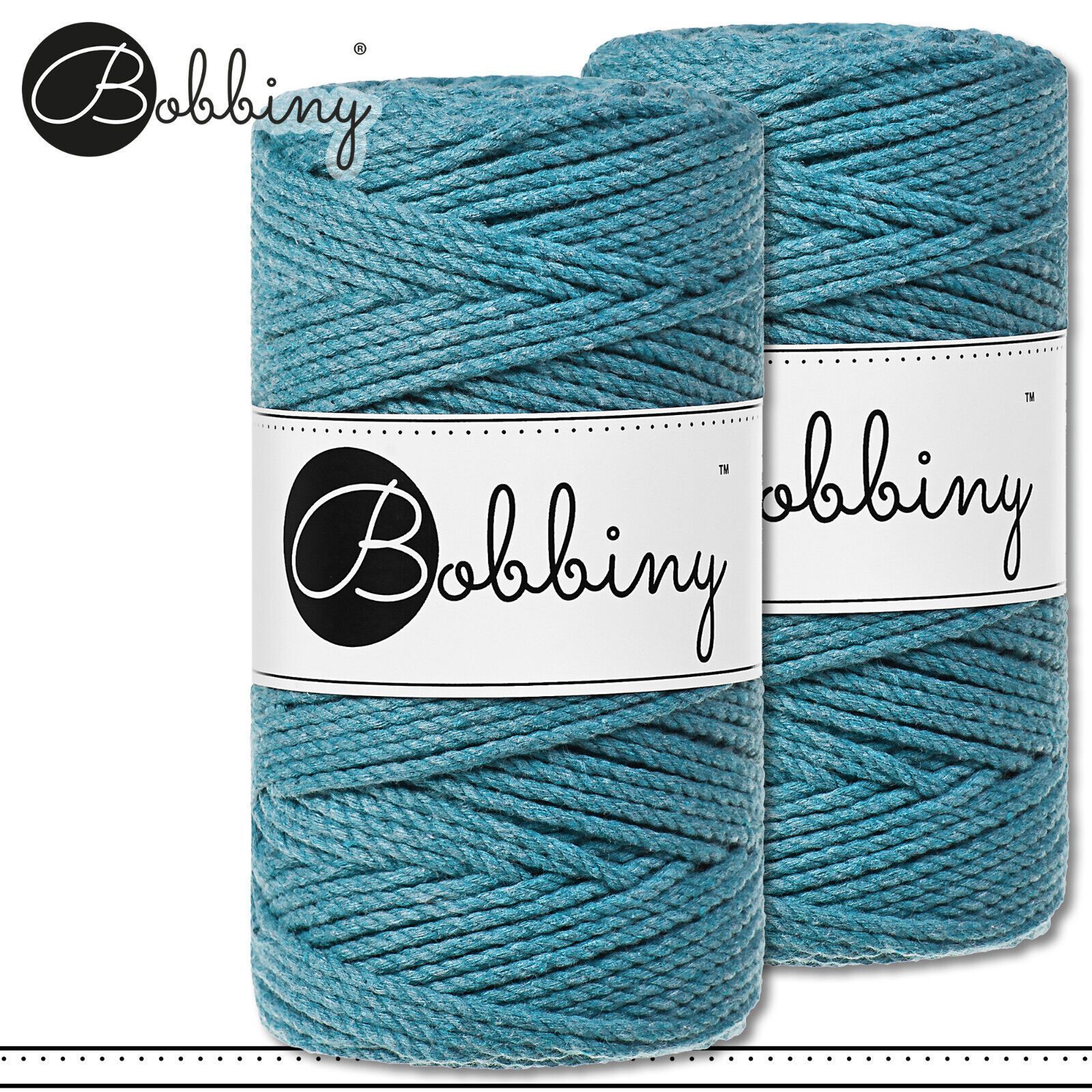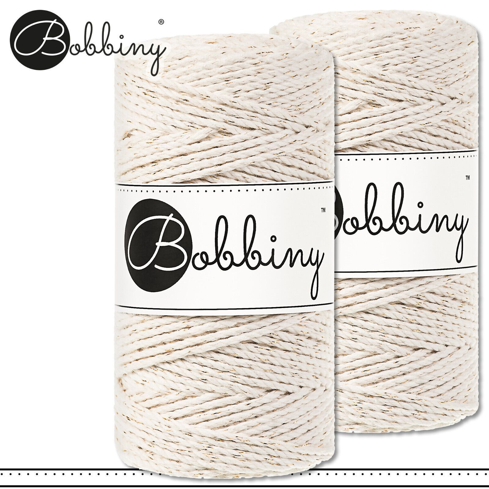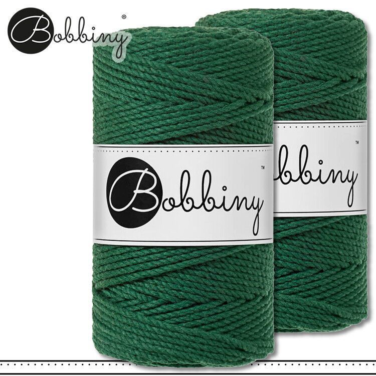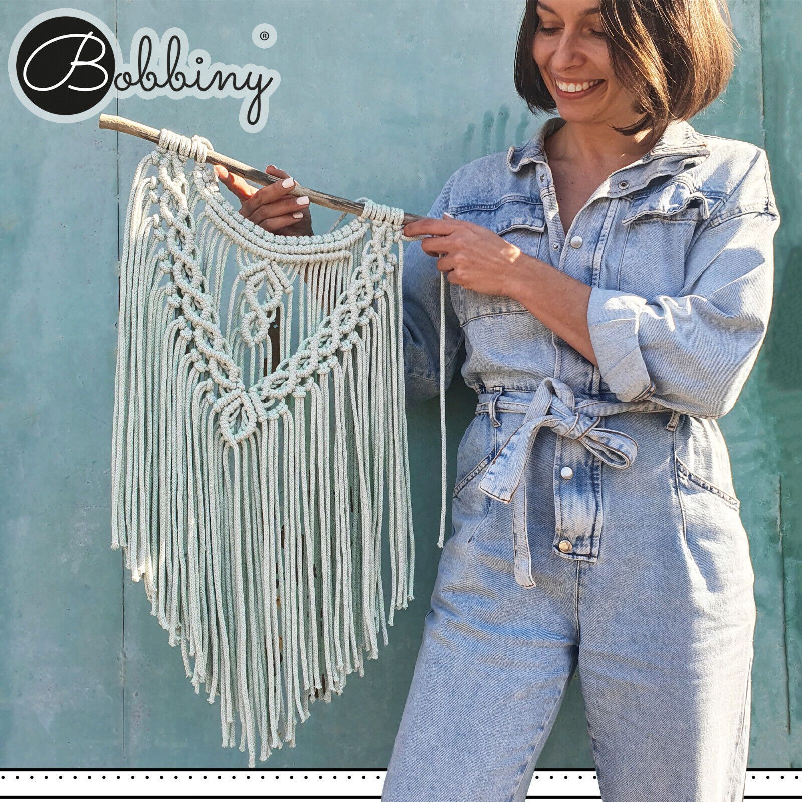 Bobbiny 2 x 100 m Makramee-Kordel Durchschitt 3 mm dreifach gedreht Die Kordeln werden aus recyceltem Baumwollgarn produziert. Dazu werden sowohl Produktionsabfälle aus Fabriken als auch von Verbrauchern in Form von Altkleidern und anderen Baumwolltextilien gesammelt, in kleinere Stücke geschnittene