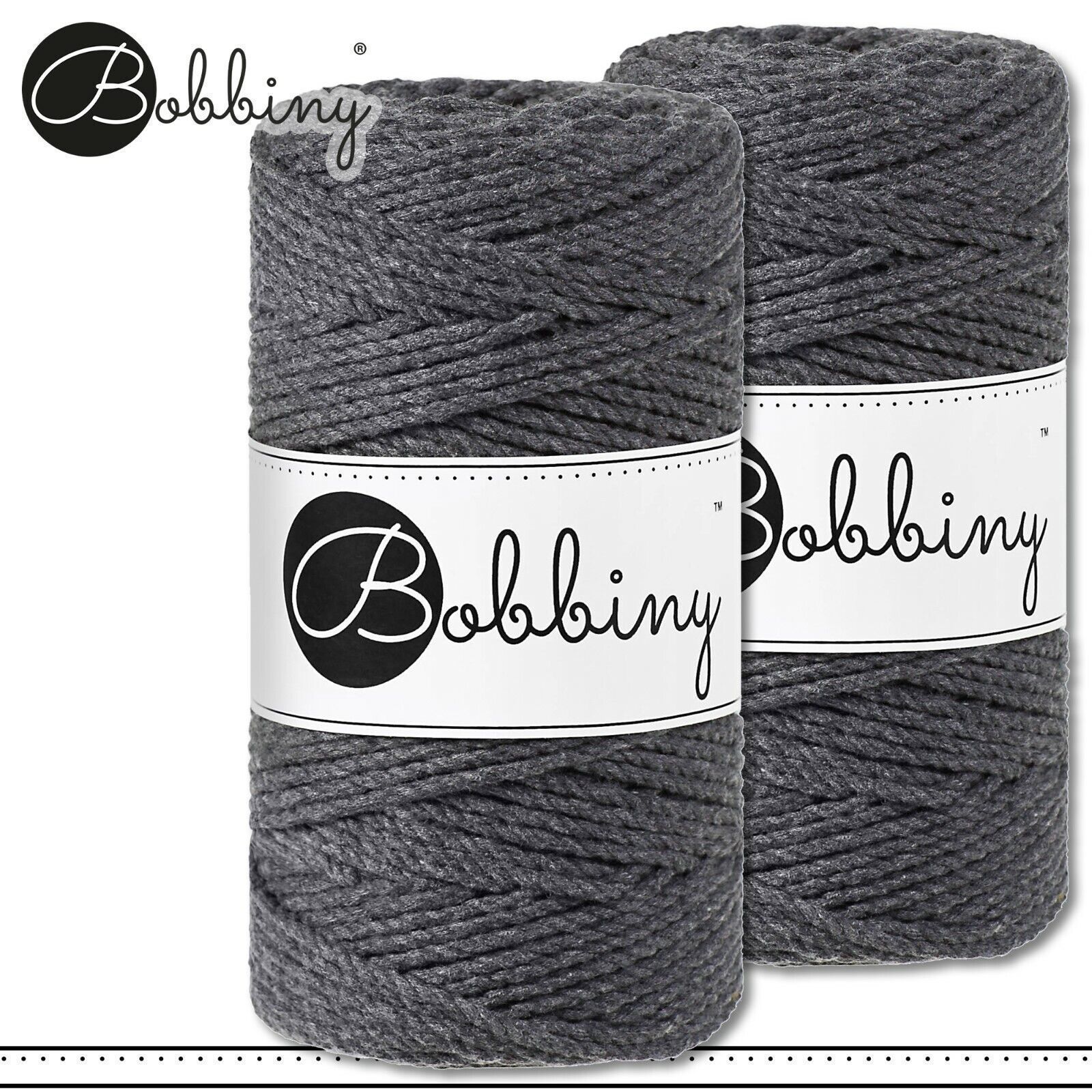 Bobbiny 2 x 100 m Makramee-Kordel 3 mm dreifach gedreht | Charcoal | Premium