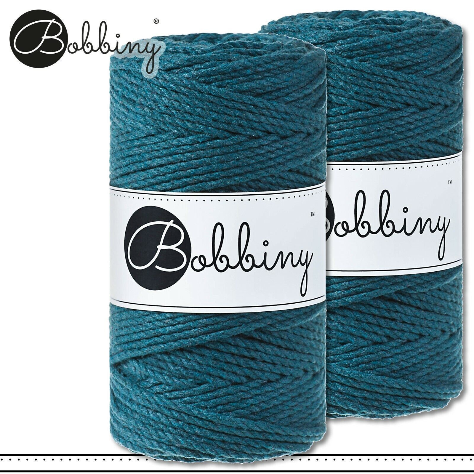 Bobbiny 2 x 100 m Makramee-Kordel 3 mm dreifach gedreht | Peacock Blue | Premium