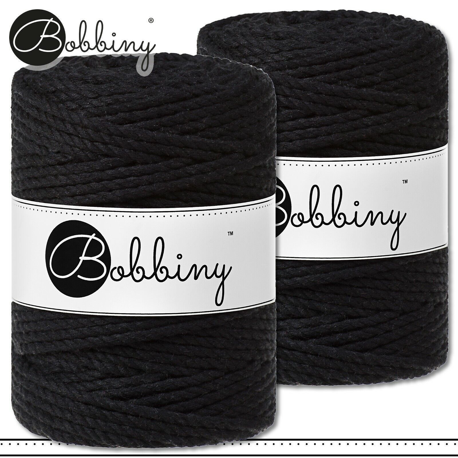 Bobbiny 2 x 100 m Makramee-Kordel 5 mm dreifach gedreht | Black | Premium