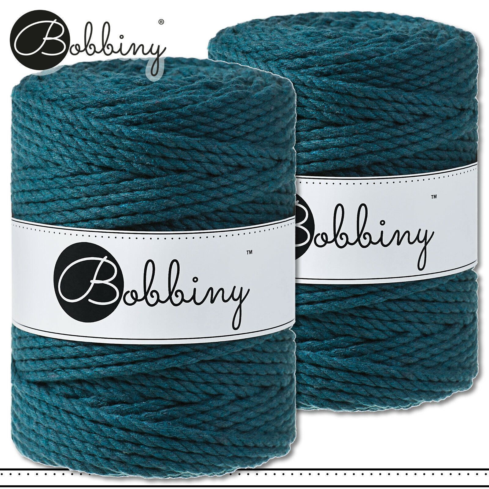 Bobbiny 2 x 100 m Makramee-Kordel 5 mm dreifach gedreht | Peacock Blue | Premium