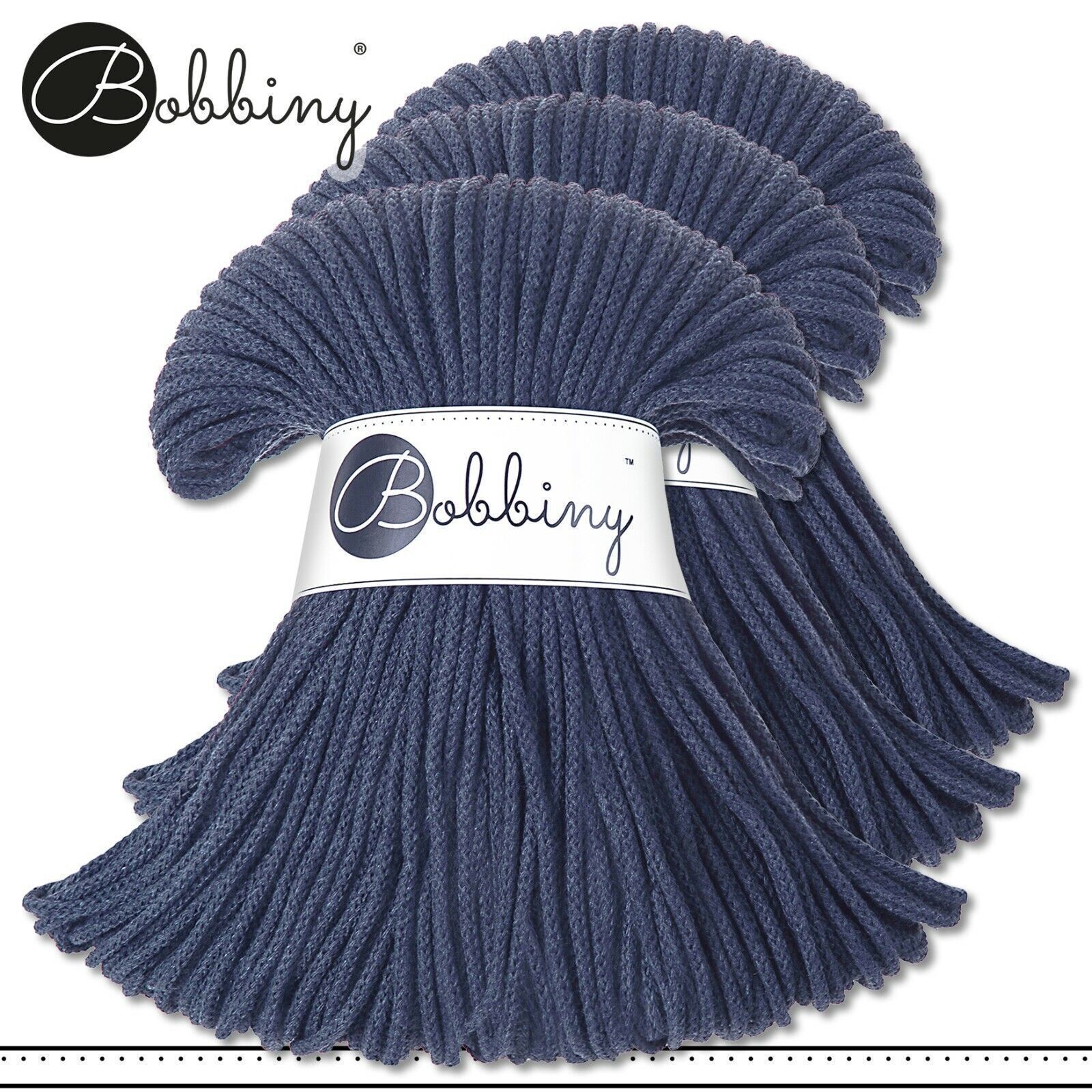 Bobbiny 3 x 100 m Flechtkordel 3 mm | Jeans | Basteln Baumwolle Hobby Premium
