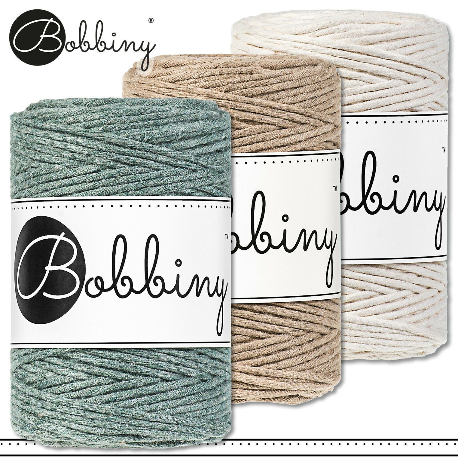 Bobbiny 3 x 100 m Makramee-Kordel 1,5 mm | Laurel + Sand + Natural | Premium