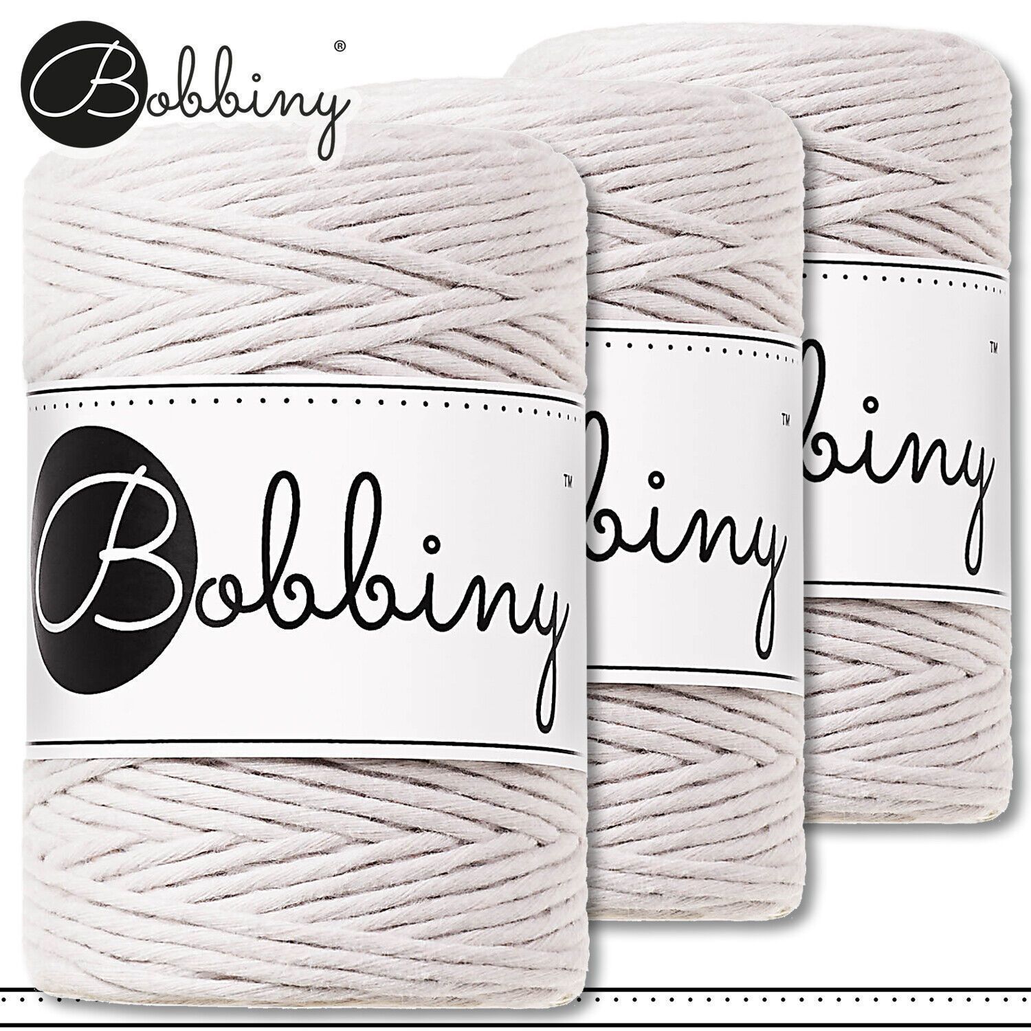 Bobbiny 3 x 100 m Makramee-Kordel 1,5 mm | Moonlight | Hobby Basteln Premium
