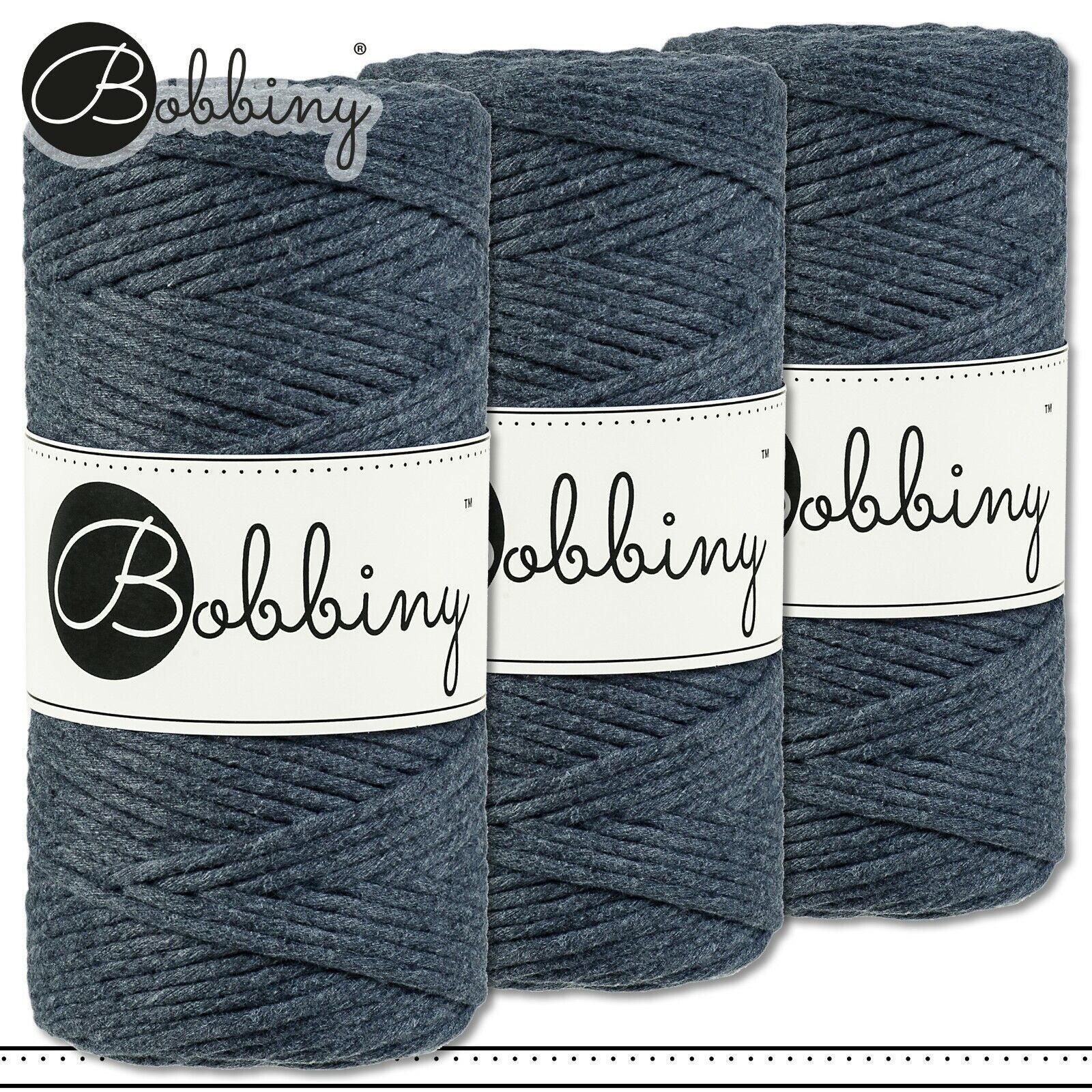 Bobbiny 3 x 100 m Makramee-Kordel 3 mm | Charcoal | Hobby Basteln Premium