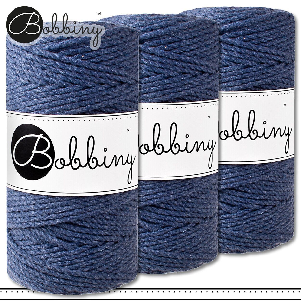 Bobbiny 3 x 100 m Makramee-Kordel 3 mm dreifach gedreht | Jeans | Premium
