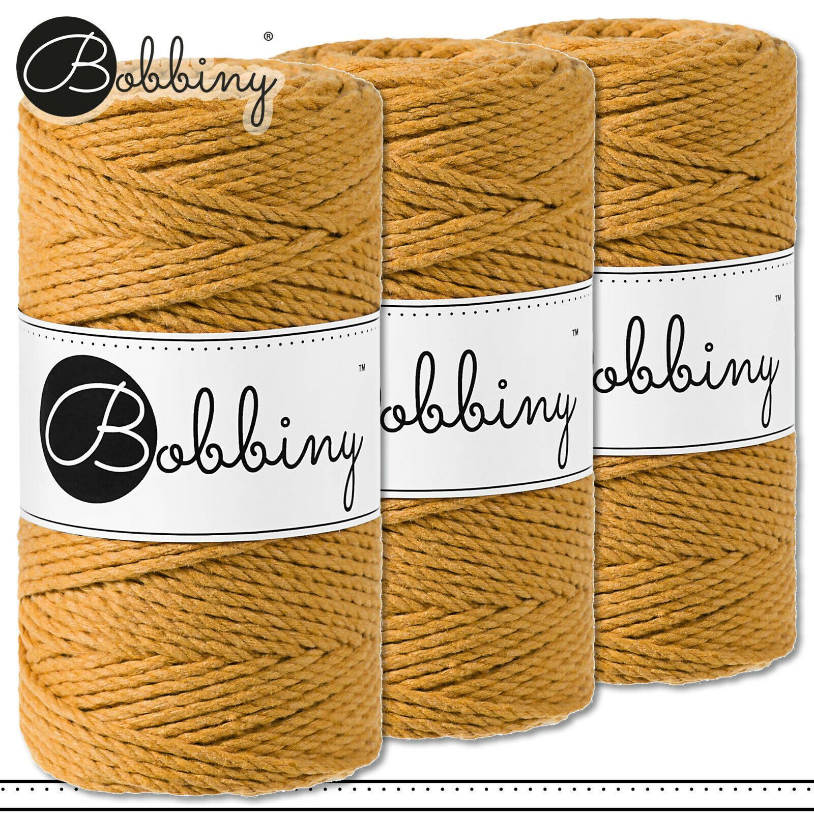 Bobbiny 3 x 100 m Makramee-Kordel 3 mm dreifach gedreht | Mustard | Premium