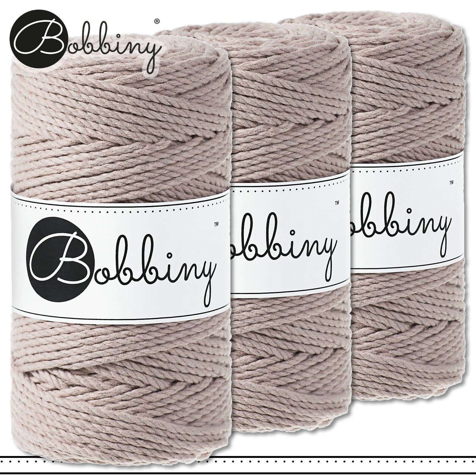 Bobbiny 3 x 100 m Makramee-Kordel 3 mm dreifach gedreht | Pearl | Premium