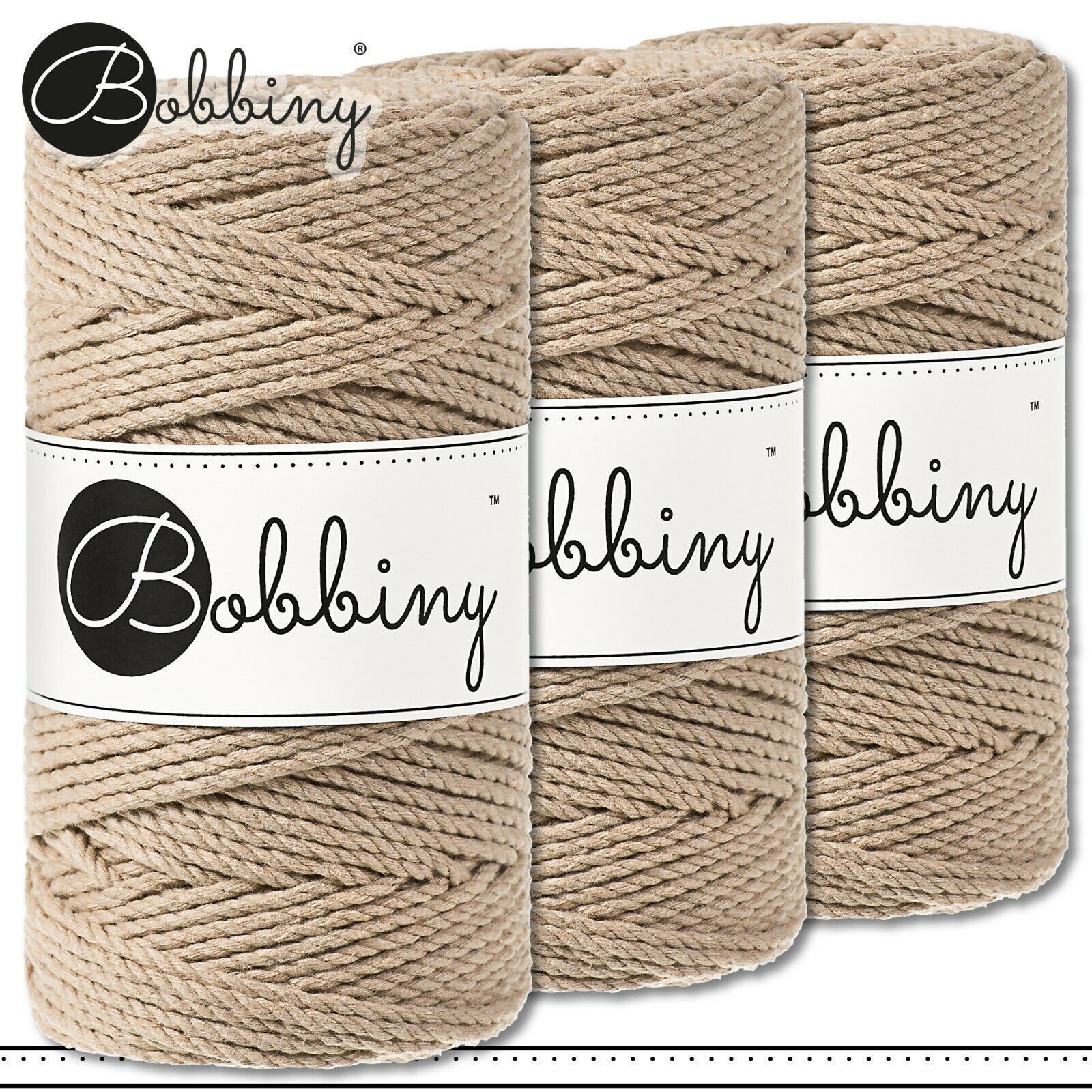 Bobbiny 3 x 100 m Makramee-Kordel 3 mm dreifach gedreht | Sand | Premium