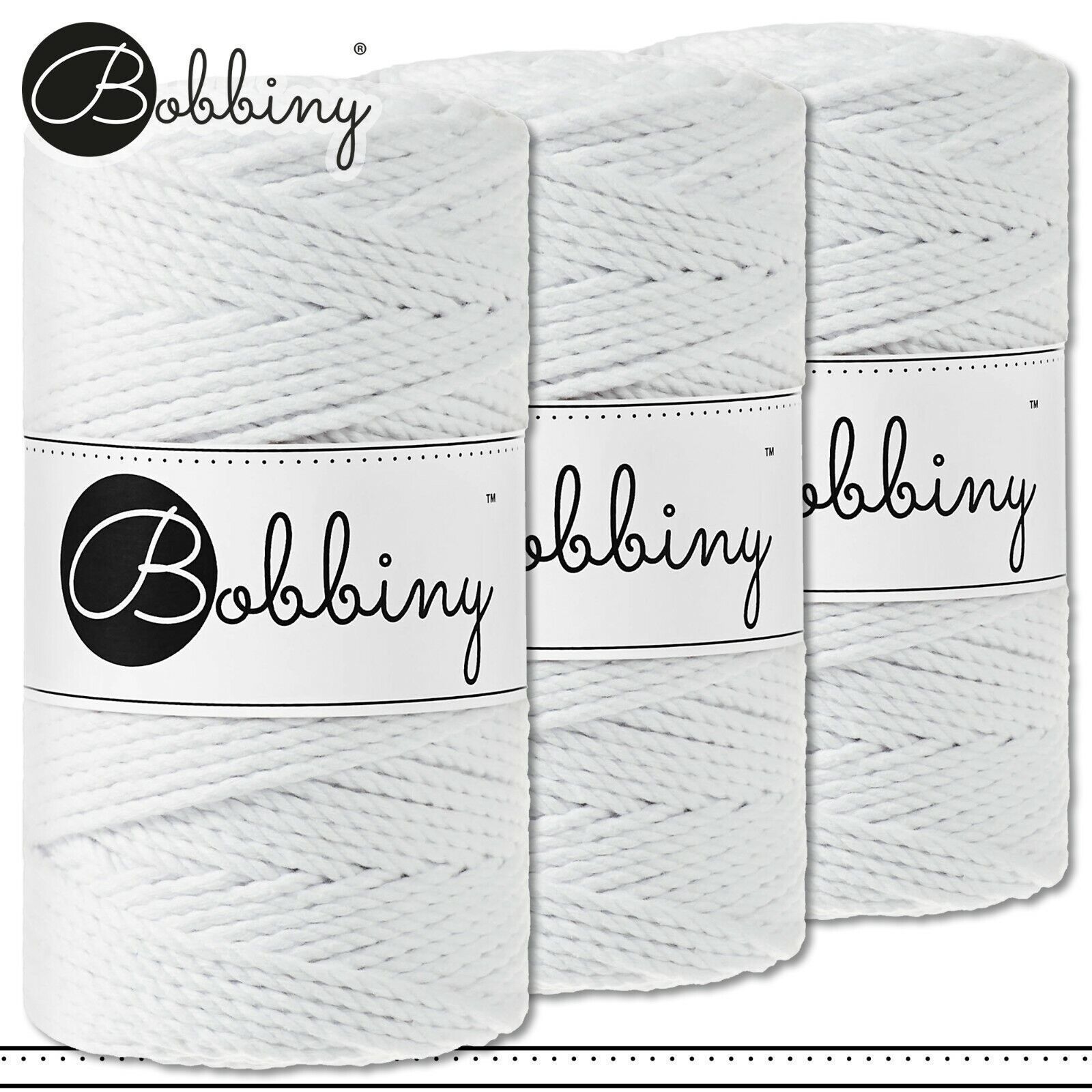 Bobbiny 3 x 100 m Makramee-Kordel 3 mm dreifach gedreht | White | Premium