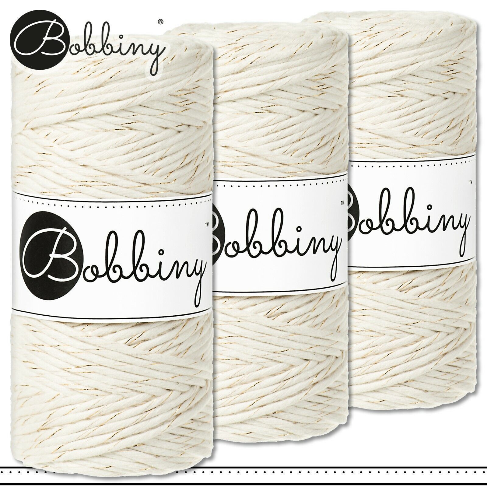 Bobbiny 3 x 100 m Makramee-Kordel 3 mm | Golden Natural | Hobby Basteln Premium