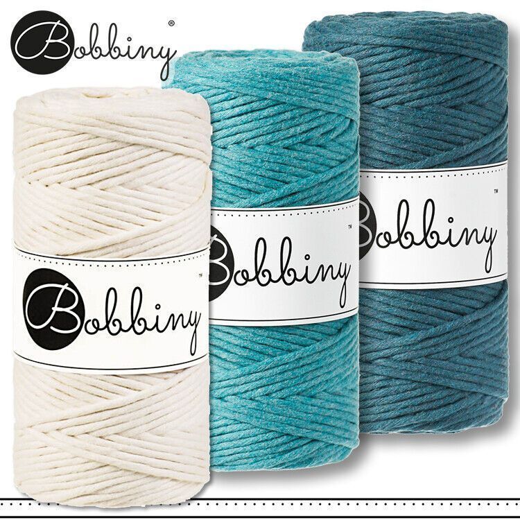 Bobbiny 3 x 100 m Makramee-Kordel 3 mm | Natural + Teal + Peacock Blue