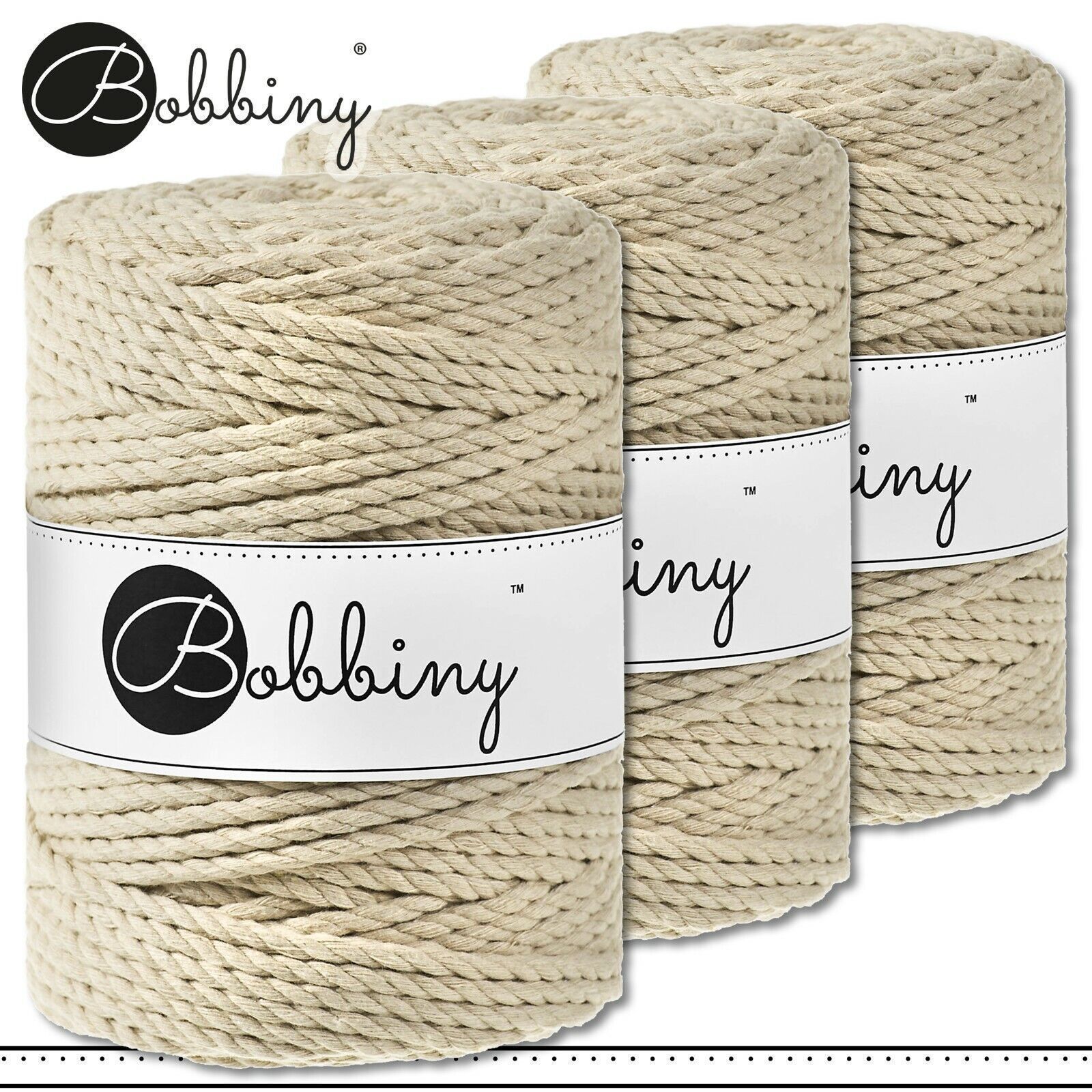 Bobbiny 3 x 100 m Makramee-Kordel 5 mm dreifach gedreht | Beige | Premium