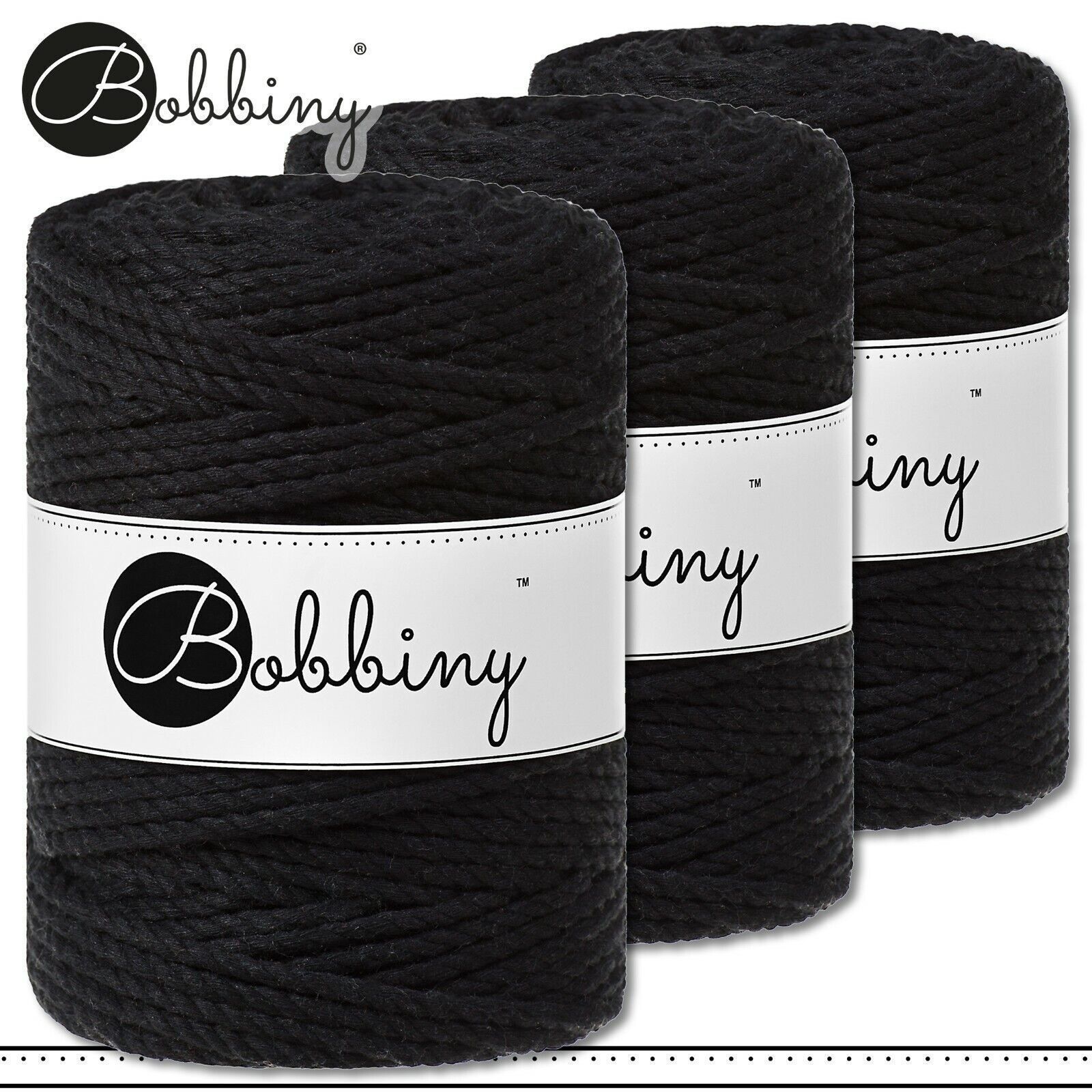 Bobbiny 3 x 100 m Makramee-Kordel 5 mm dreifach gedreht | Black | Premium