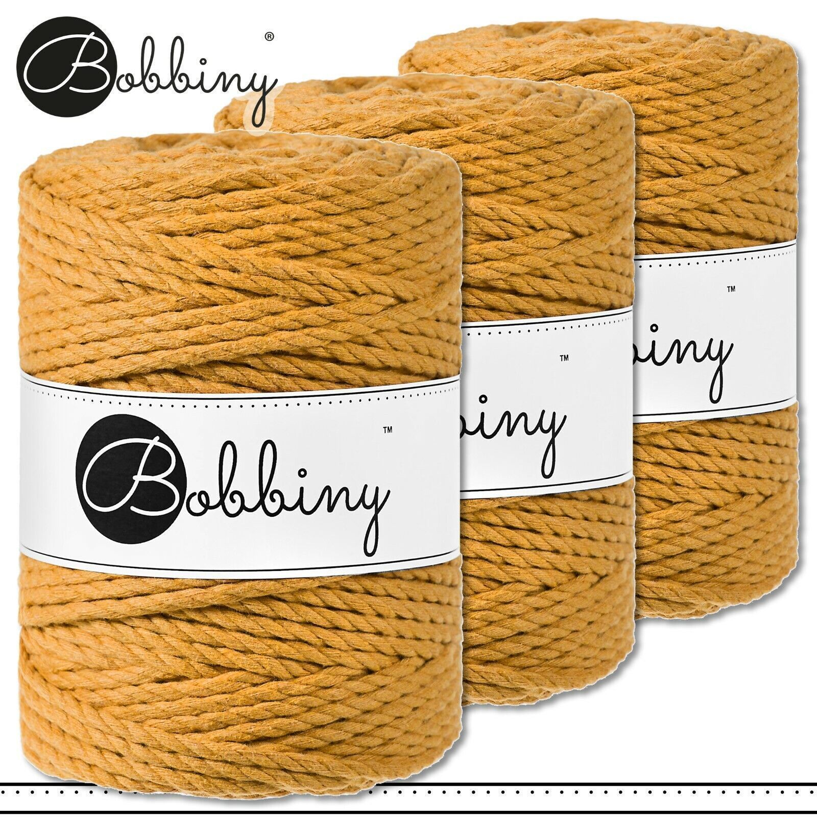 Bobbiny 3 x 100 m Makramee-Kordel 5 mm dreifach gedreht | Mustard | Premium