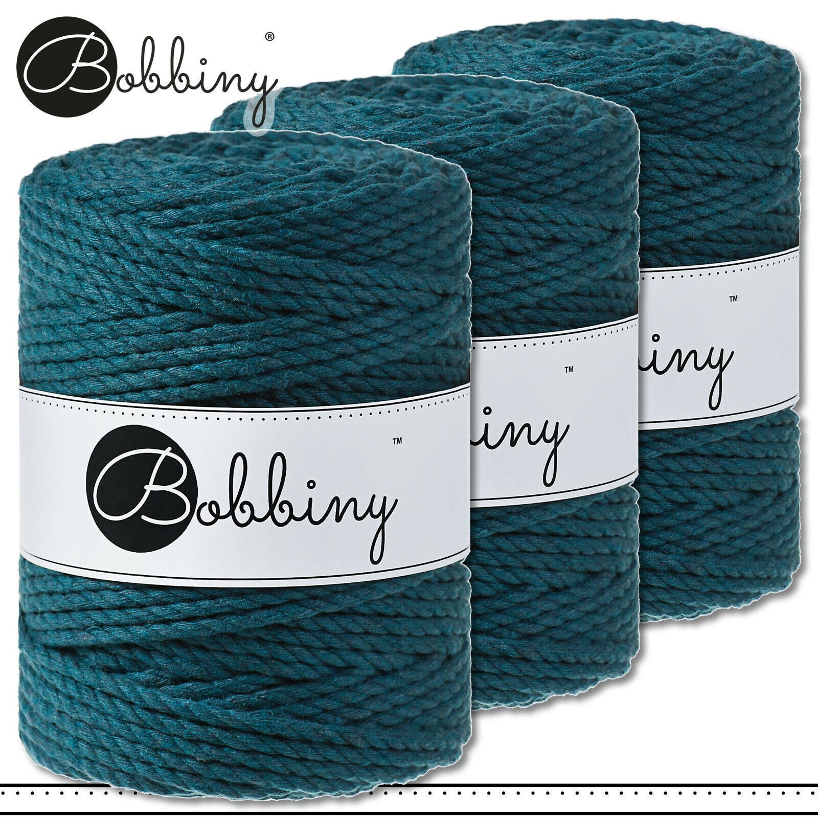 Bobbiny 3 x 100 m Makramee-Kordel 5 mm dreifach gedreht | Peacock Blue | Premium