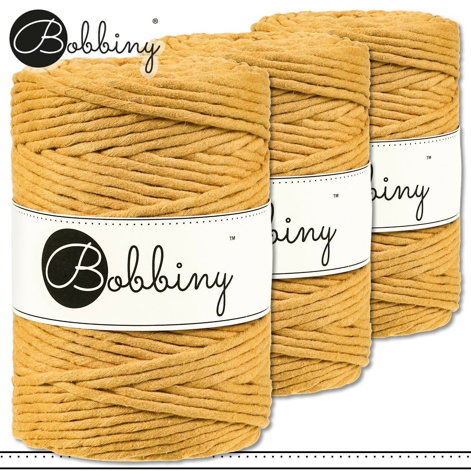 Bobbiny 3 x 100 m Makramee-Kordel 5 mm | Mustard | Hobby Basteln Premium