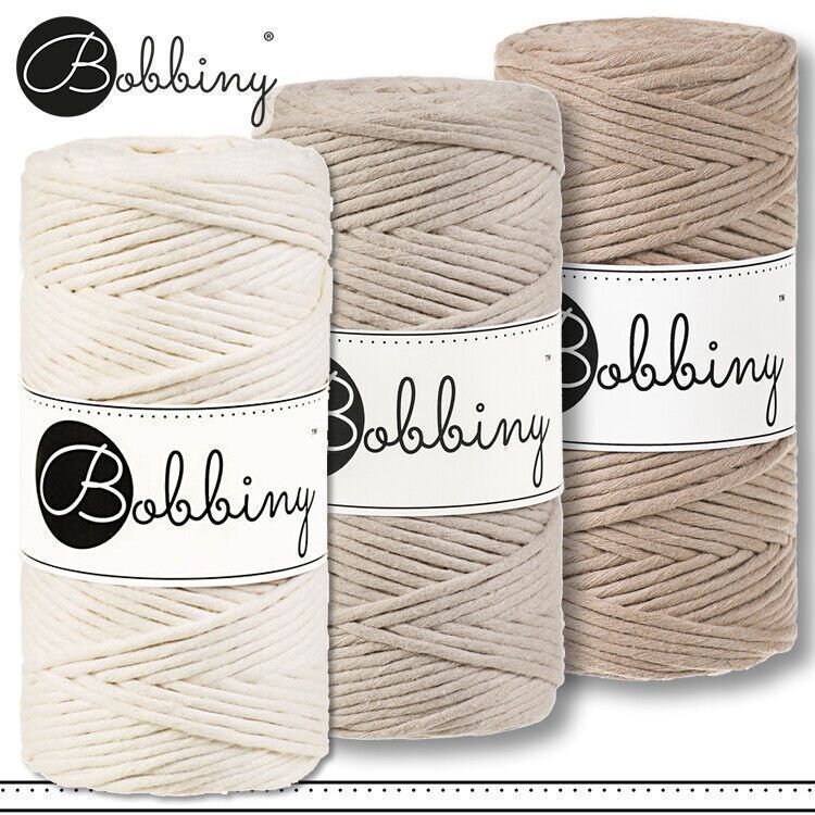 Bobbiny 3 x 100 m Premium Makramee-Kordel 3 mm | Natural + Beige + Sand