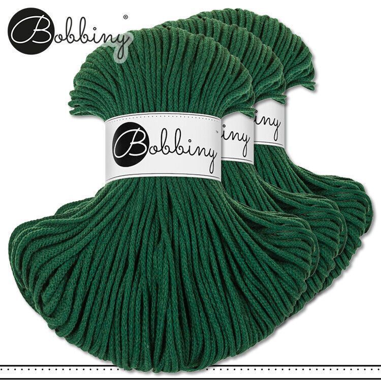 Bobbiny 3x 100m Flechtkordel 3mm | Pine Green | Basteln Baumwolle Hobby Premium