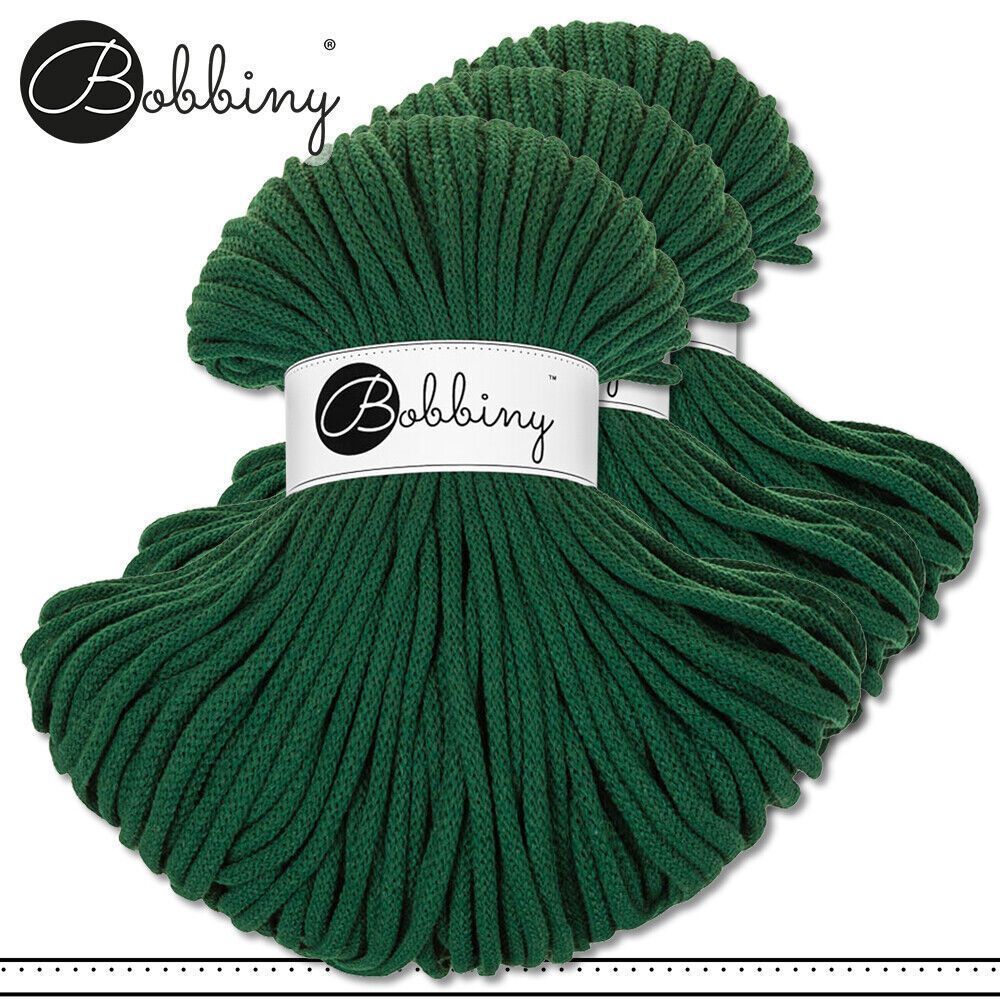 Bobbiny 3x 100m Flechtkordel 5mm | Pine Green | Basteln Baumwolle Hobby Premium